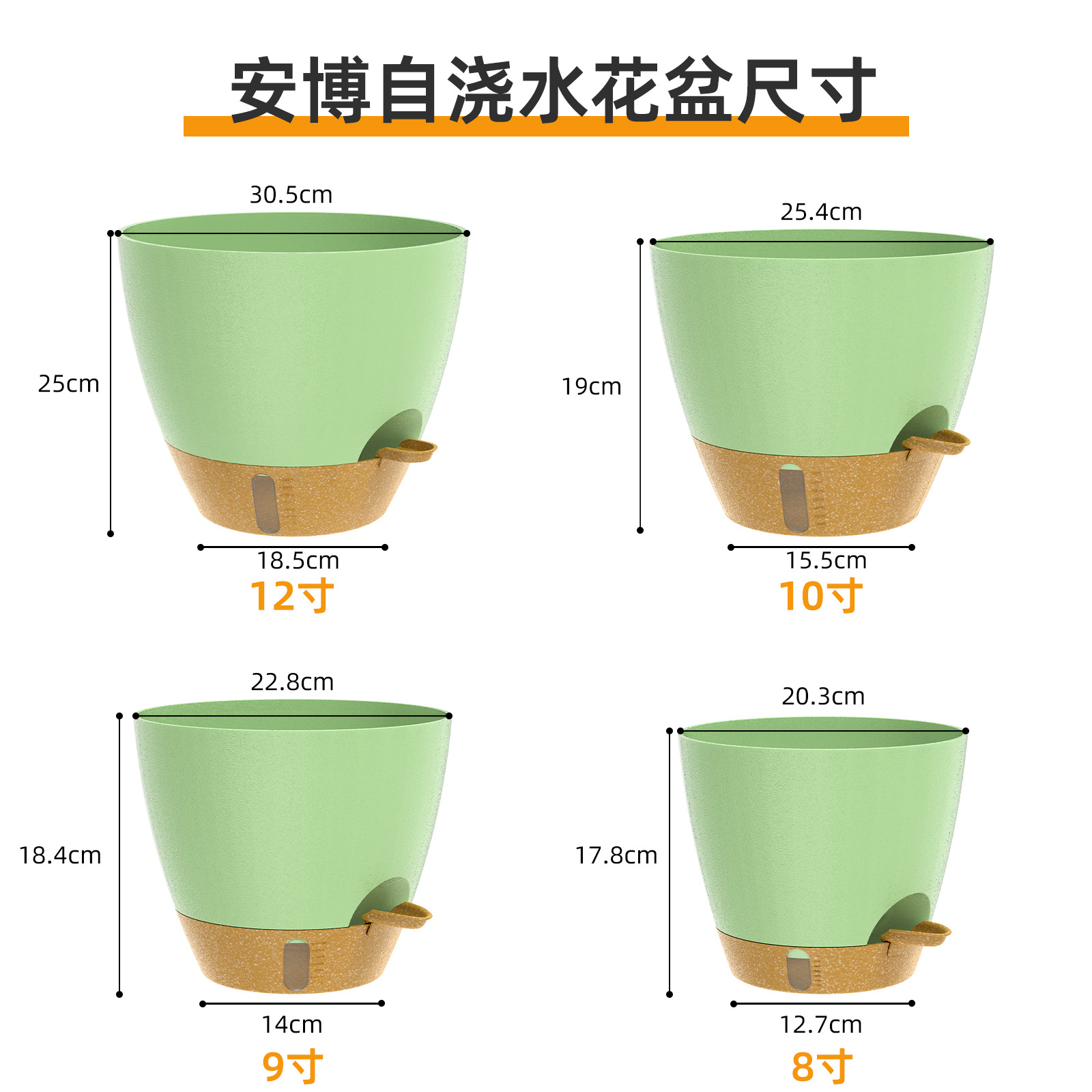 공장 직접 판매 Amazon 전자 상거래 시각적 수위 측면 물 추가 자체 흡수 플라스틱 발코니 안뜰 pothos 화분스토어 가기
