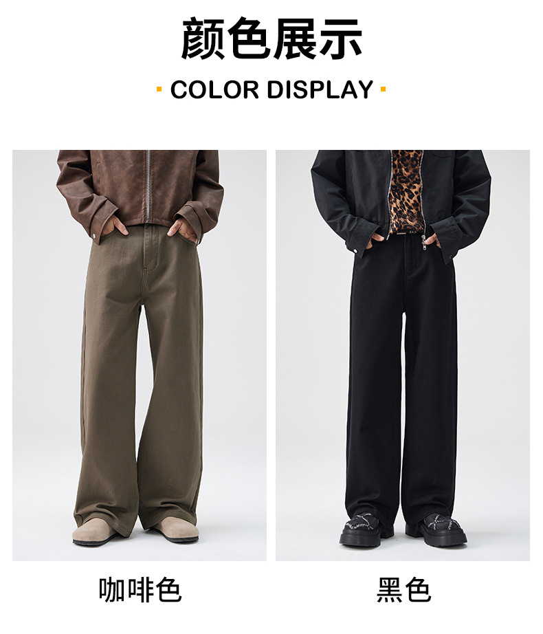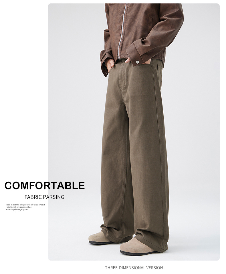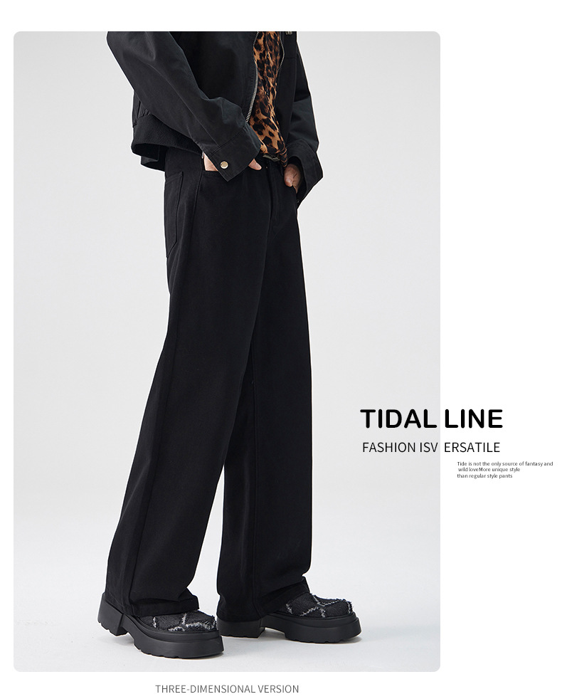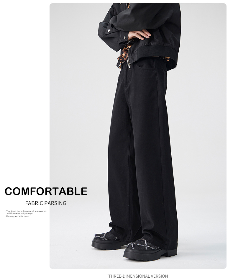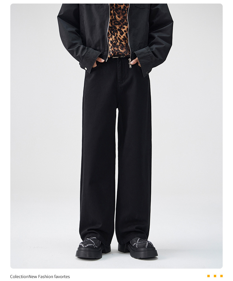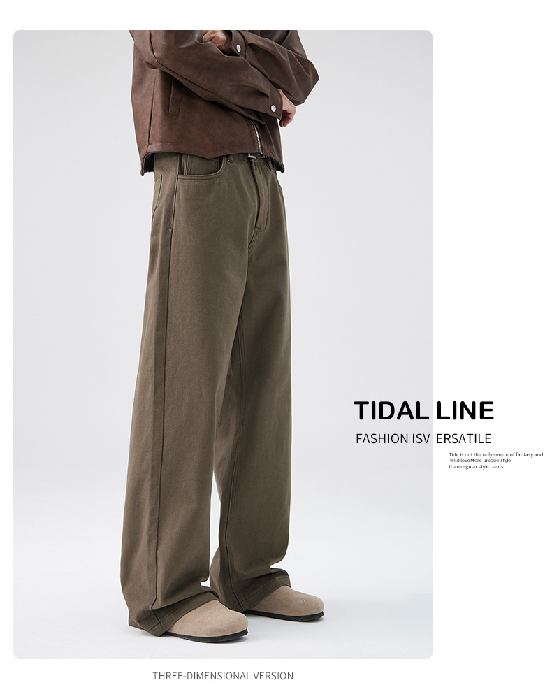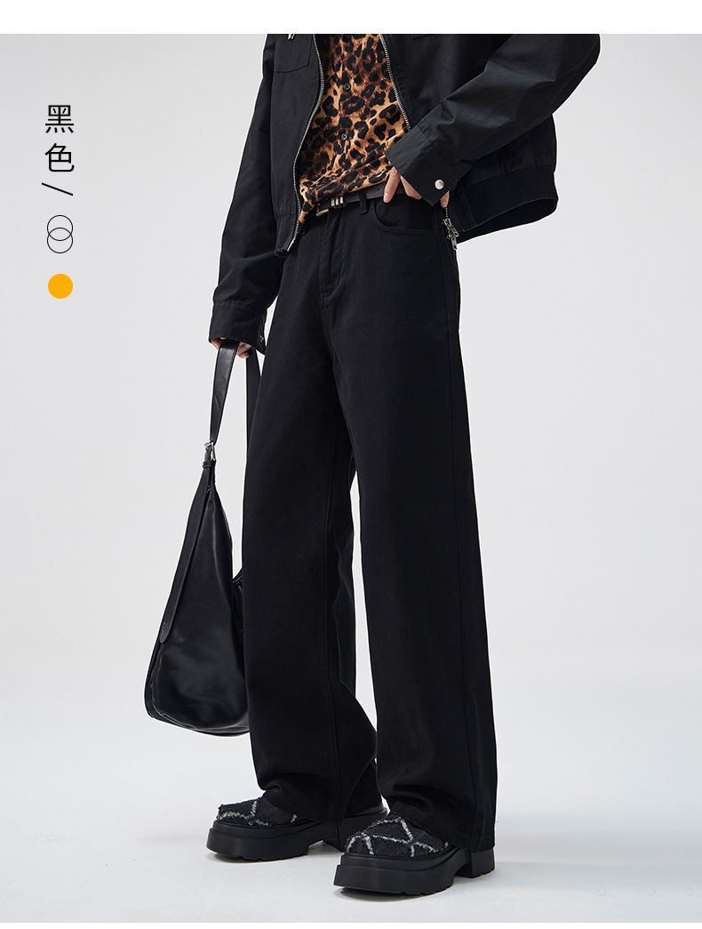 CD 트렌디 데님 팬츠 남성용 스트레이트 와이드 팬츠 2026 봄/가을 신상 남성용 마일드 플레어 심플하고 다용도로 활용 가능한 캐주얼 팬츠