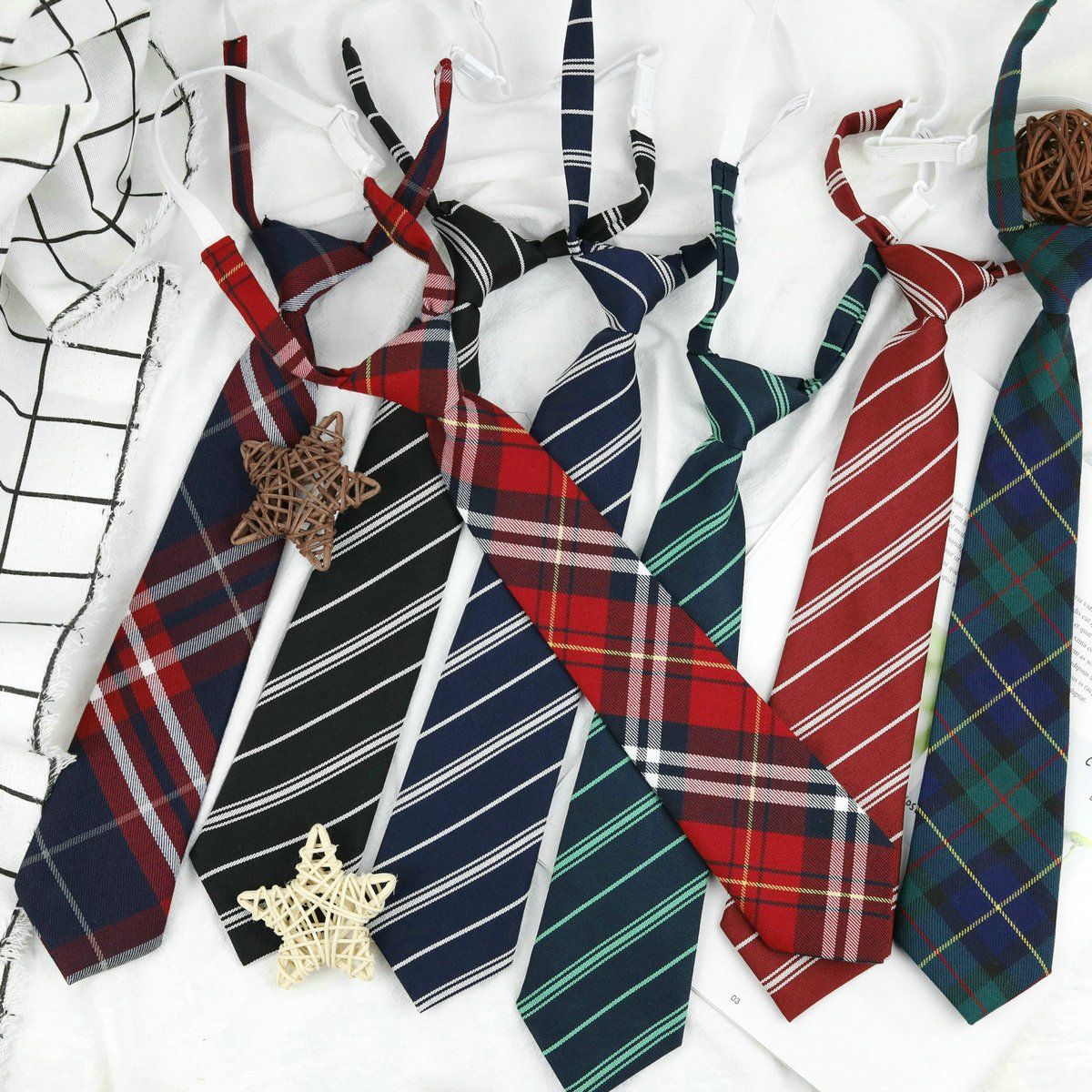작은 넥타이 여성의 JK 일본 스타일 하라주쿠 스타일 격자 무늬 짧은 게으른 텐돈 조정 가능한 대학 스타일 학생스토어 가기