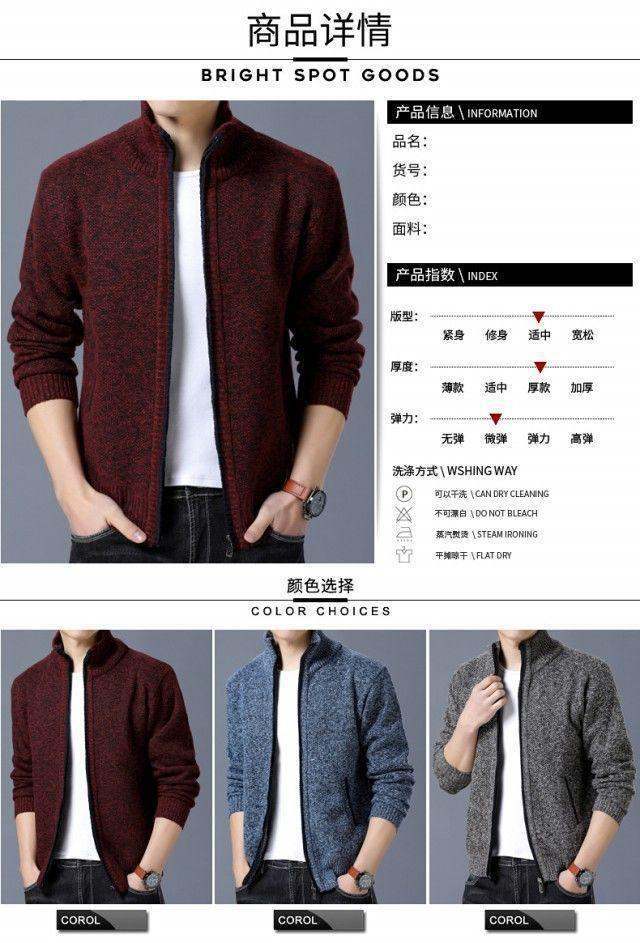 대외 무역 가을과 겨울 남자 스웨터 카디건 남자 기모 두꺼운 지퍼 외부 남성용 수직 칼라 니트웨어 재킷 재킷스토어 가기