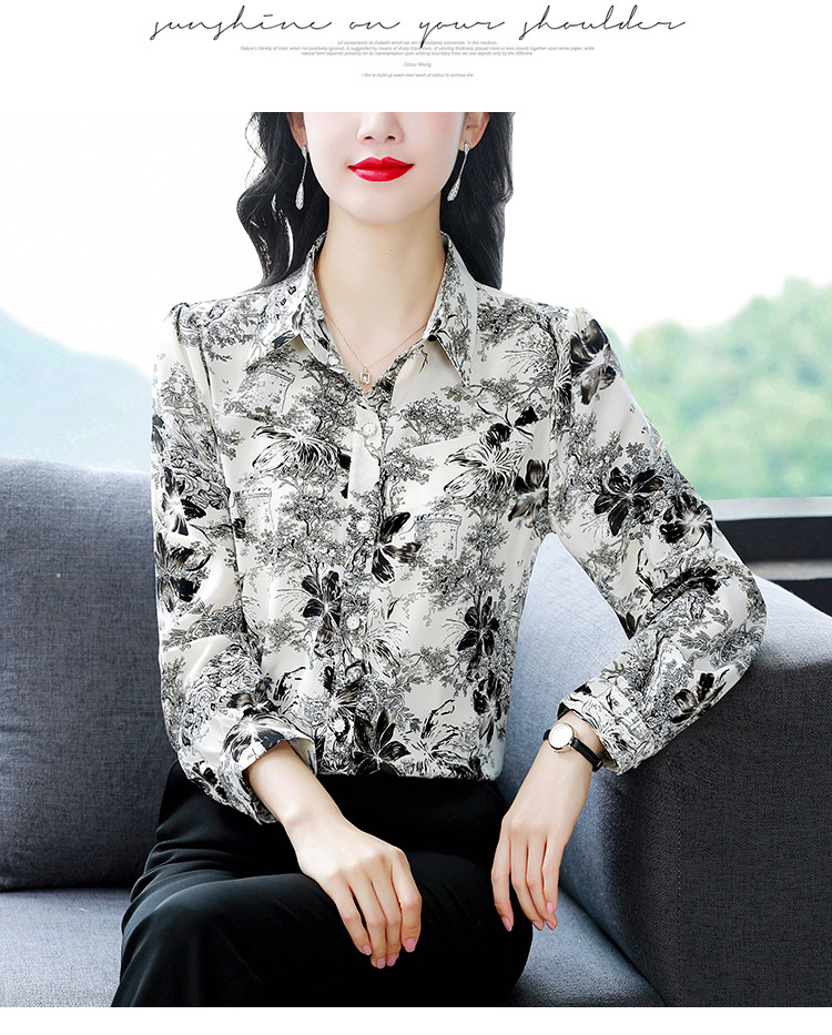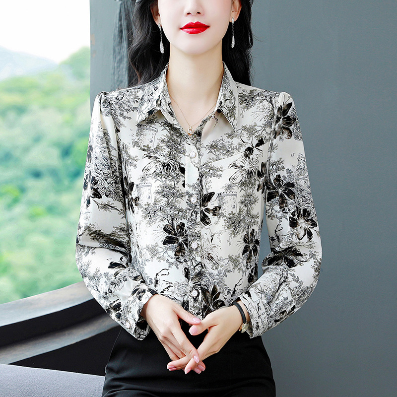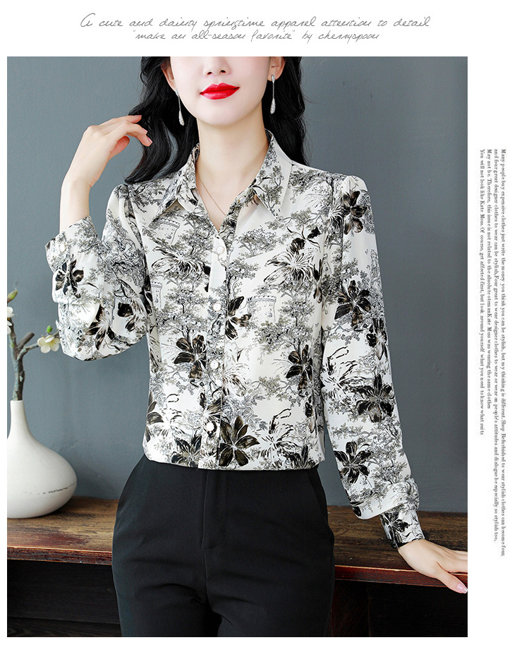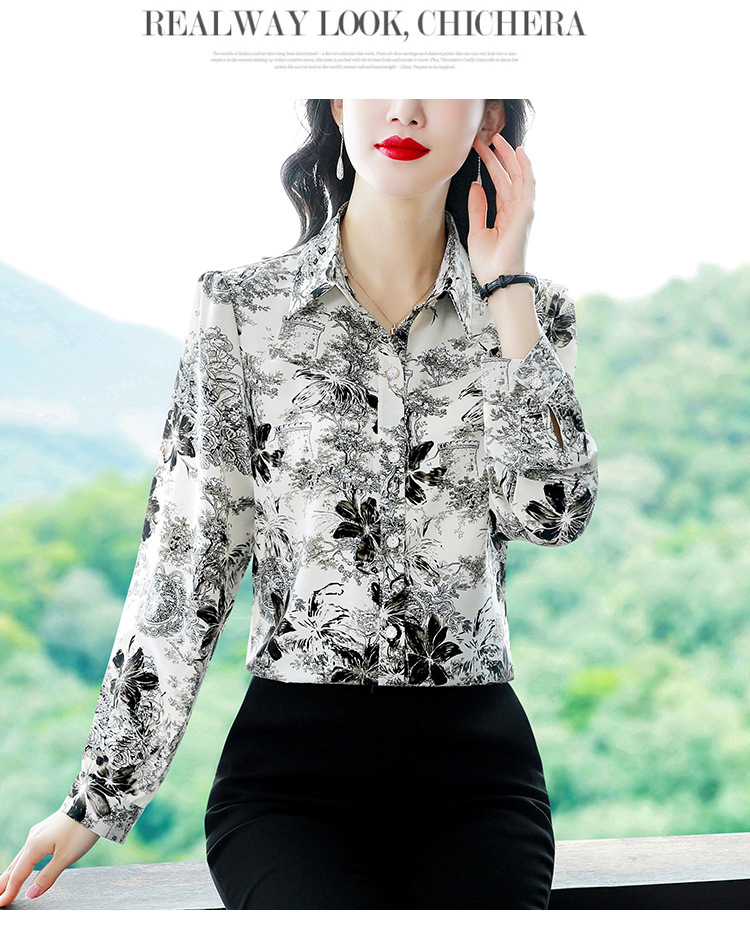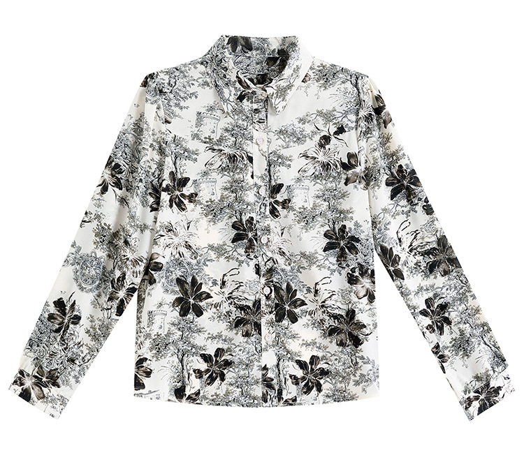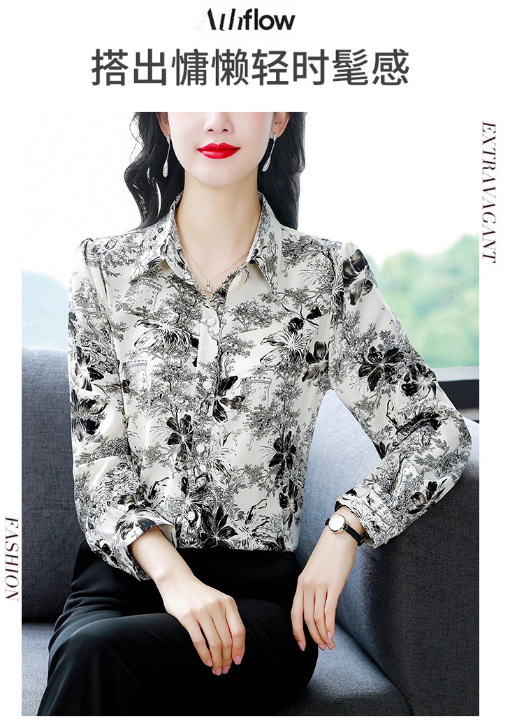 프린트 셔츠 여성 상의 2024 여름 신상 여성 프린트 슬림핏 셔츠 긴팔 여성용스토어 가기