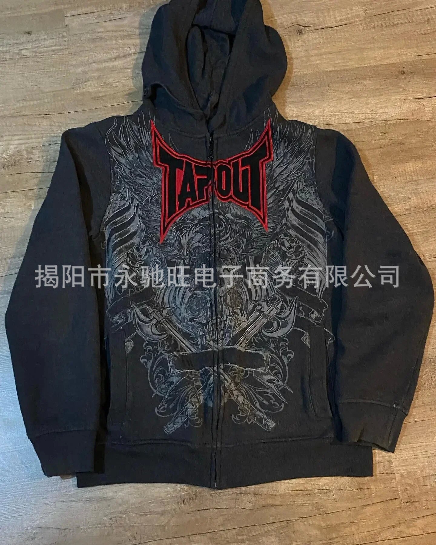 아메리칸 스타일 레트로 스트리트 힙합 편지 낙서 인쇄 지퍼 스웨트 셔츠 남자 캐주얼 올 매치 스포츠 지퍼 재킷