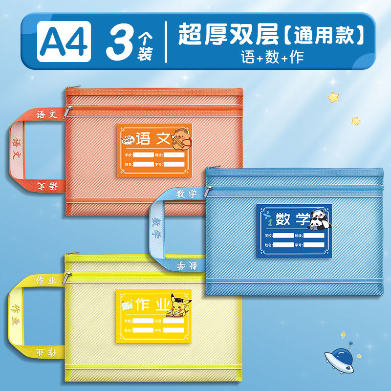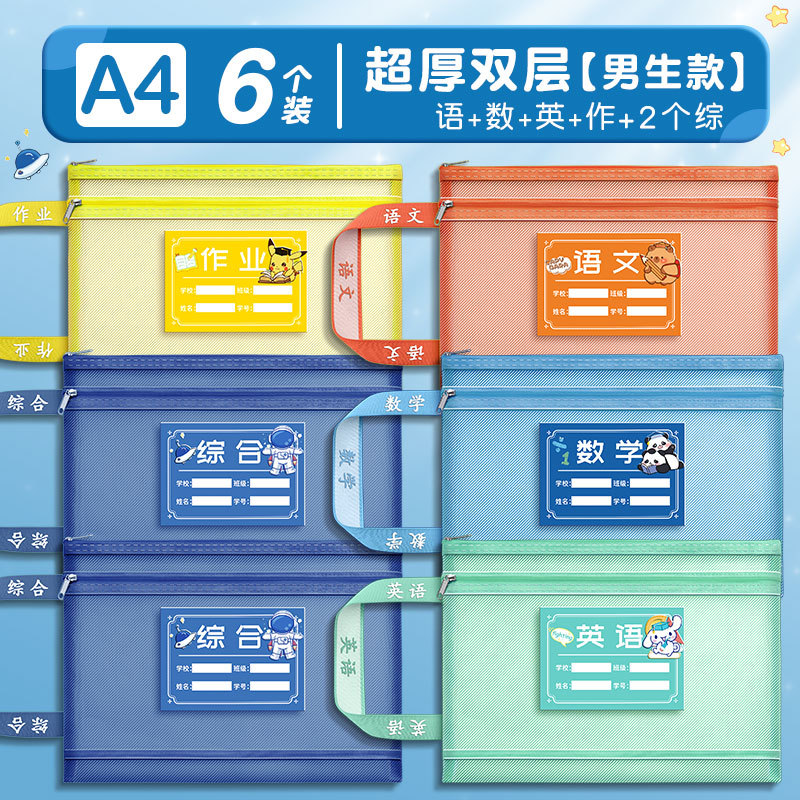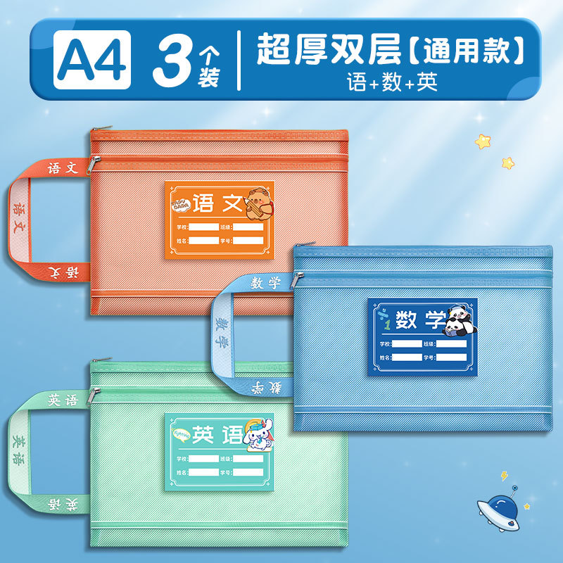 문서 가방 초등학생 주제 분류 가방 주제 가방 중국어 수학 영어 지퍼 유형 테스트 종이 저장 가방 휴대용스토어 가기