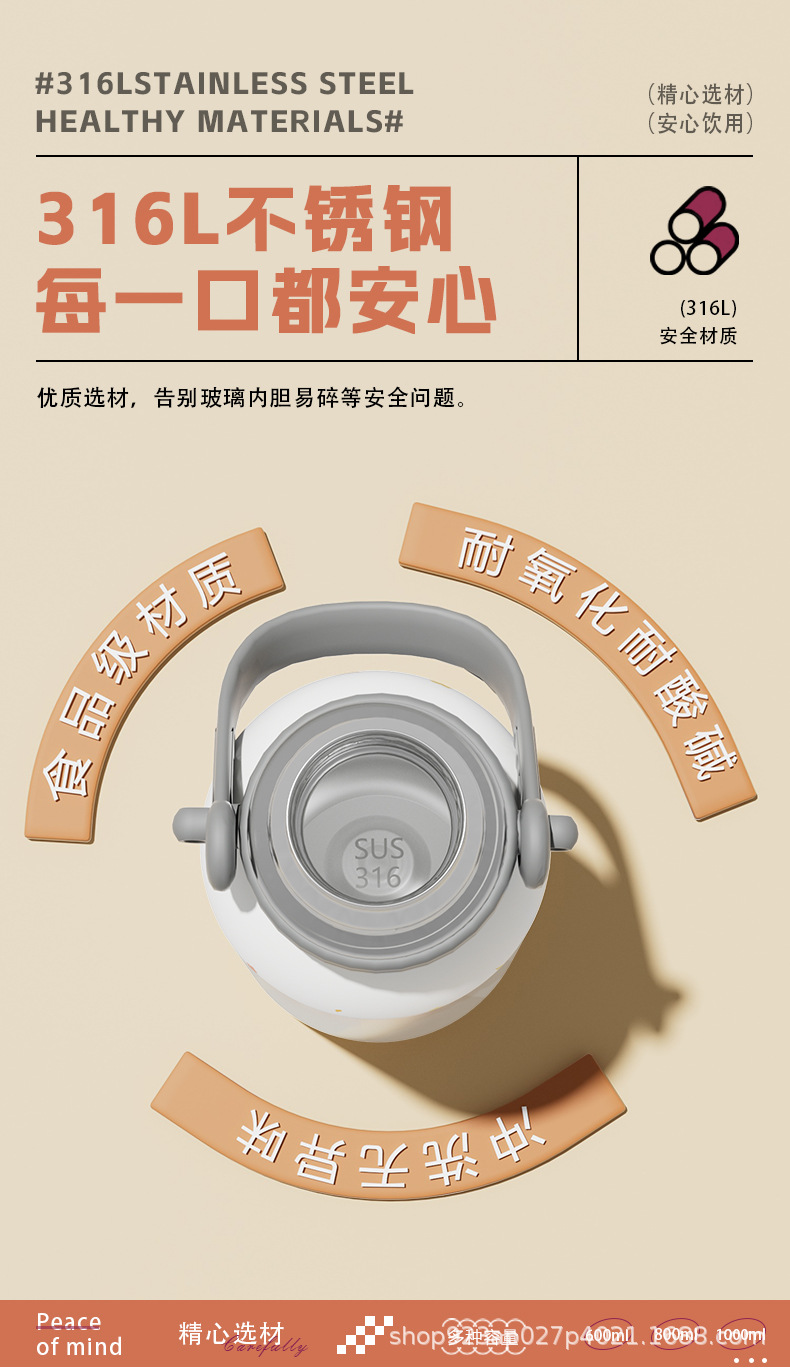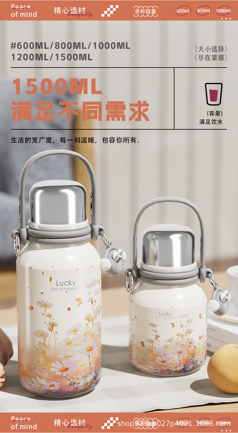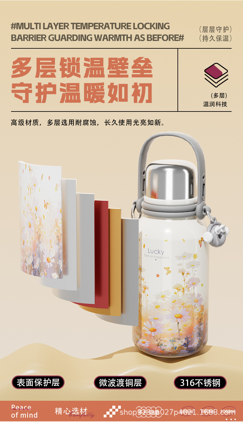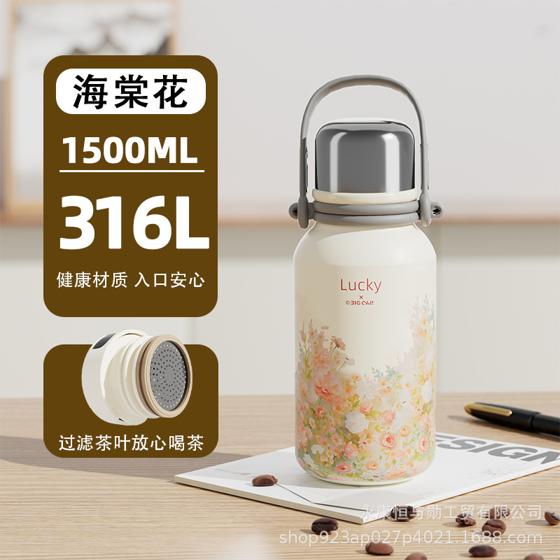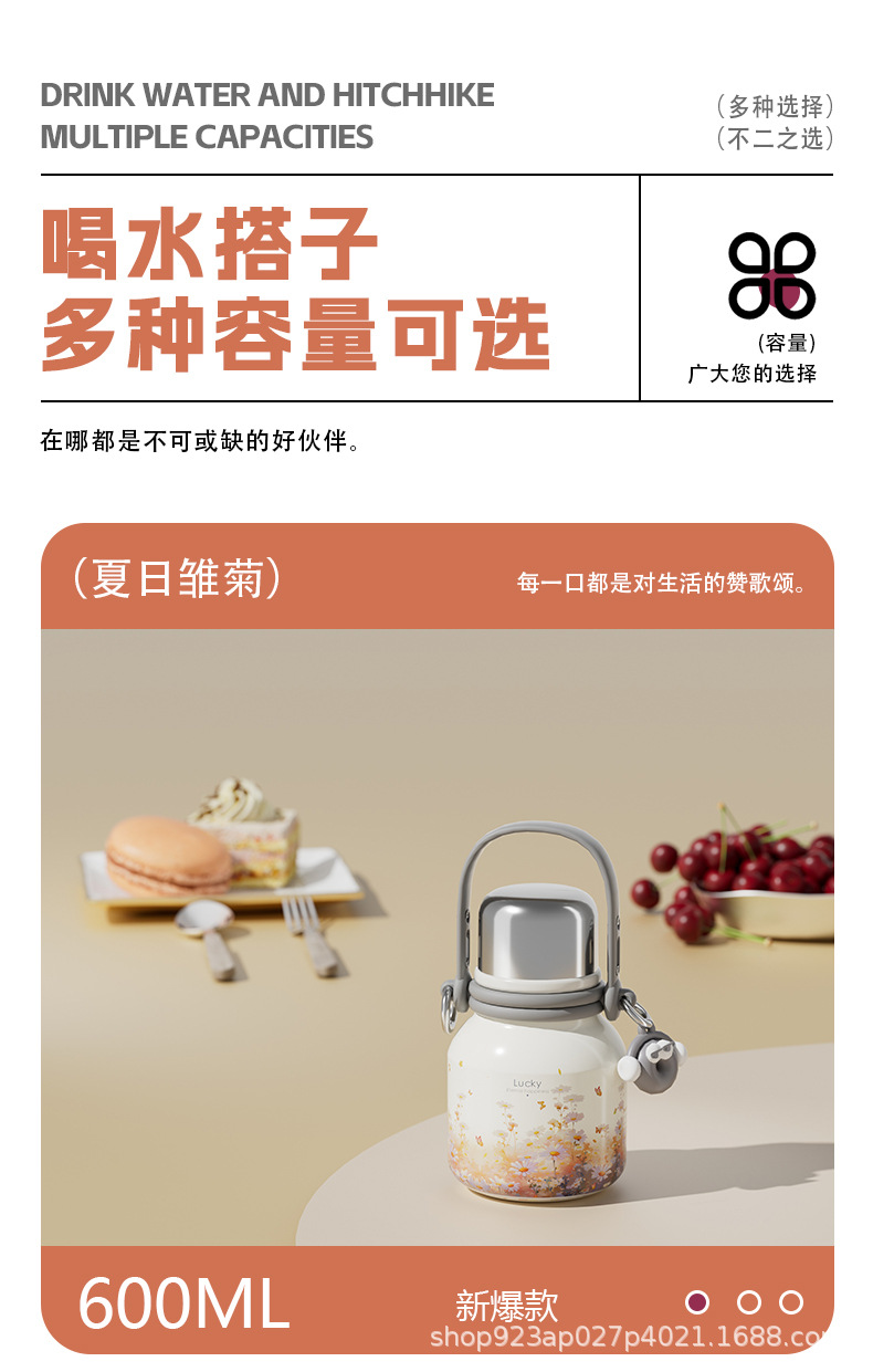 새로운 여행용 휴대용 물컵, 멋스러운 외관과 대용량 보온컵, 316 스테인리스 스틸 아웃도어 아이스컵, 보온 및 보냉 기능스토어 가기