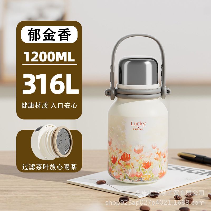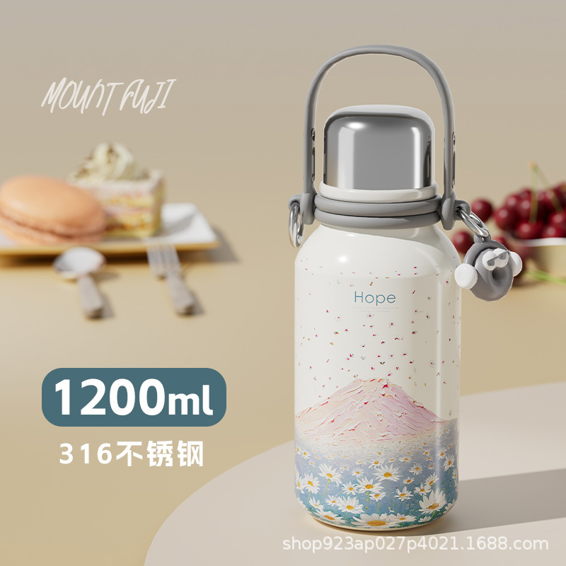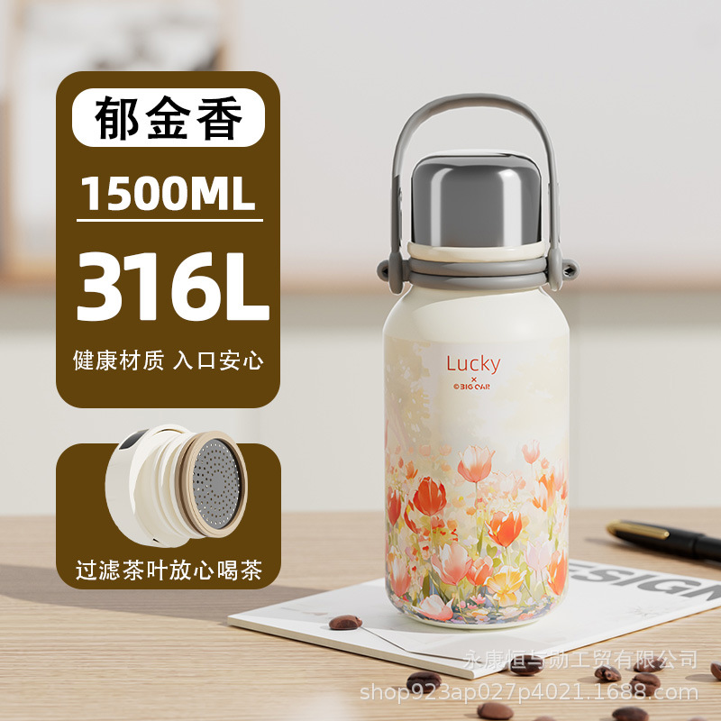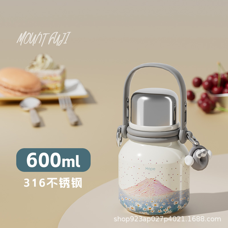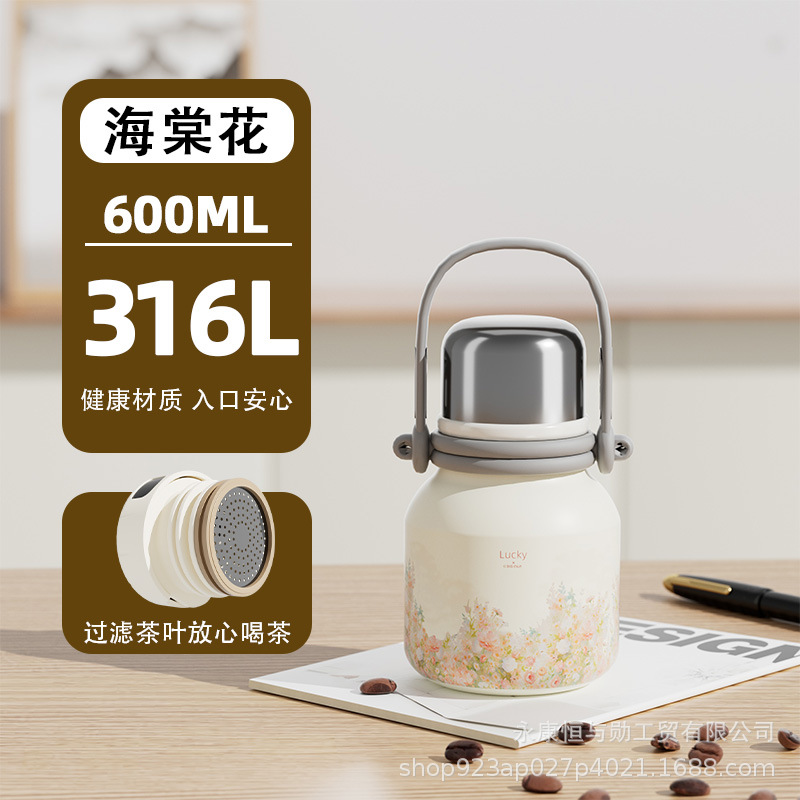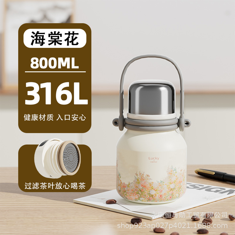 새로운 여행용 휴대용 물컵, 멋스러운 외관과 대용량 보온컵, 316 스테인리스 스틸 아웃도어 아이스컵, 보온 및 보냉 기능