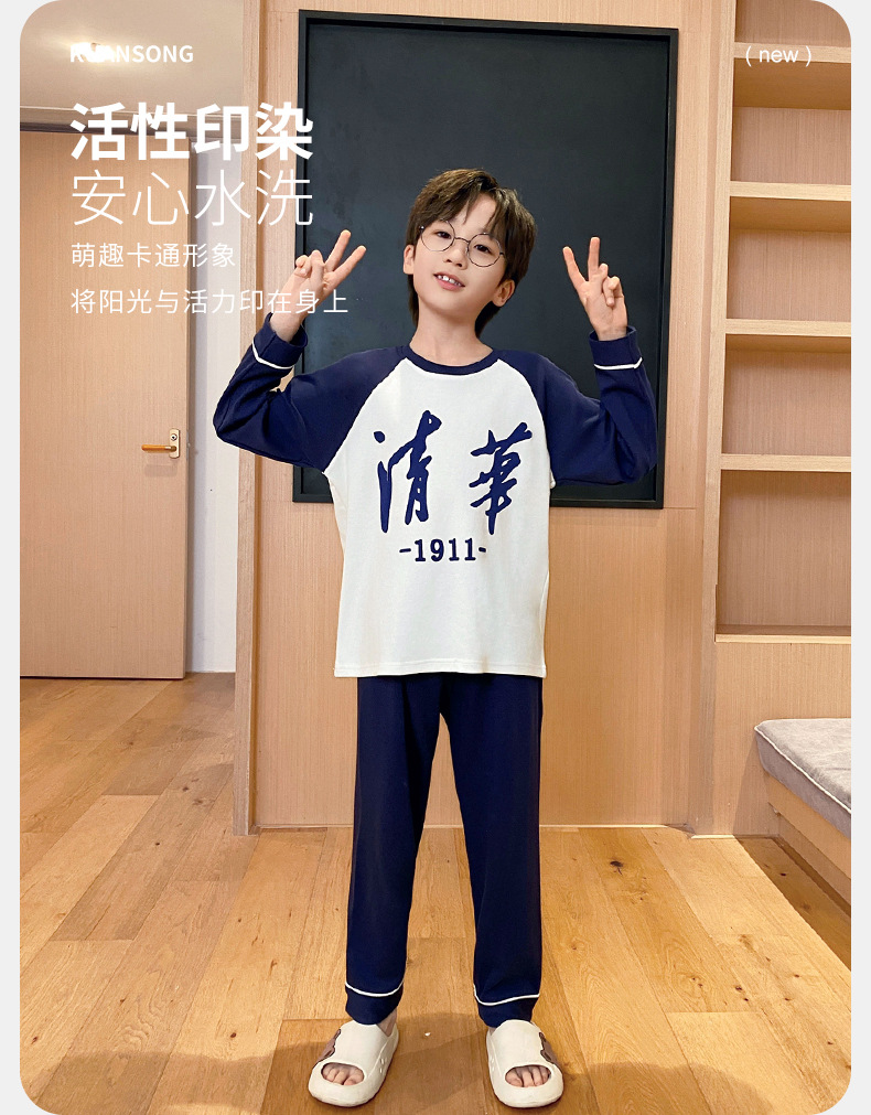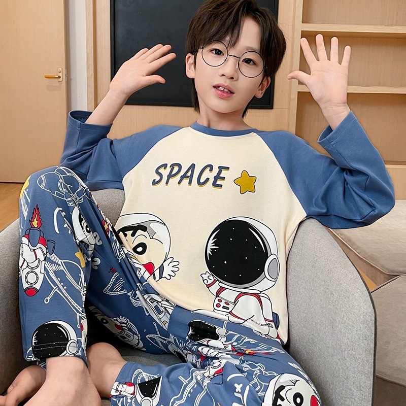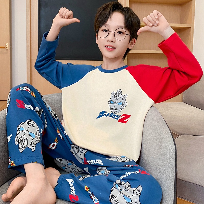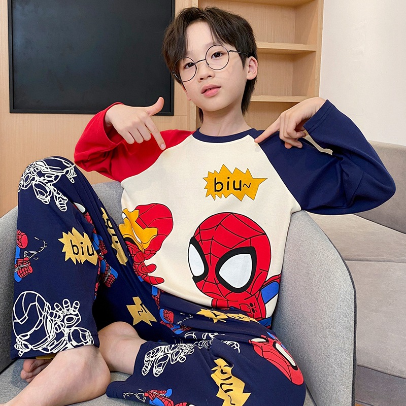 면 잠옷 봄과 가을 소년 긴 소매 어린이 만화 소년 2024 새로운 청소년 면 여름 홈 의류 세트