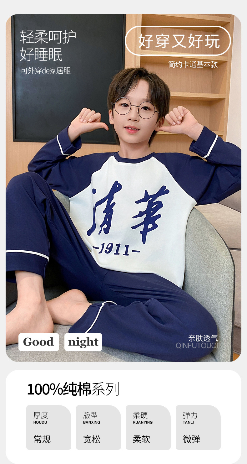 면 잠옷 봄과 가을 소년 긴 소매 어린이 만화 소년 2024 새로운 청소년 면 여름 홈 의류 세트스토어 가기