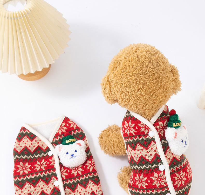 가을과 겨울 고양이 귀여운 바람 입체 곰 크리스마스 스웨터 애완 동물 테디 두 다리 따뜻한 옷