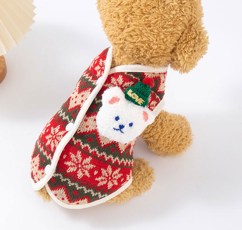 가을과 겨울 고양이 귀여운 바람 입체 곰 크리스마스 스웨터 애완 동물 테디 두 다리 따뜻한 옷스토어 가기