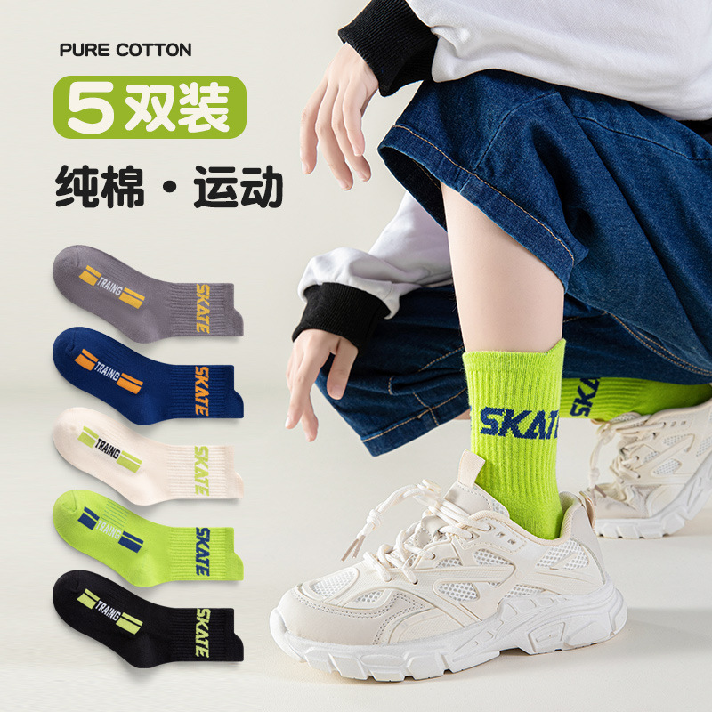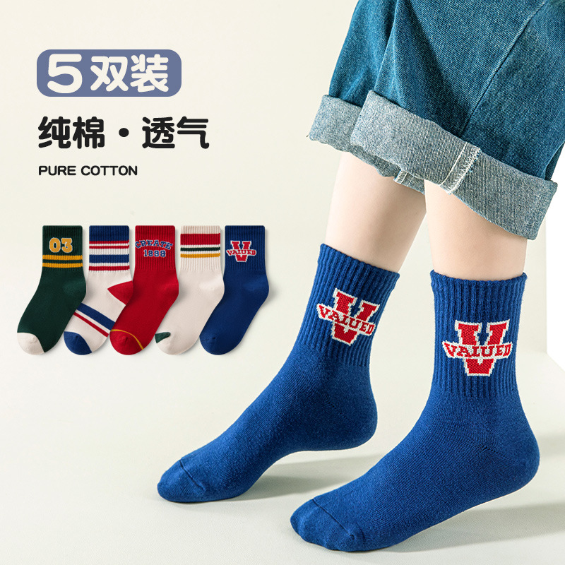 어린이 양말 클래스 A 면 봄 및 가을 스포츠 양말 소년 소녀 학생을위한 한국식 만화 양말 가을 및 겨울 중간 튜브 양말