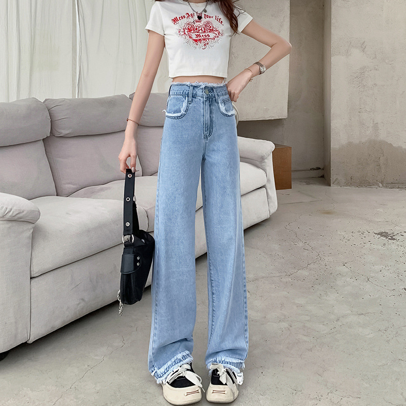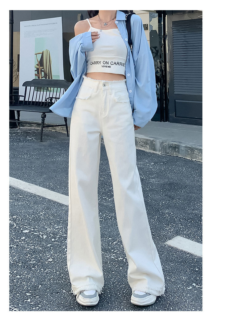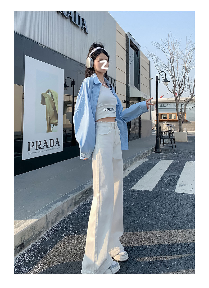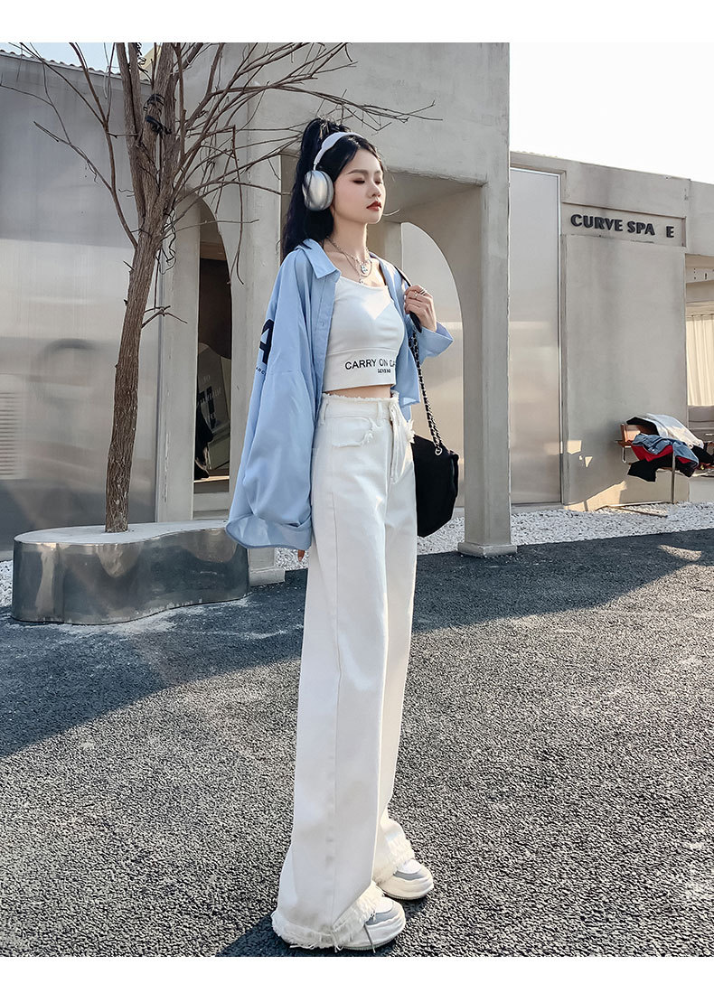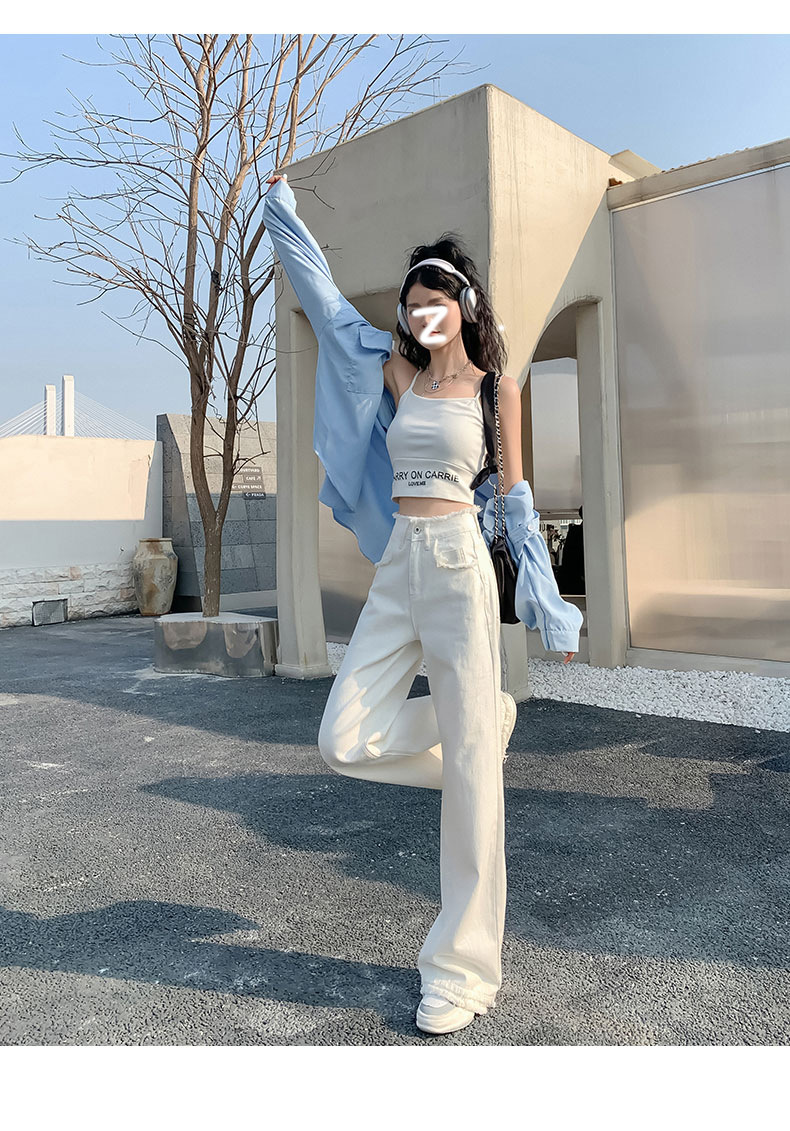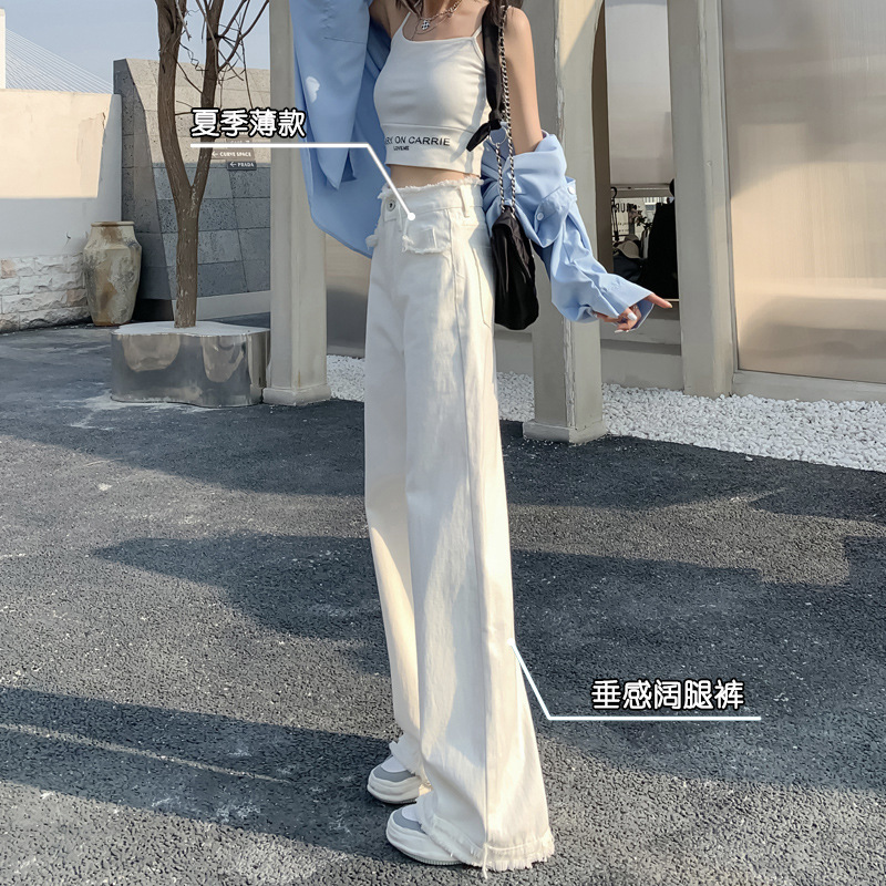 흰색 높은 허리 스트레이트 청바지 여성의 2024 새로운 여름 얇은 느슨한 넓은 다리 바지스토어 가기