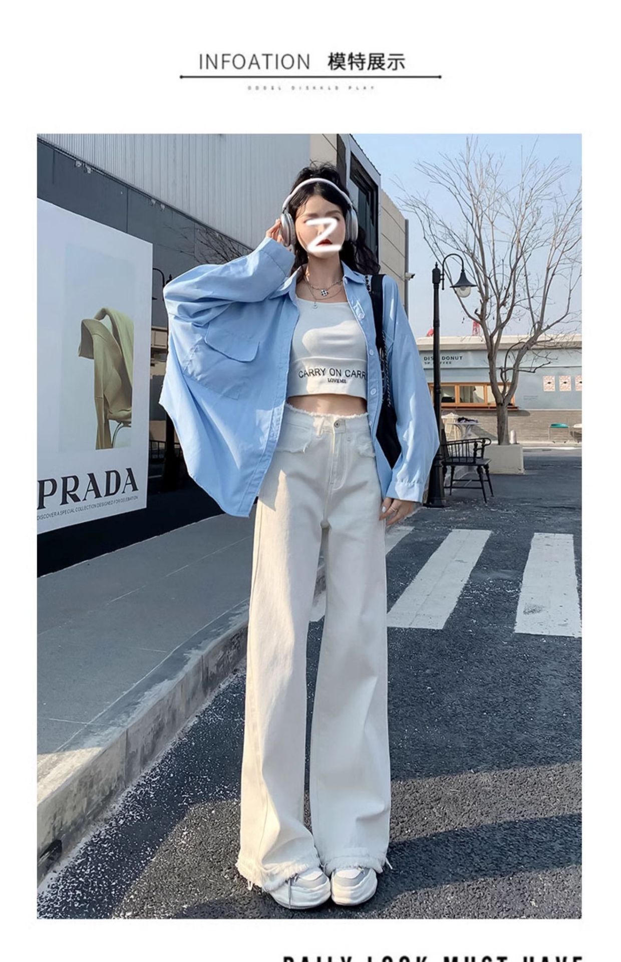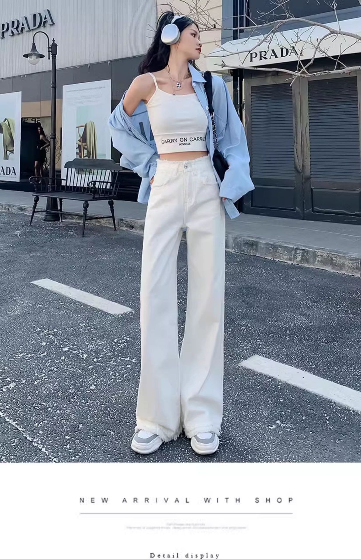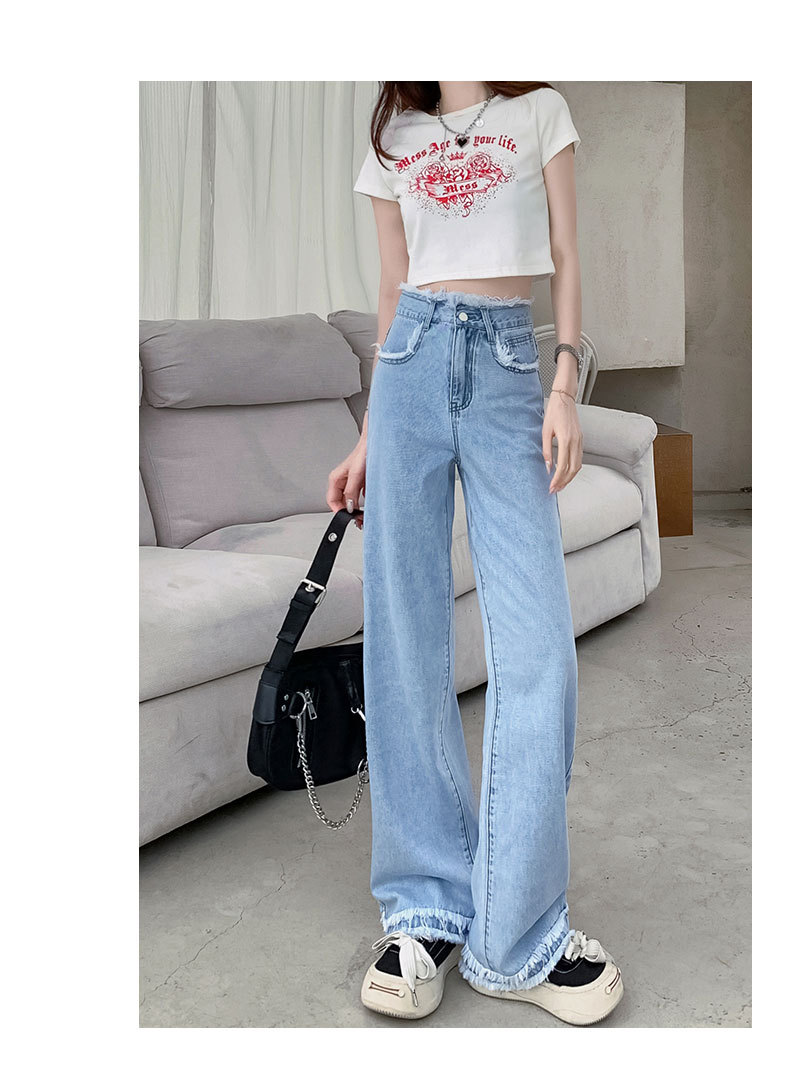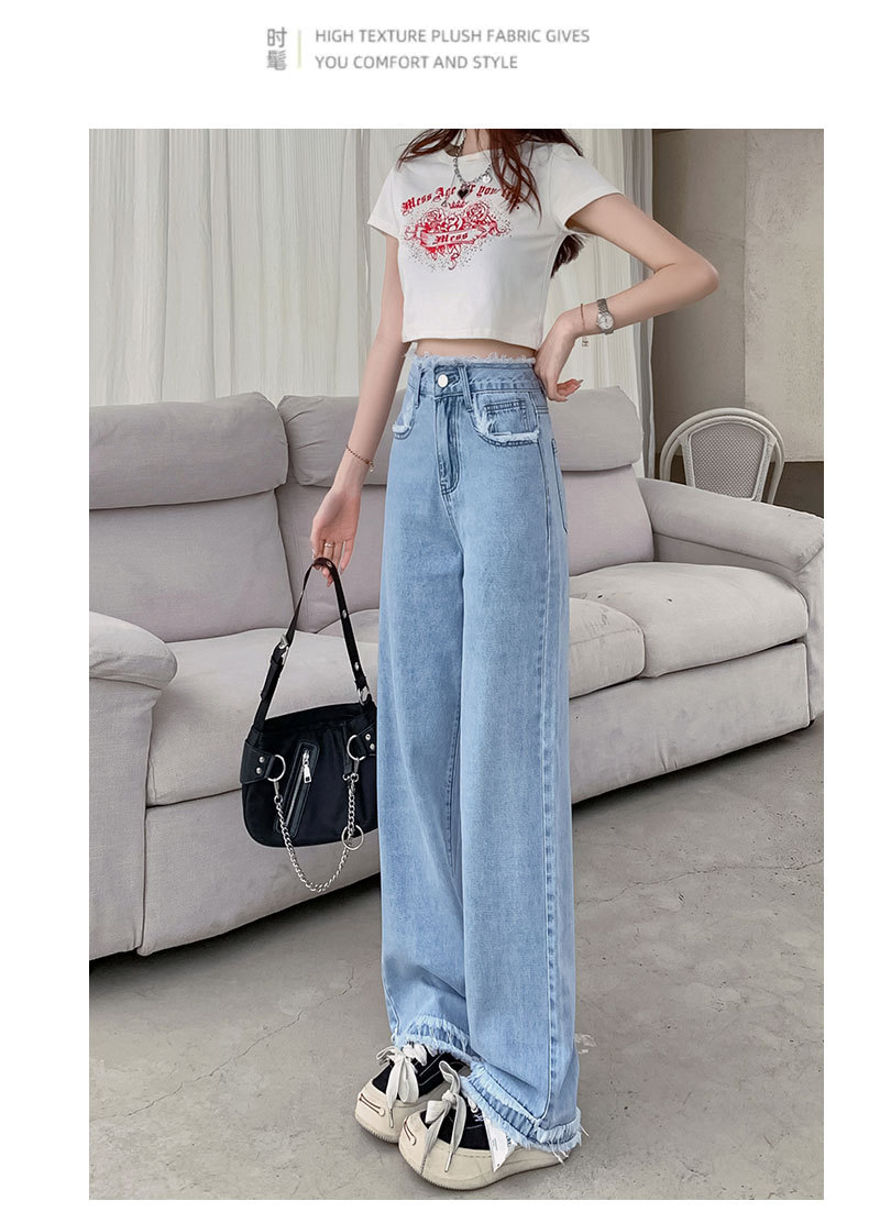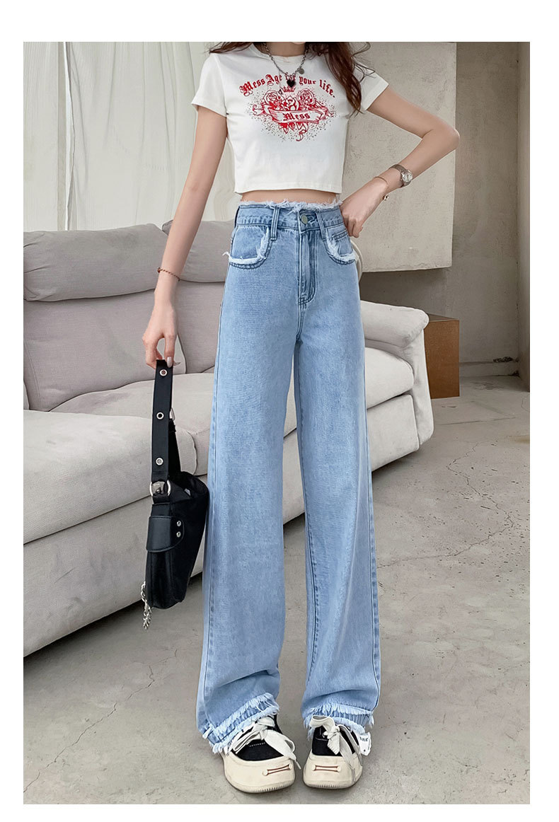 흰색 높은 허리 스트레이트 청바지 여성의 2024 새로운 여름 얇은 느슨한 넓은 다리 바지스토어 가기