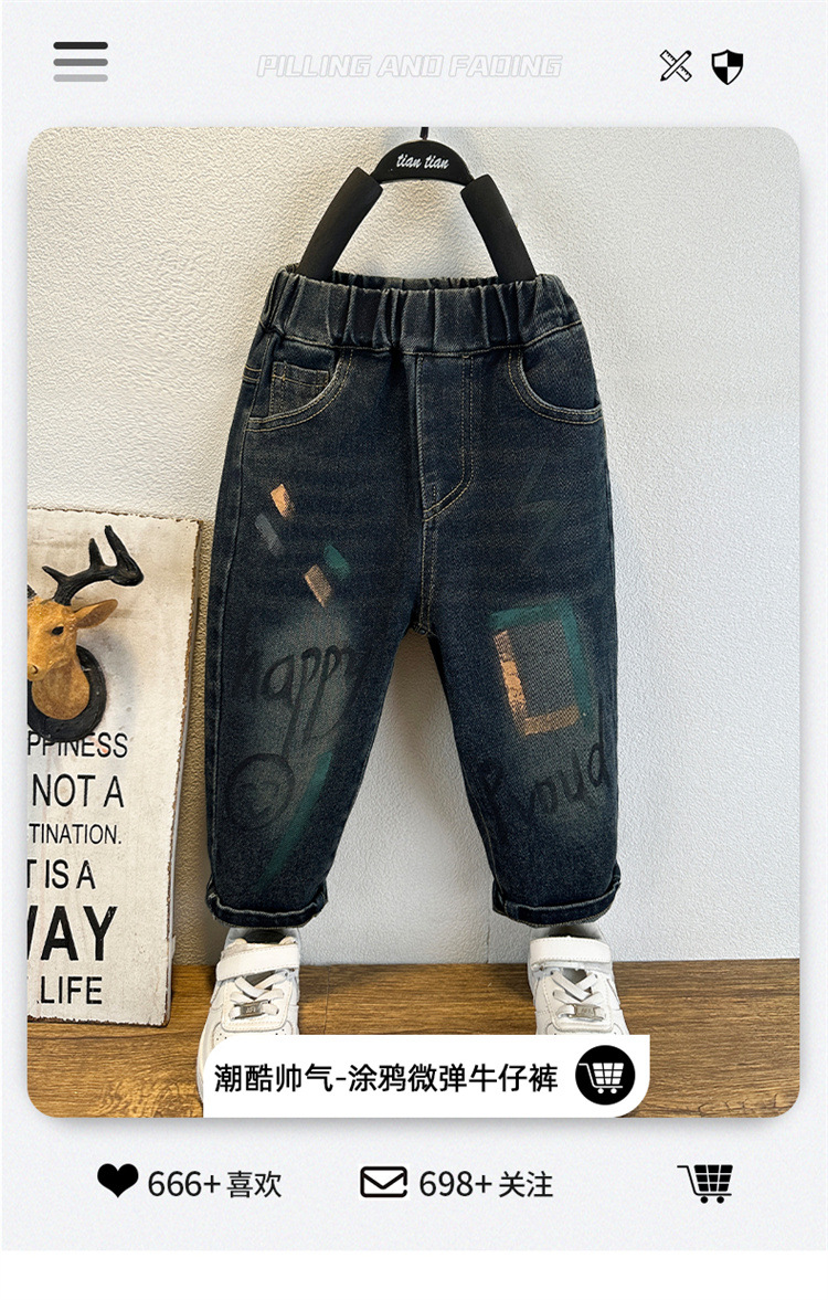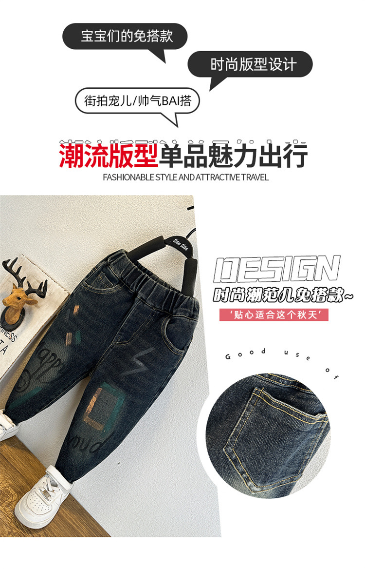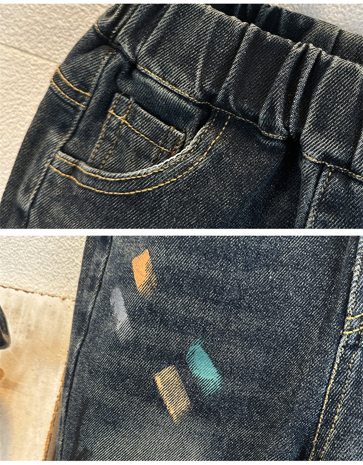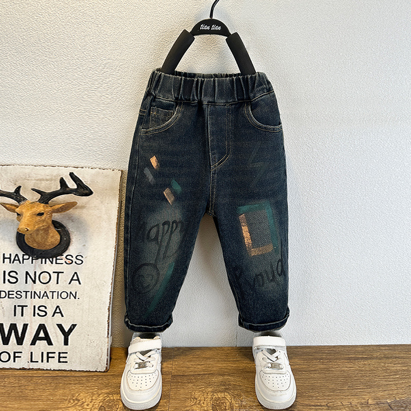 소년 가을 낙서 데님 바지 2024 잘 생긴 토레 아기 서양 스타일 캐주얼 바지스토어 가기