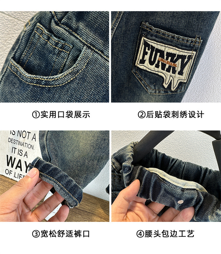 소년 가을 복고풍 청바지 2024 새로운 차가운 잘 생긴 소년 느슨한 캐주얼 바지 바지 어린이 대외 무역 아동복