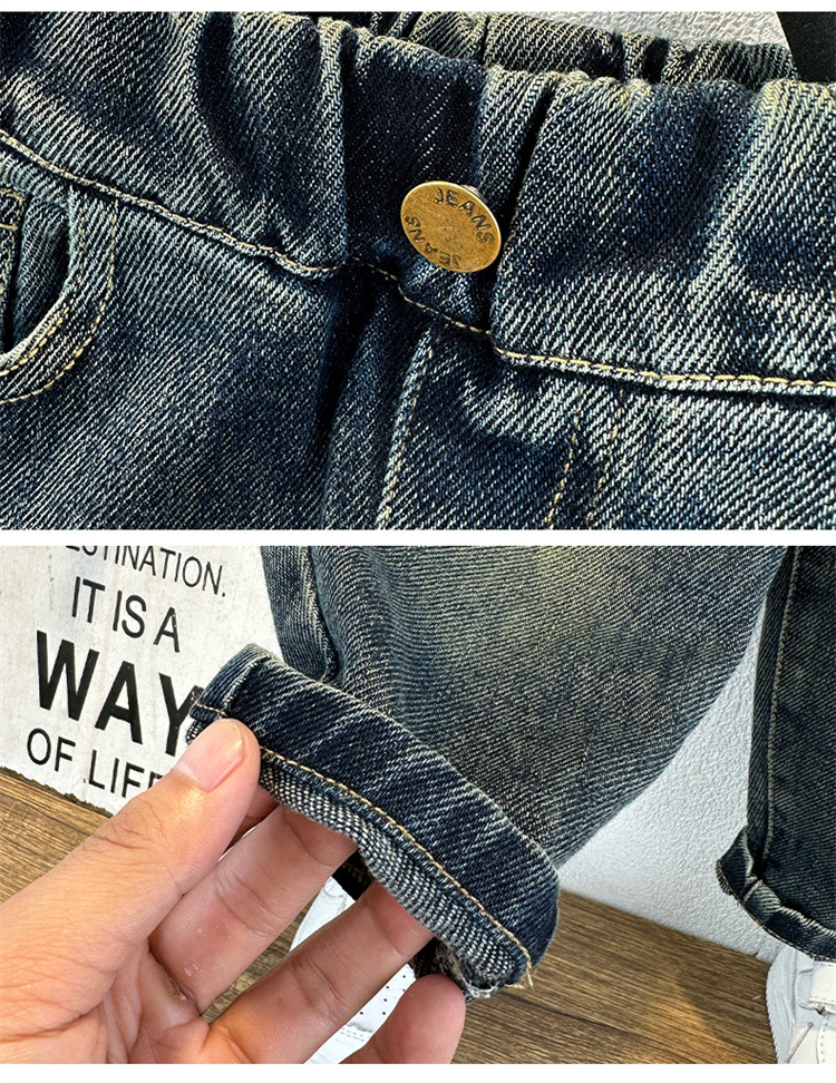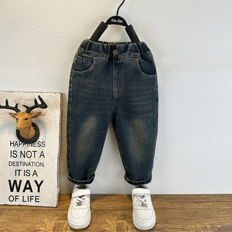 소년 가을 복고풍 청바지 2024 새로운 차가운 잘 생긴 소년 느슨한 캐주얼 바지 바지 어린이 대외 무역 아동복스토어 가기