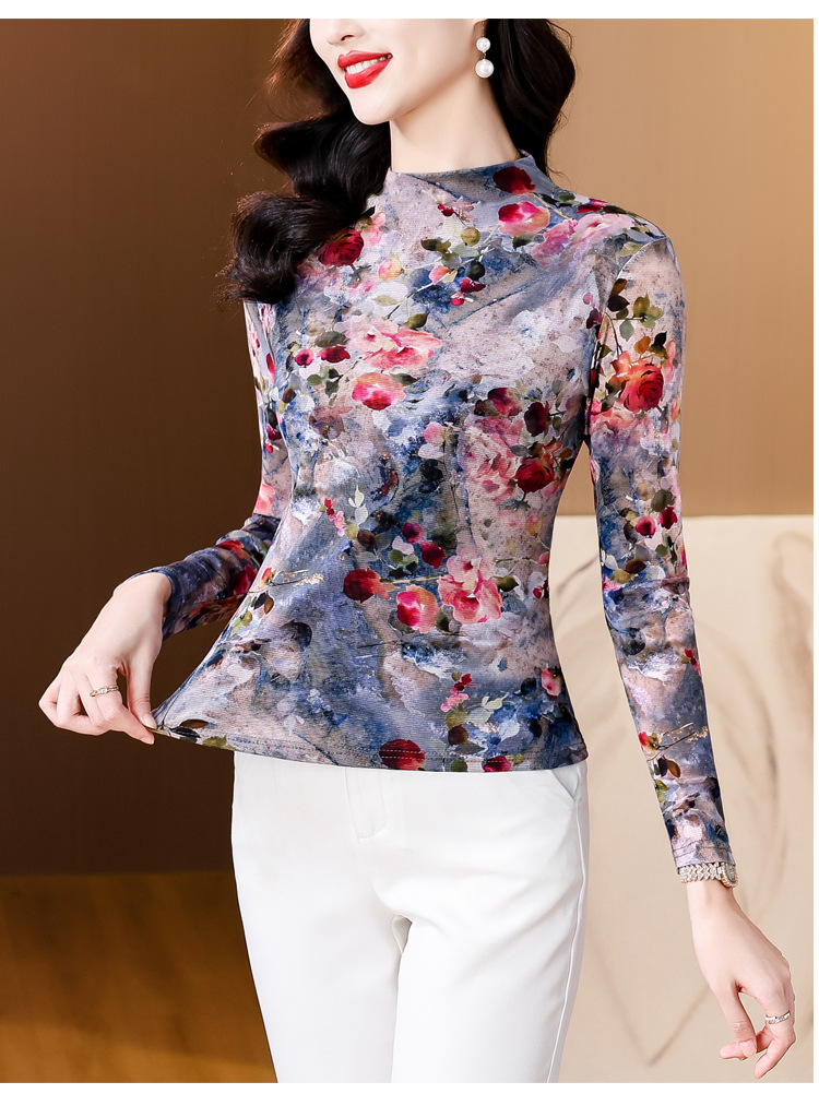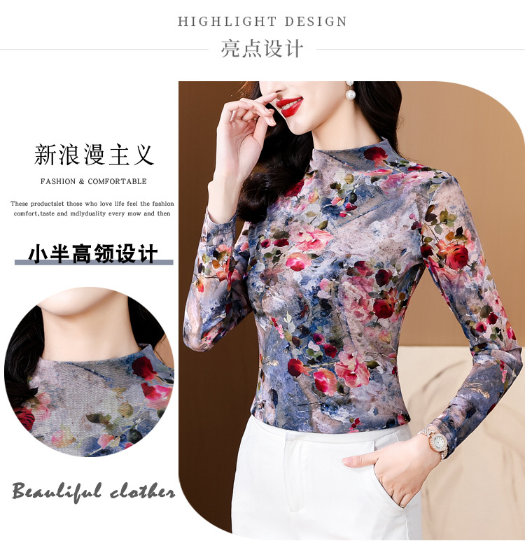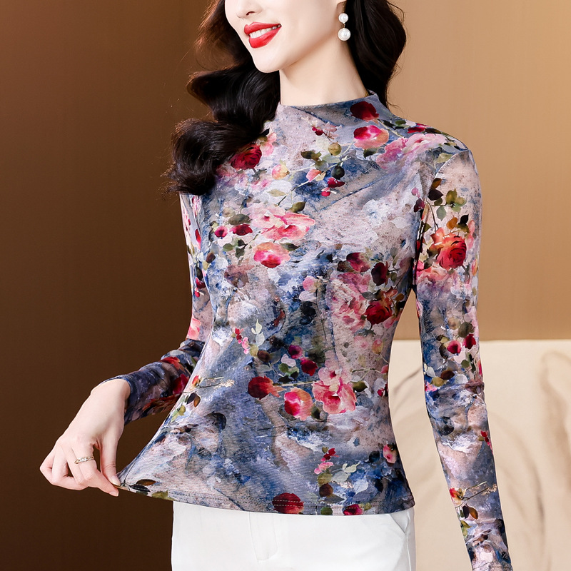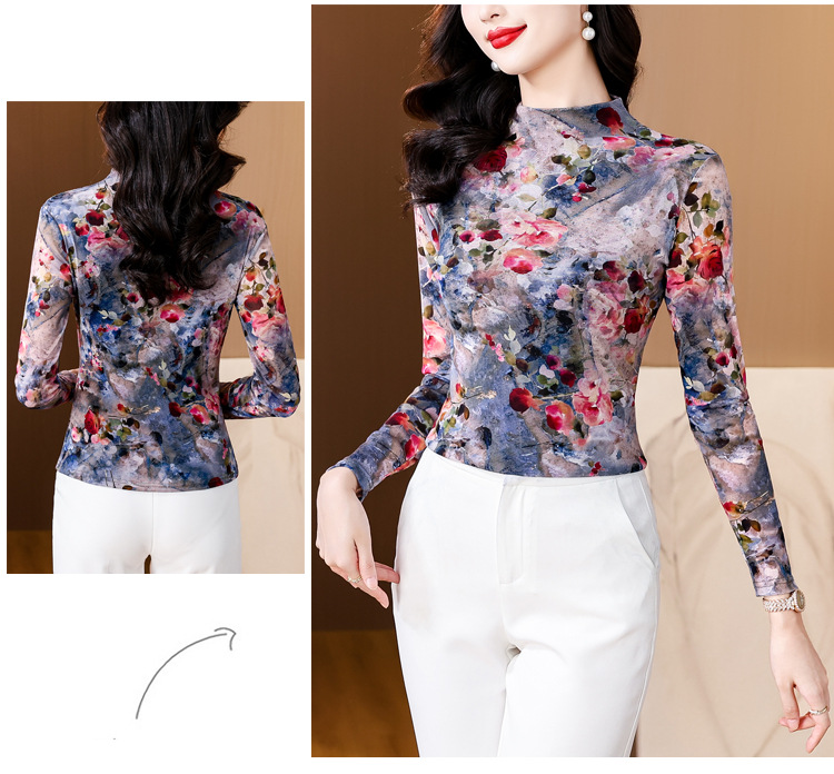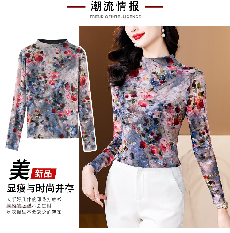 재고 2024 년 가을 새로운 긴팔 인쇄 티셔츠 살로 덮인 편안한 통기성 외국 스타일의 바지 셔츠 탑