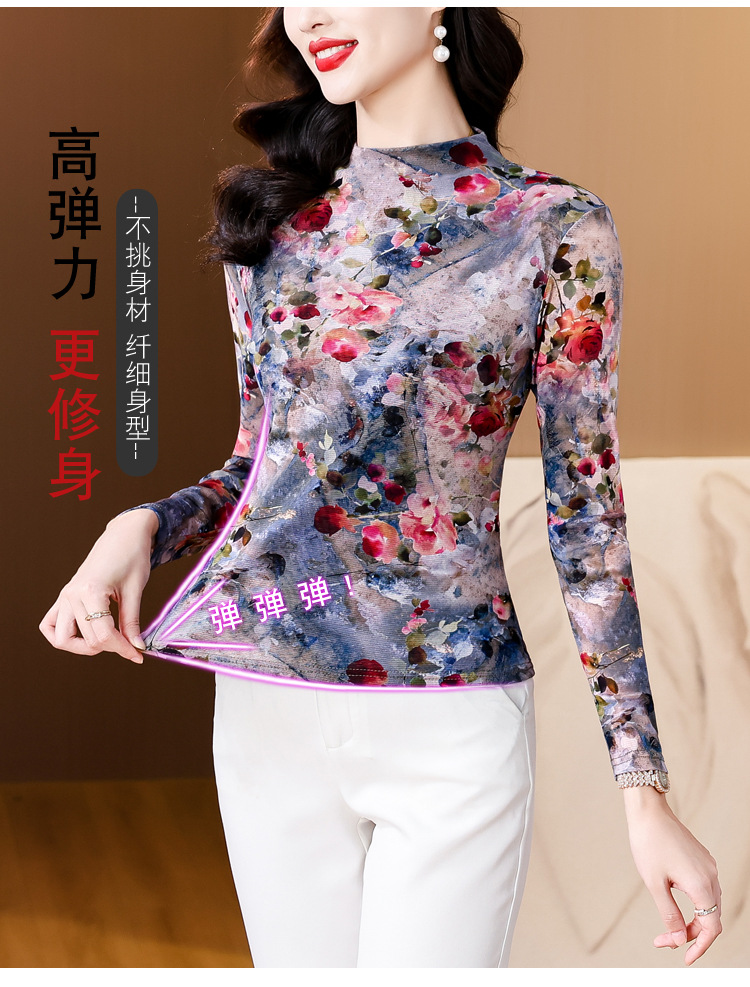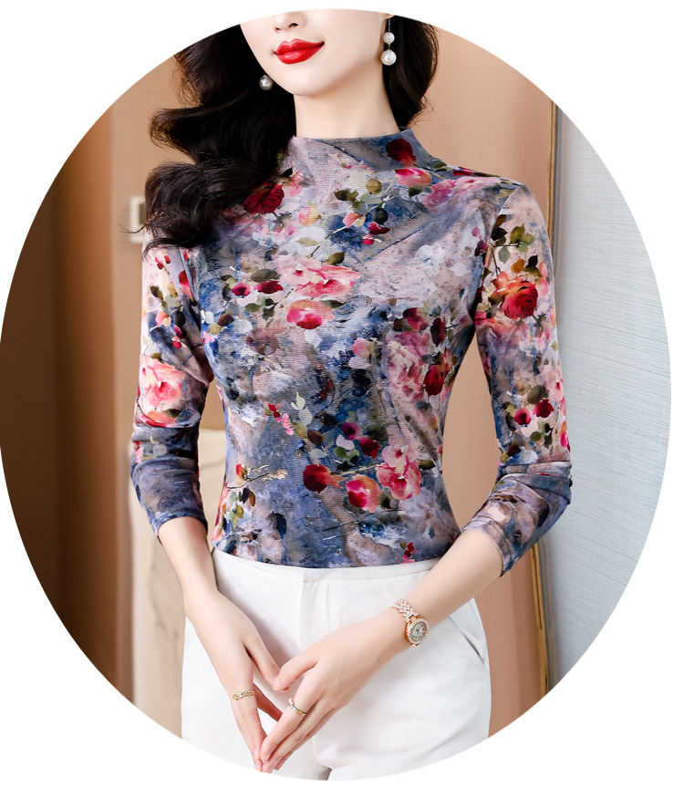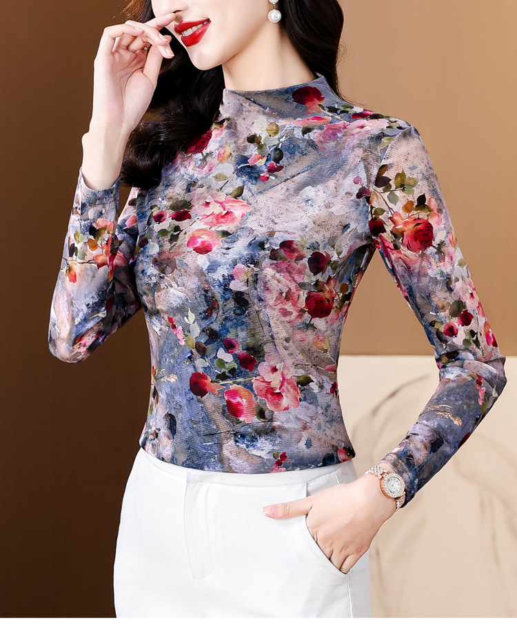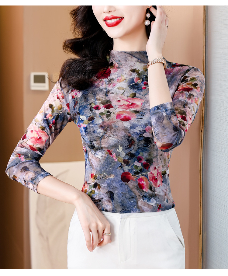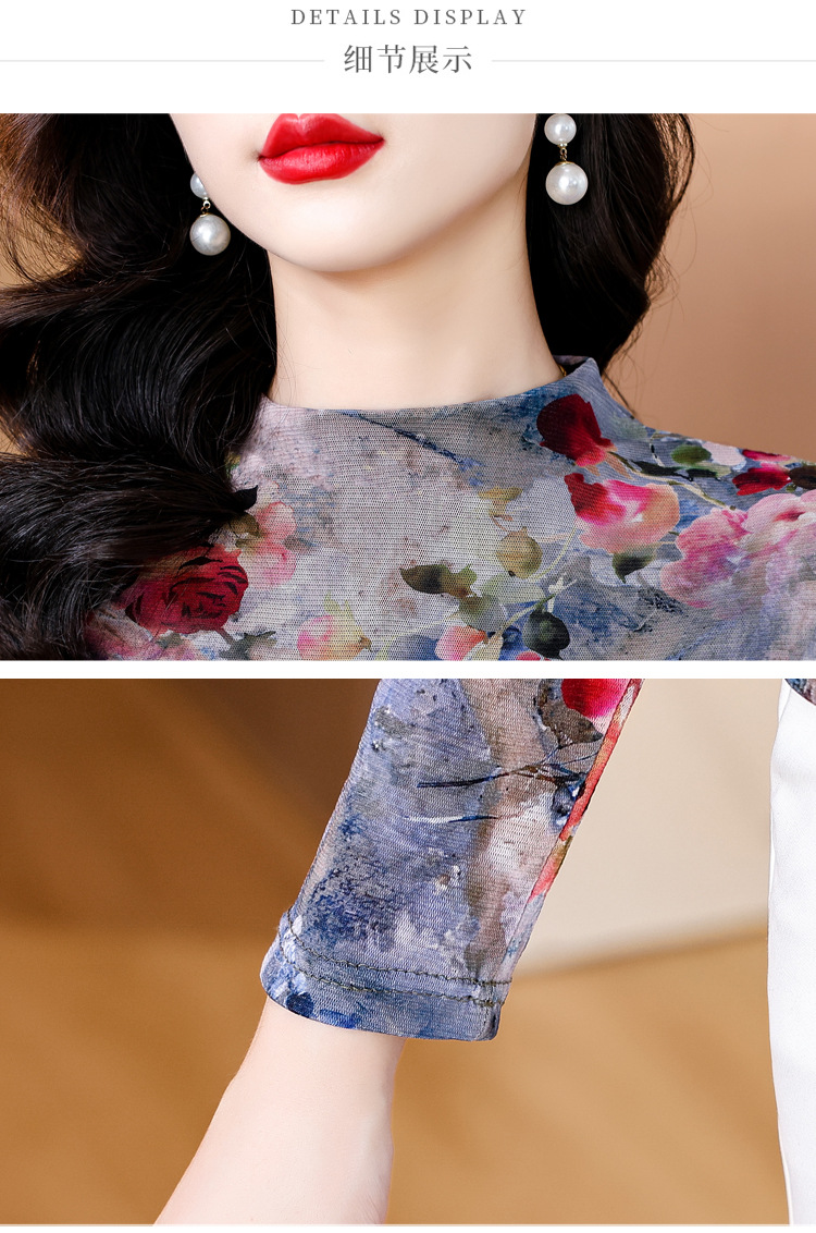재고 2024 년 가을 새로운 긴팔 인쇄 티셔츠 살로 덮인 편안한 통기성 외국 스타일의 바지 셔츠 탑