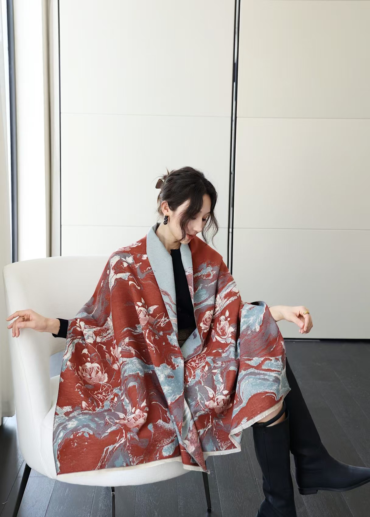 한국 인쇄 새로운 패션 모조 캐시미어 스카프 여성 이중 사용 에어컨 목도리 학생의 두꺼운 양면 따뜻한 목