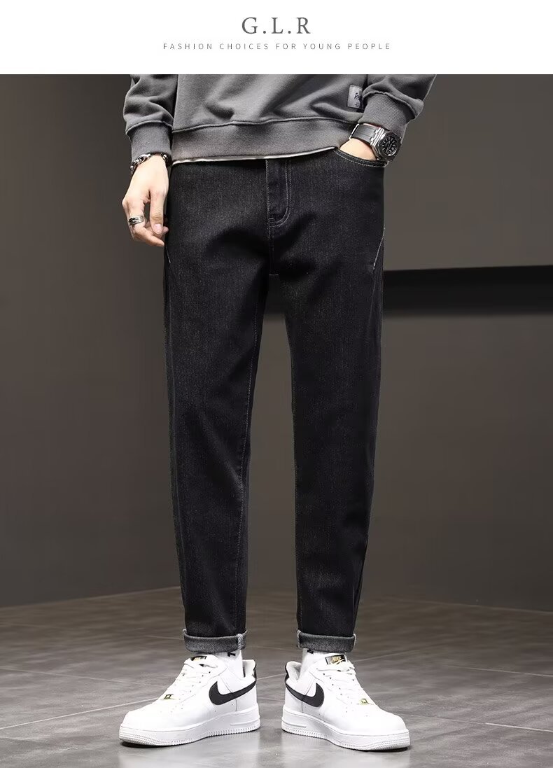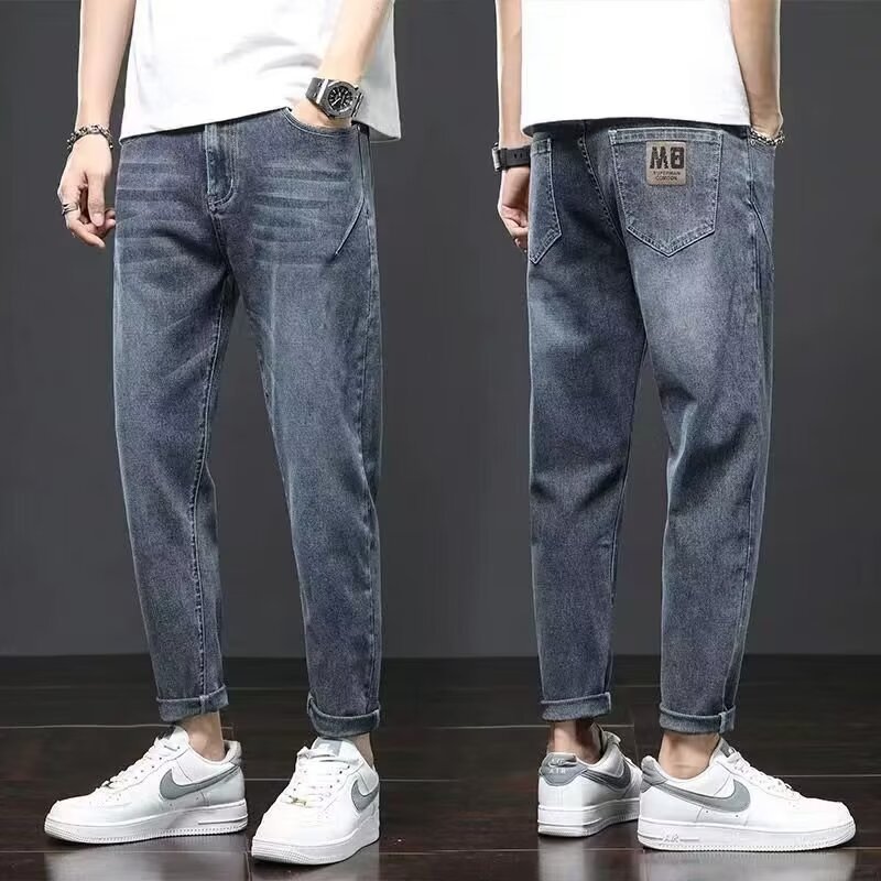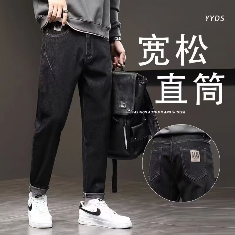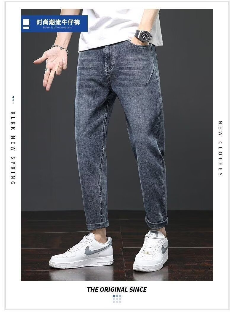 청바지 남성 2024 새로운 패션 브랜드 스트레이트 루즈 캐주얼 바지 얇은 여름 남성 자른 바지스토어 가기