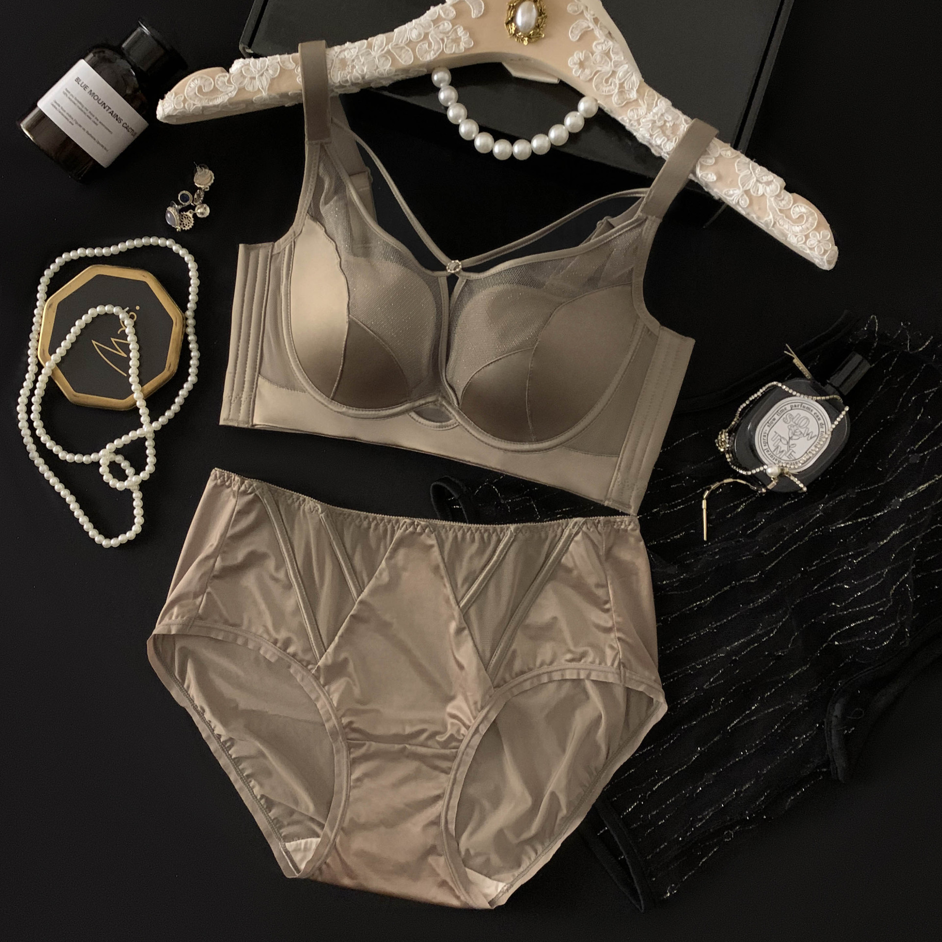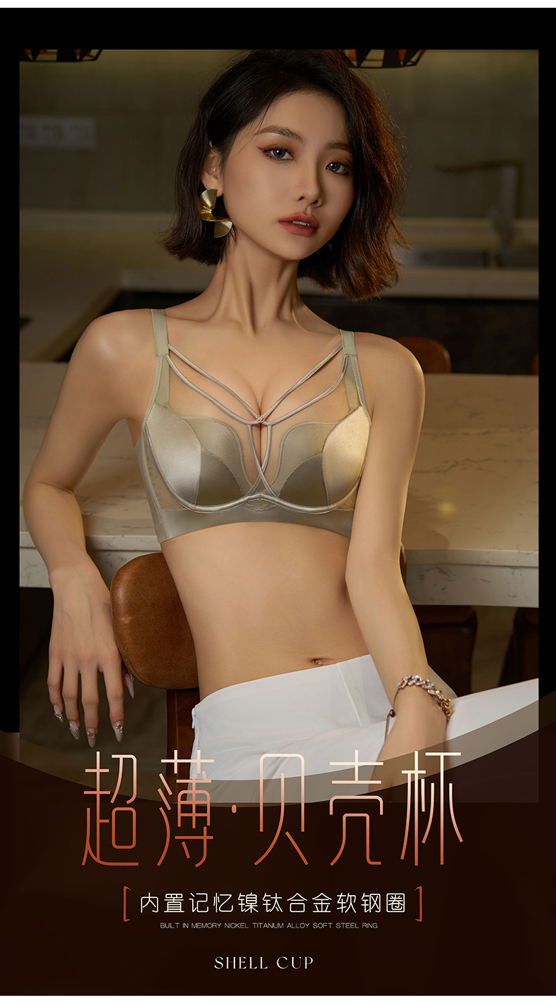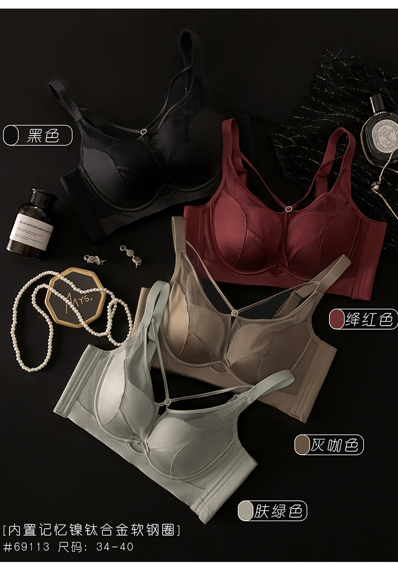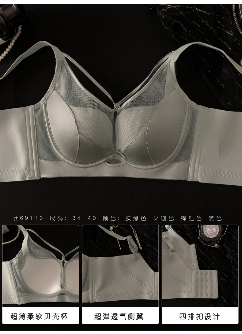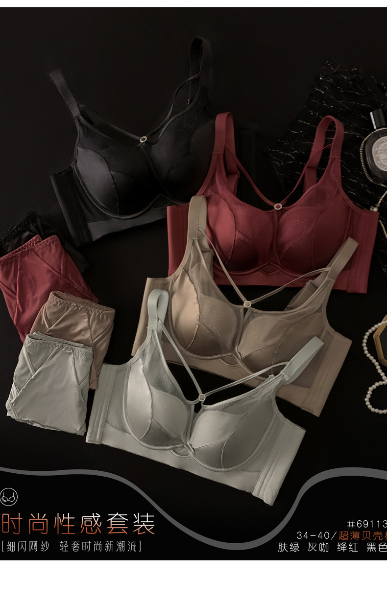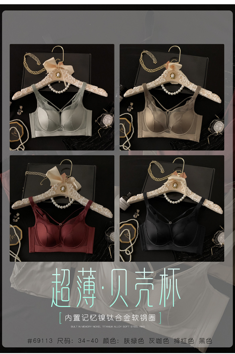 69113 새틴 푸시 업 울트라 얇은 통기성 쉘 컵 속옷 여성 소프트 스틸 링 Auxilum 조정 가능한 브래지어 세트