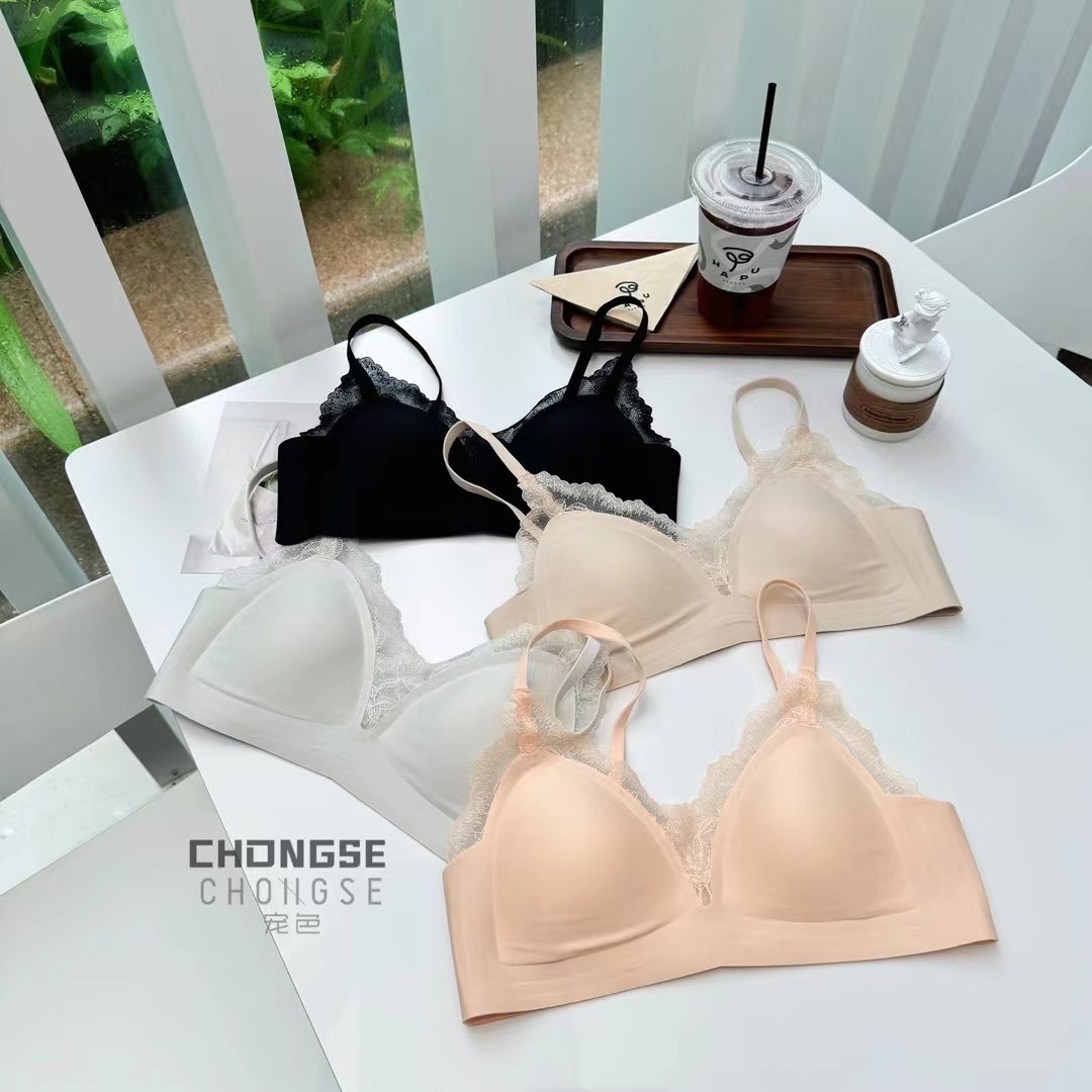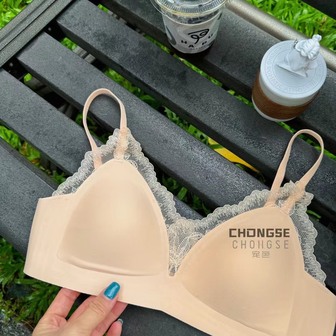 3360 프랑스 삼각형 컵 레이스 젤리 부드러운 지원 부드러운 원활한 속옷 편안한 스틸 링 마이크로 수집 브래지어스토어 가기