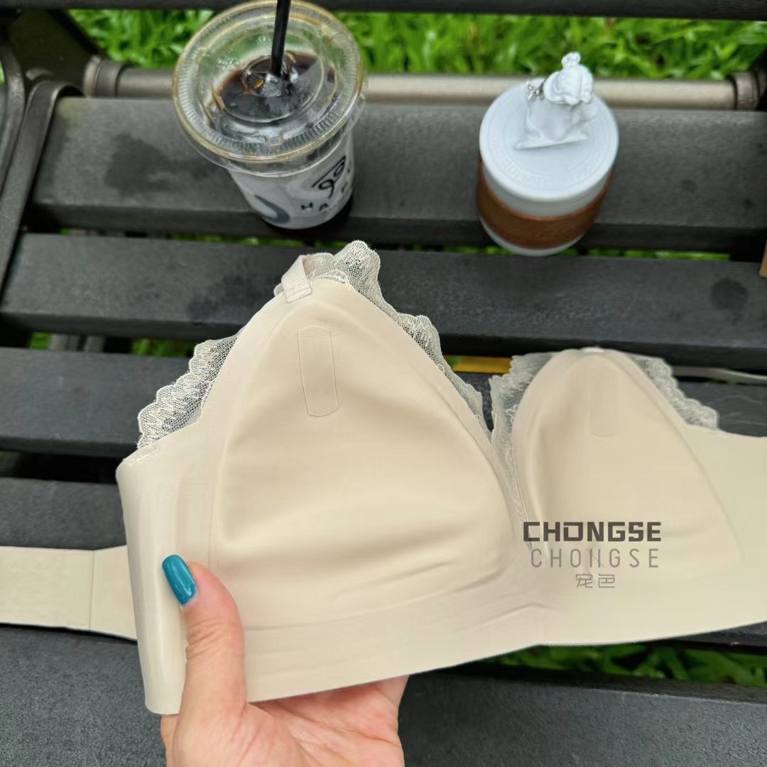 3360 프랑스 삼각형 컵 레이스 젤리 부드러운 지원 부드러운 원활한 속옷 편안한 스틸 링 마이크로 수집 브래지어