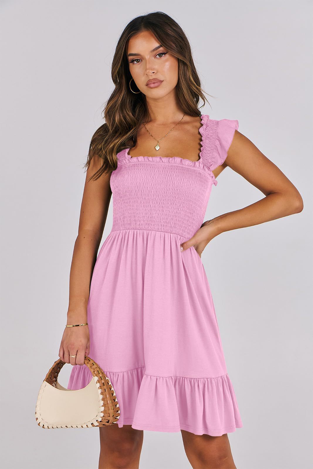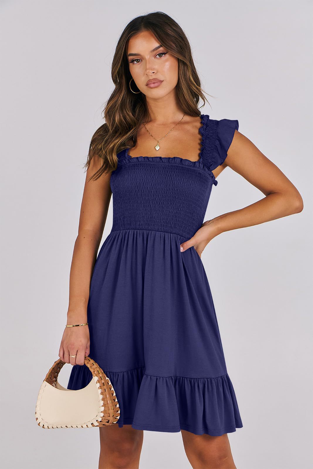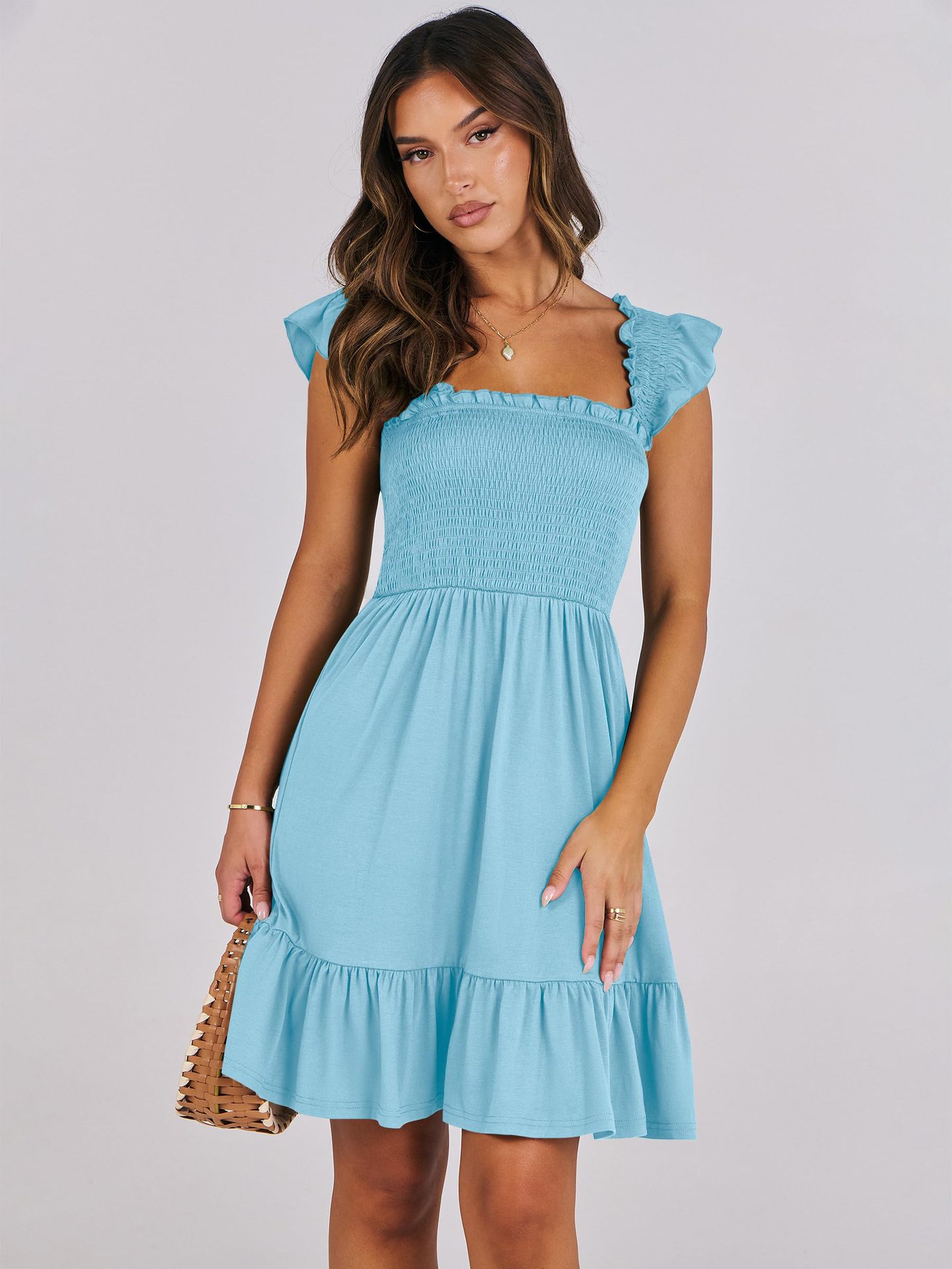 2024 새로운 아마존 유럽과 미국 국경 여성 원피스 단색 스퀘어 칼라 미니 민소매 스커트 여름 여성스토어 가기