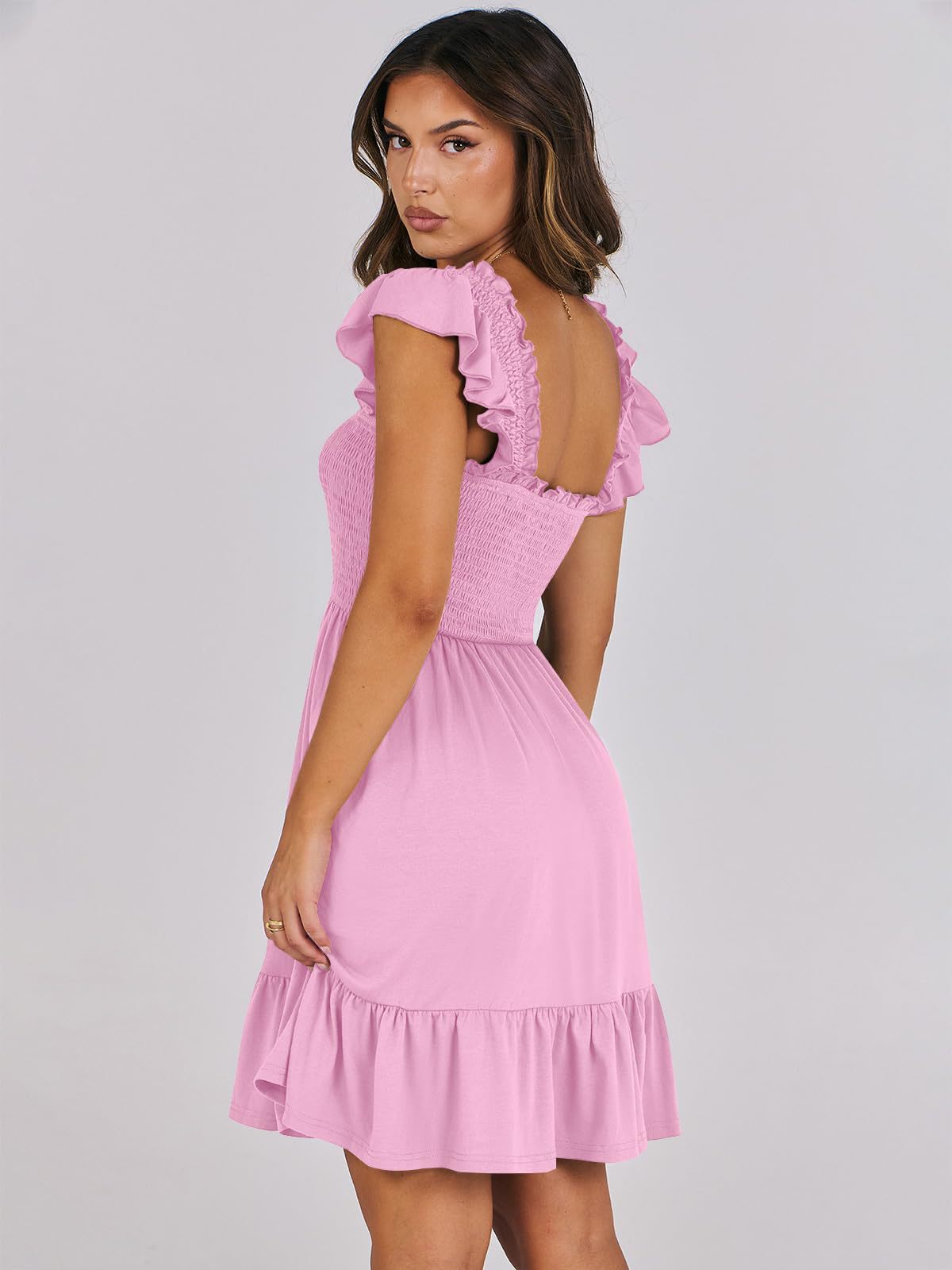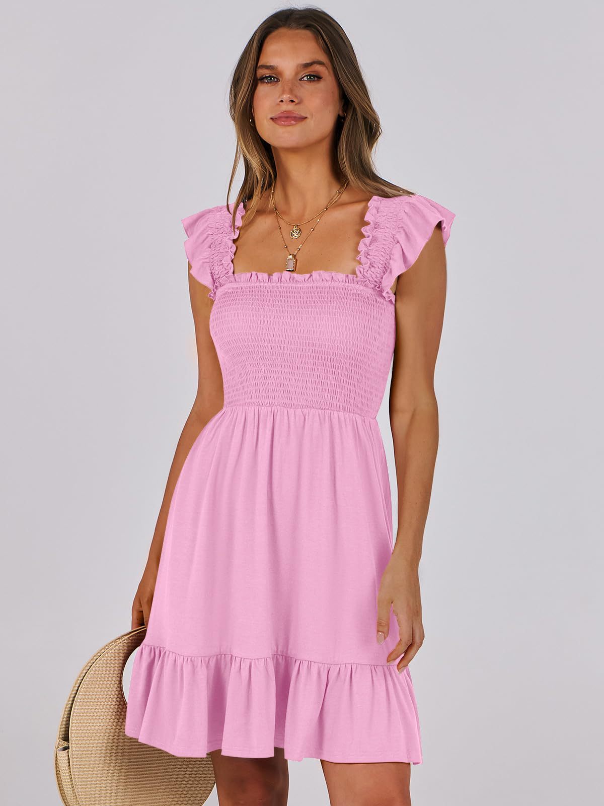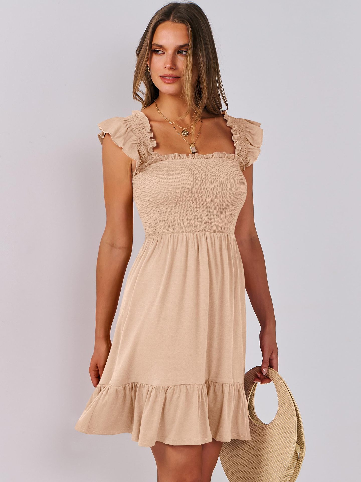 2024 새로운 아마존 유럽과 미국 국경 여성 원피스 단색 스퀘어 칼라 미니 민소매 스커트 여름 여성스토어 가기