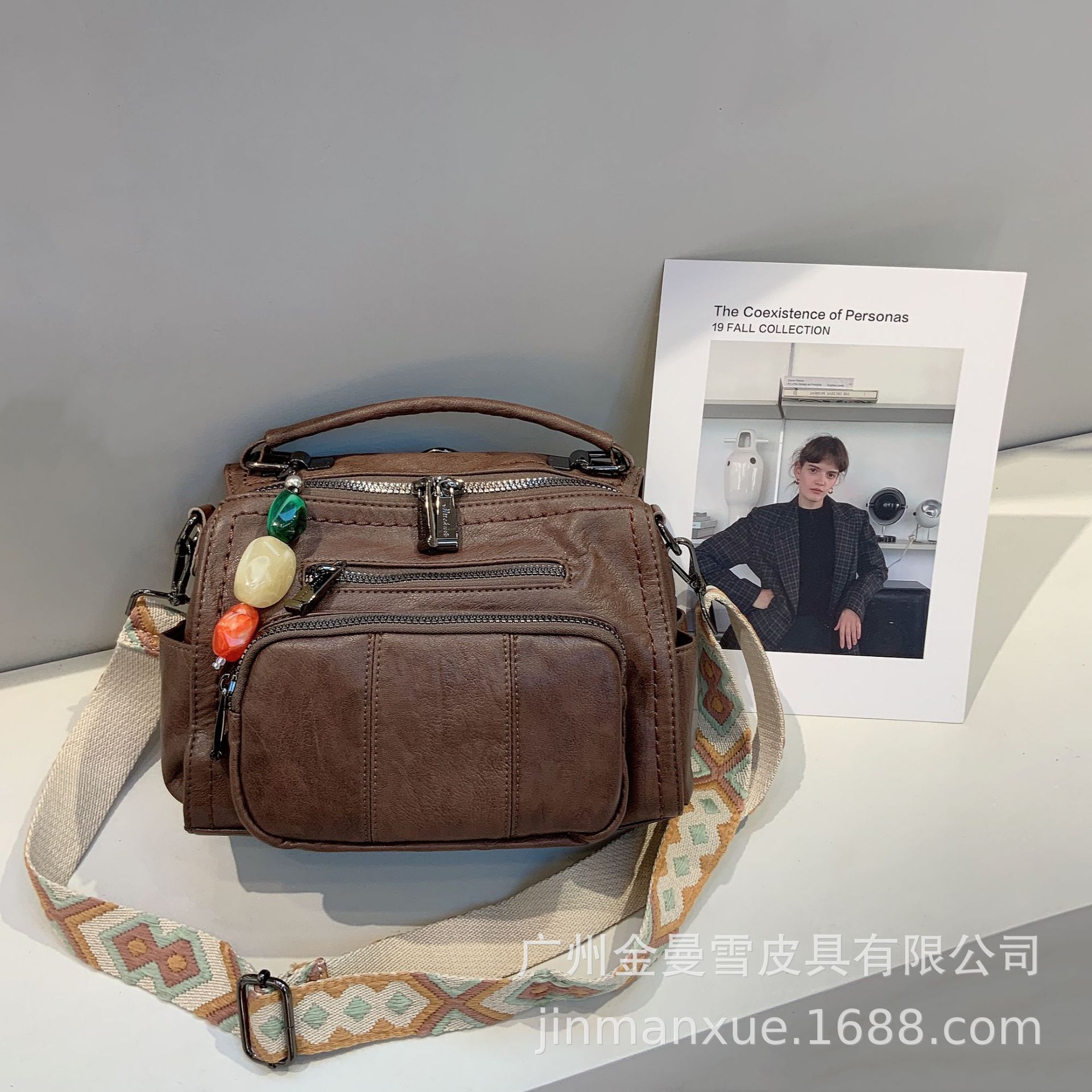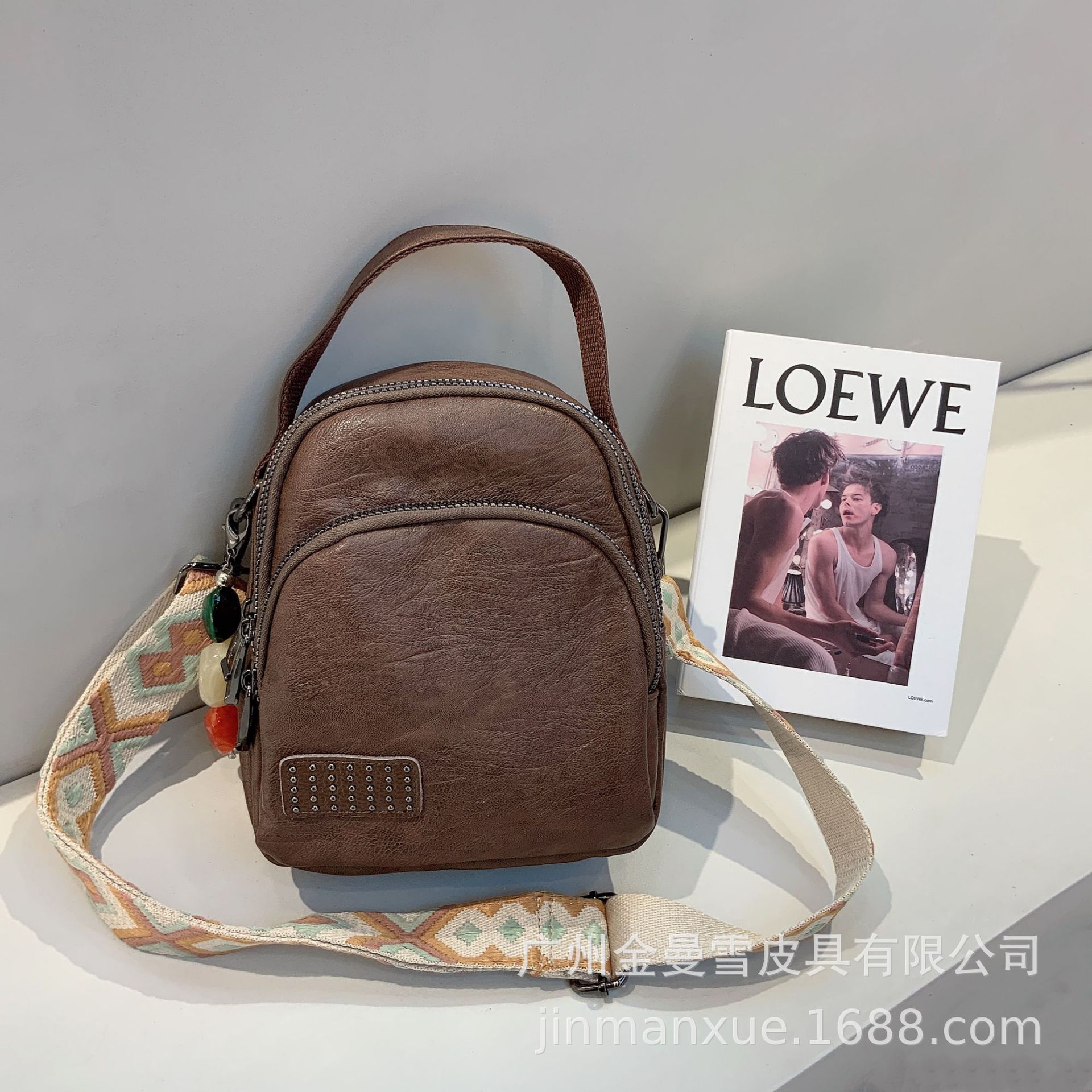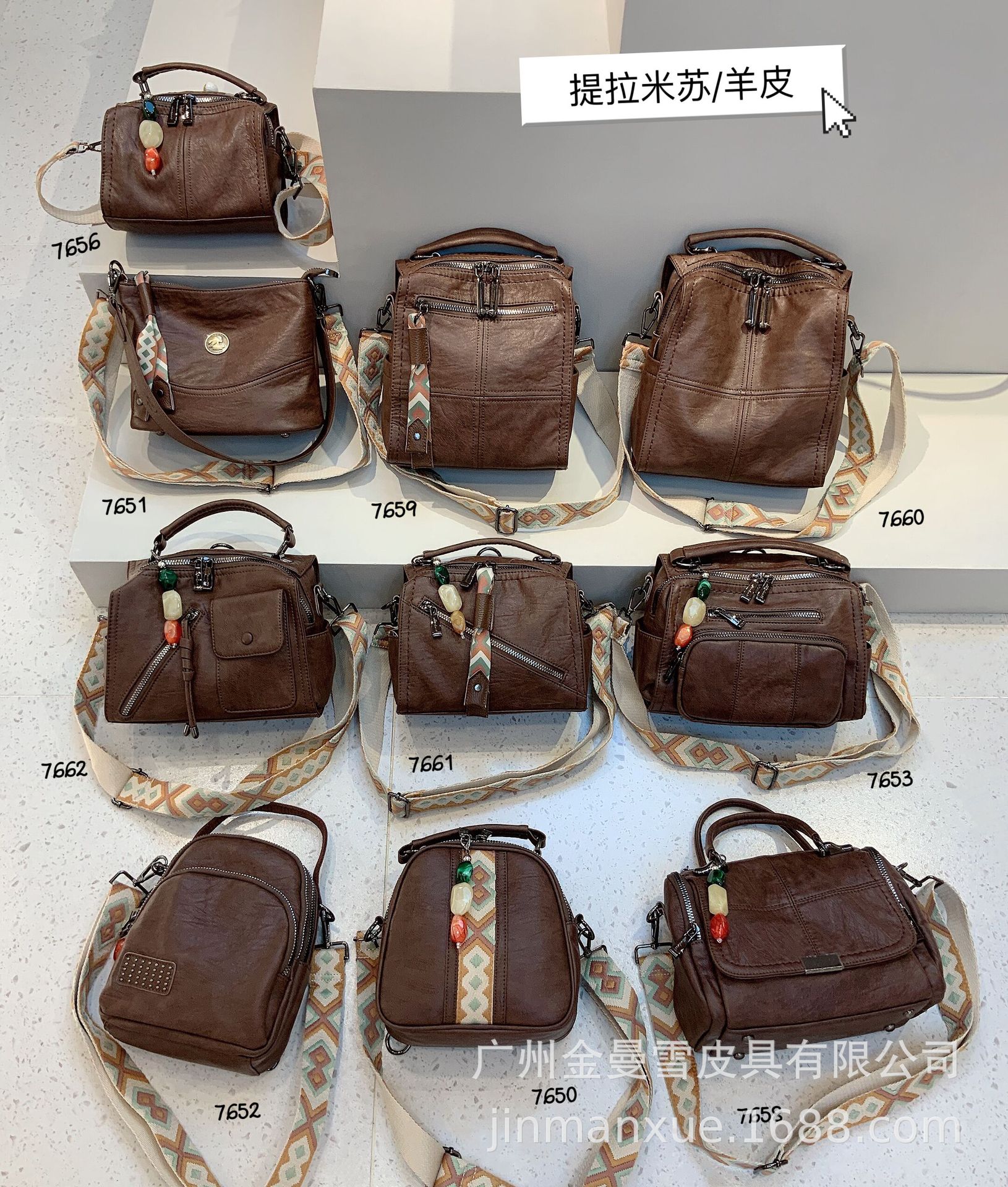 2025년 신상 양가죽 티라미수 오리지널 컬리지 스타일 레트로 심플 크로스백 캐주얼 숄더백/백팩스토어 가기