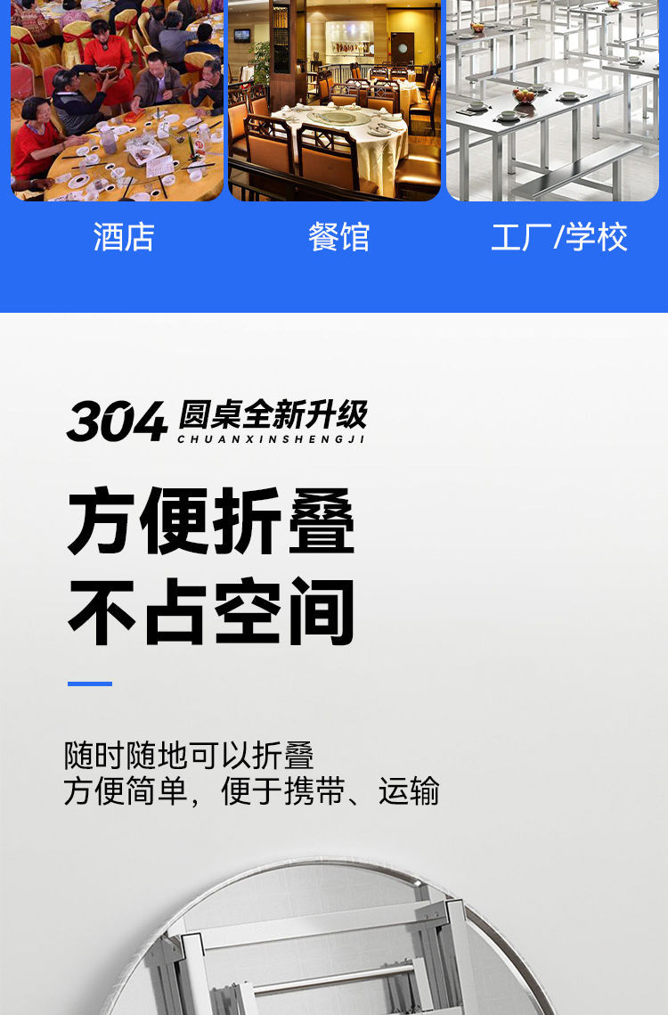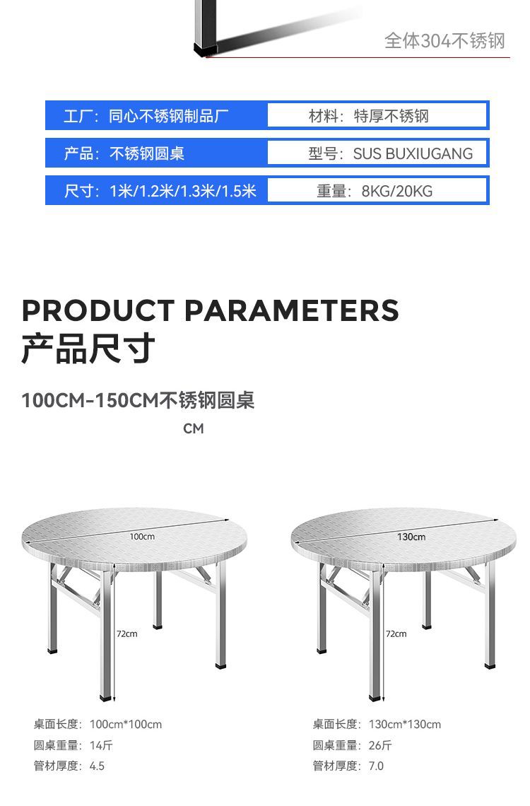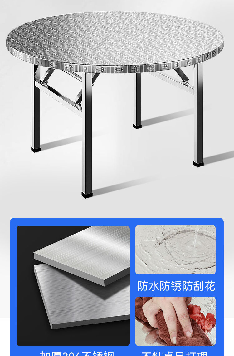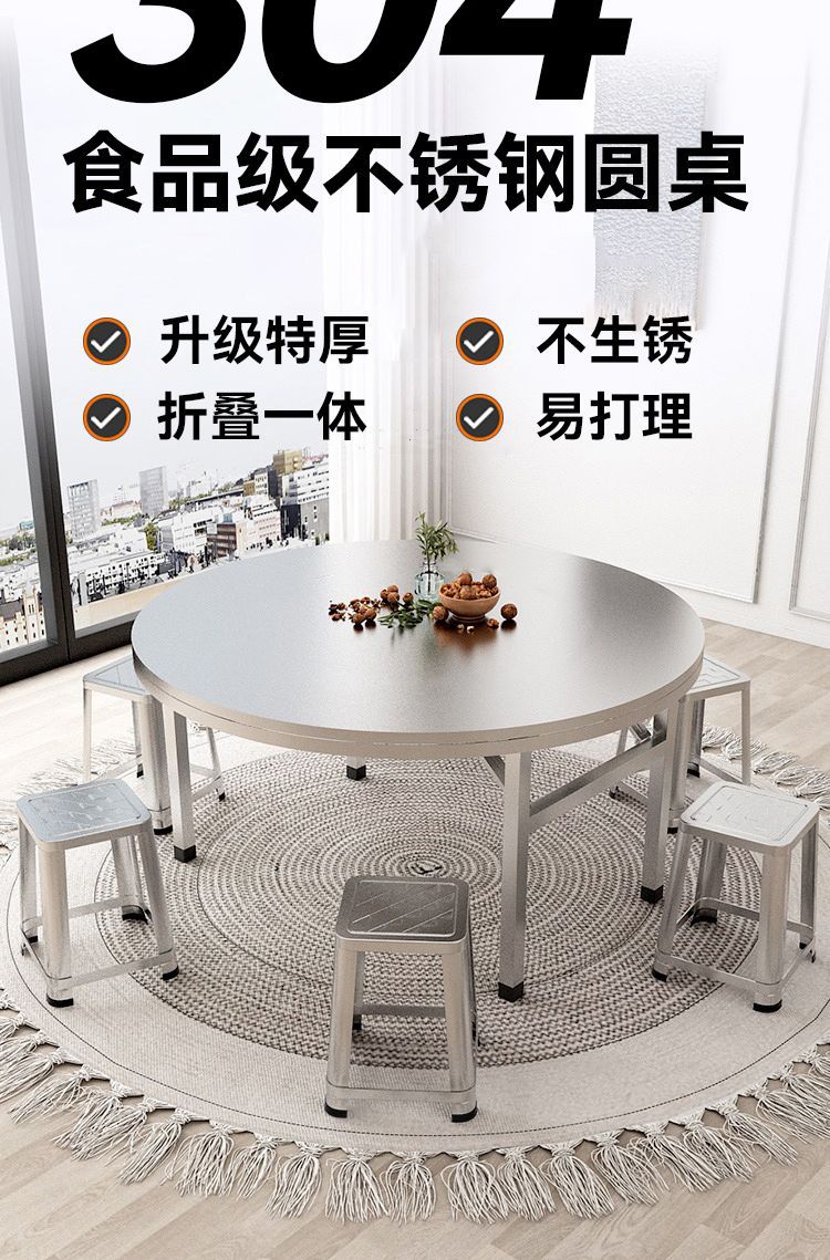 두꺼운 스테인레스 스틸 테이블 접이식 설치가 필요없는 대형 원형 테이블 홈 다이닝 스톨 테이블 호텔 레스토랑 원형 테이블스토어 가기