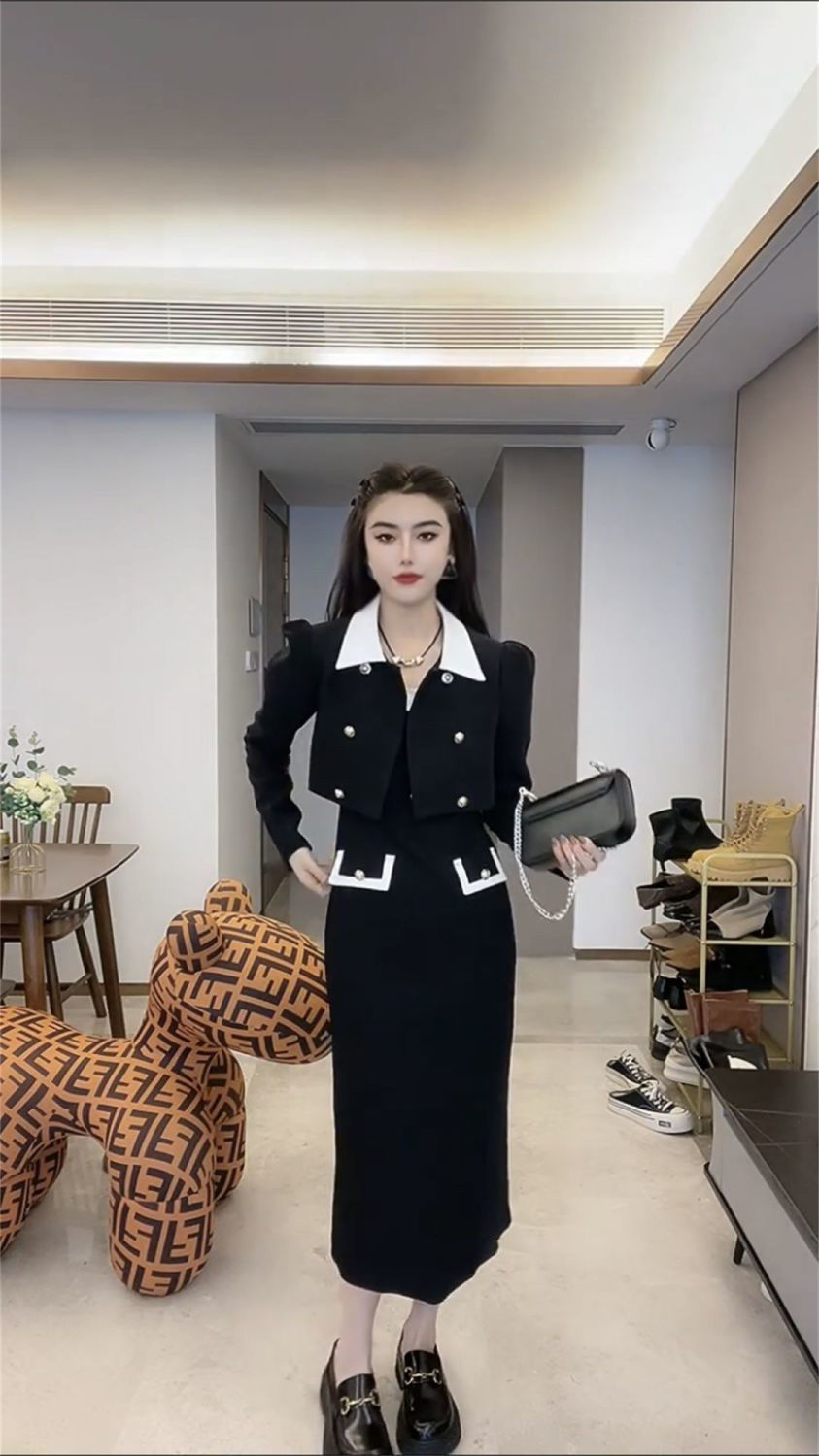 이른 가을 새로운 여성 의류 샤넬 스타일 세트 원피스 여성 패션 하이 엔드 센스 작은 원피스 우아한 사교계 하이 엔드 투피스 세트스토어 가기