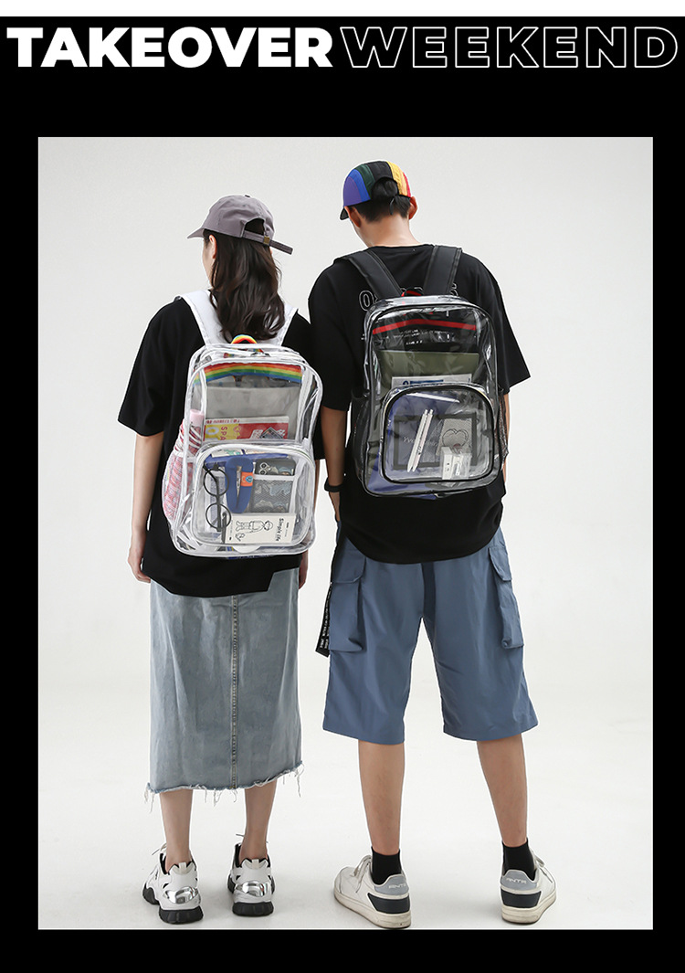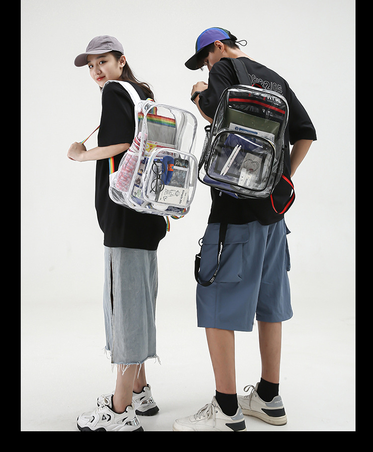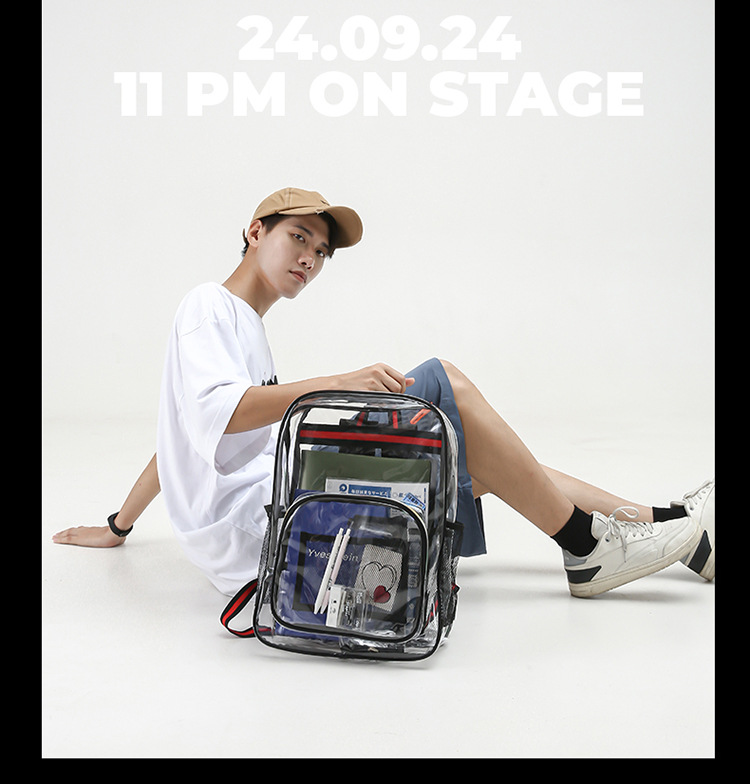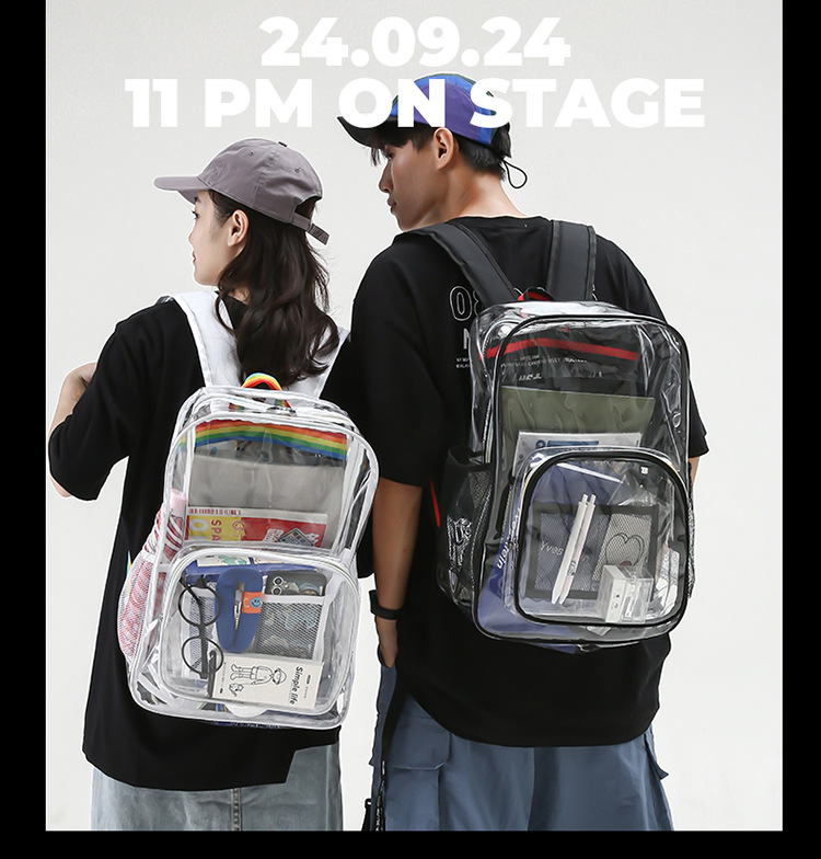 국경 간 인기 투명 배낭 경기장 PVC 투명 가방 스팟 초등 및 중등 학생 대용량 여행 배낭스토어 가기