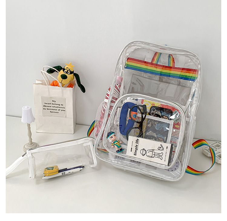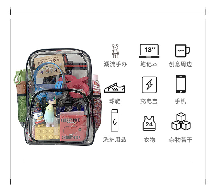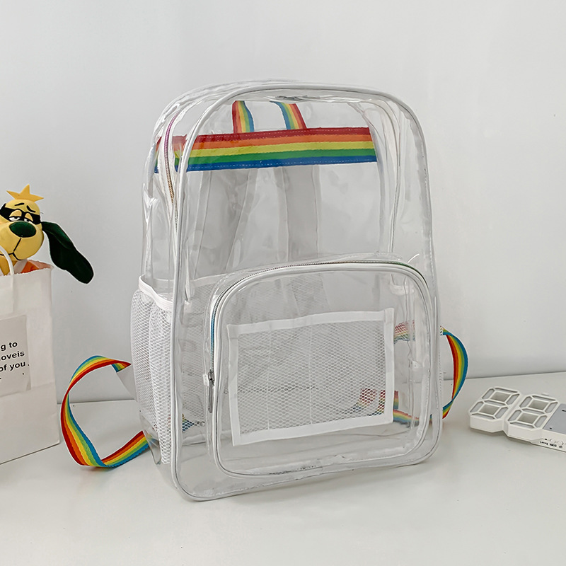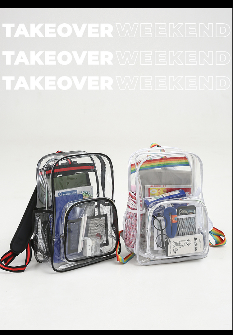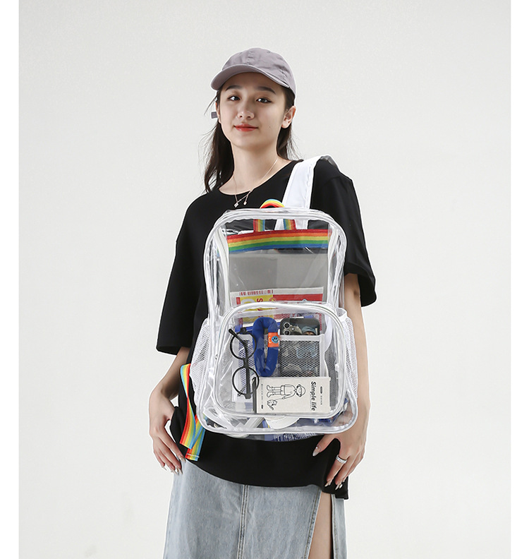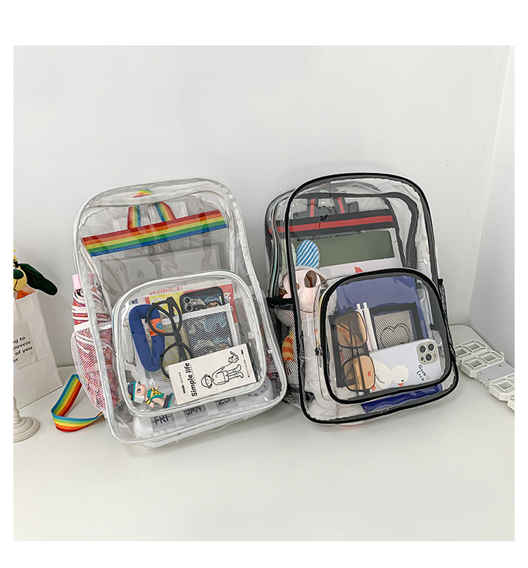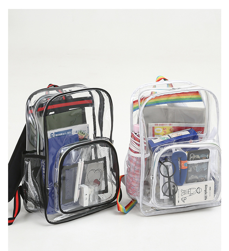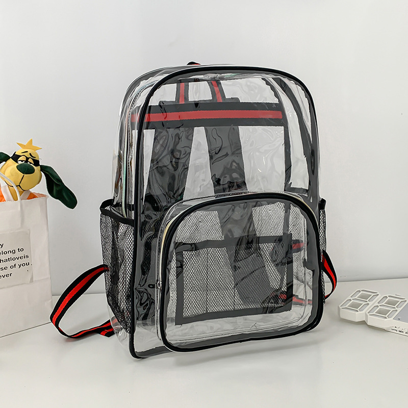 국경 간 인기 투명 배낭 경기장 PVC 투명 가방 스팟 초등 및 중등 학생 대용량 여행 배낭