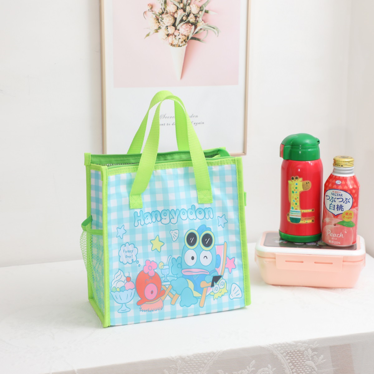 Culomi Ugly Fish Frog 대용량 휴대용 지퍼 학교를위한 식사 가방을 가진 학생들을위한 도시락 가방