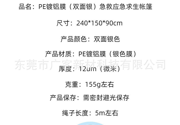 야외 알루미늄 호일 반사 텐트 냉방 단열 필드 피난처 지진 구호 PE 알루미늄 필름 실버 비상 텐트