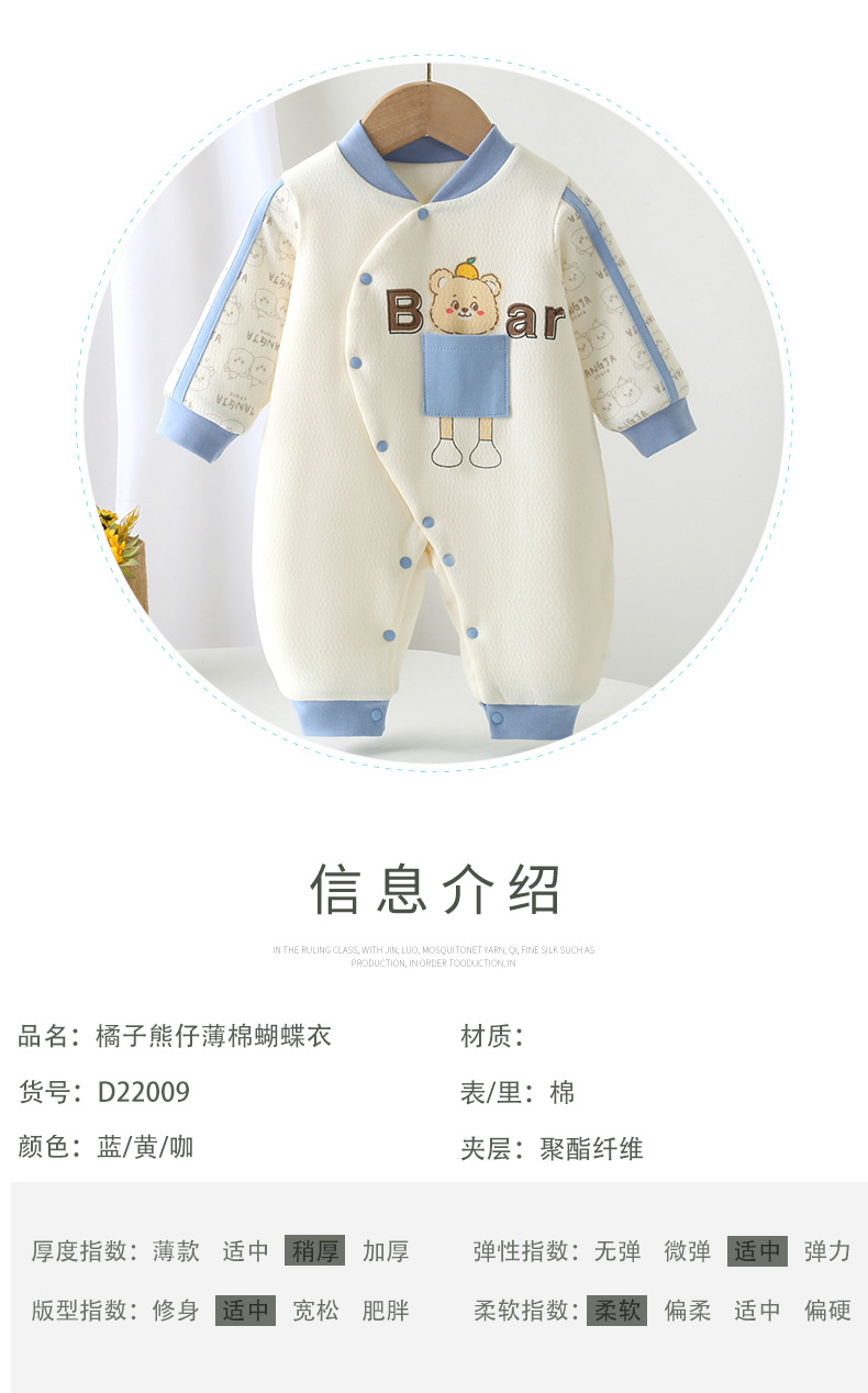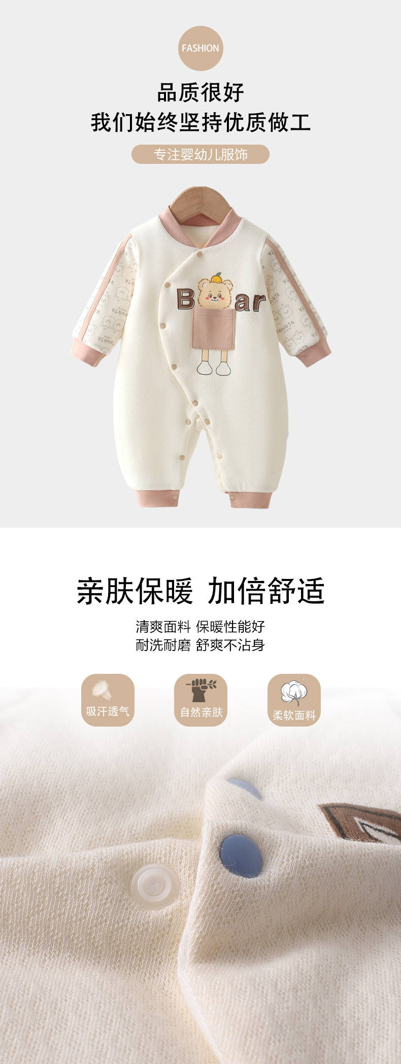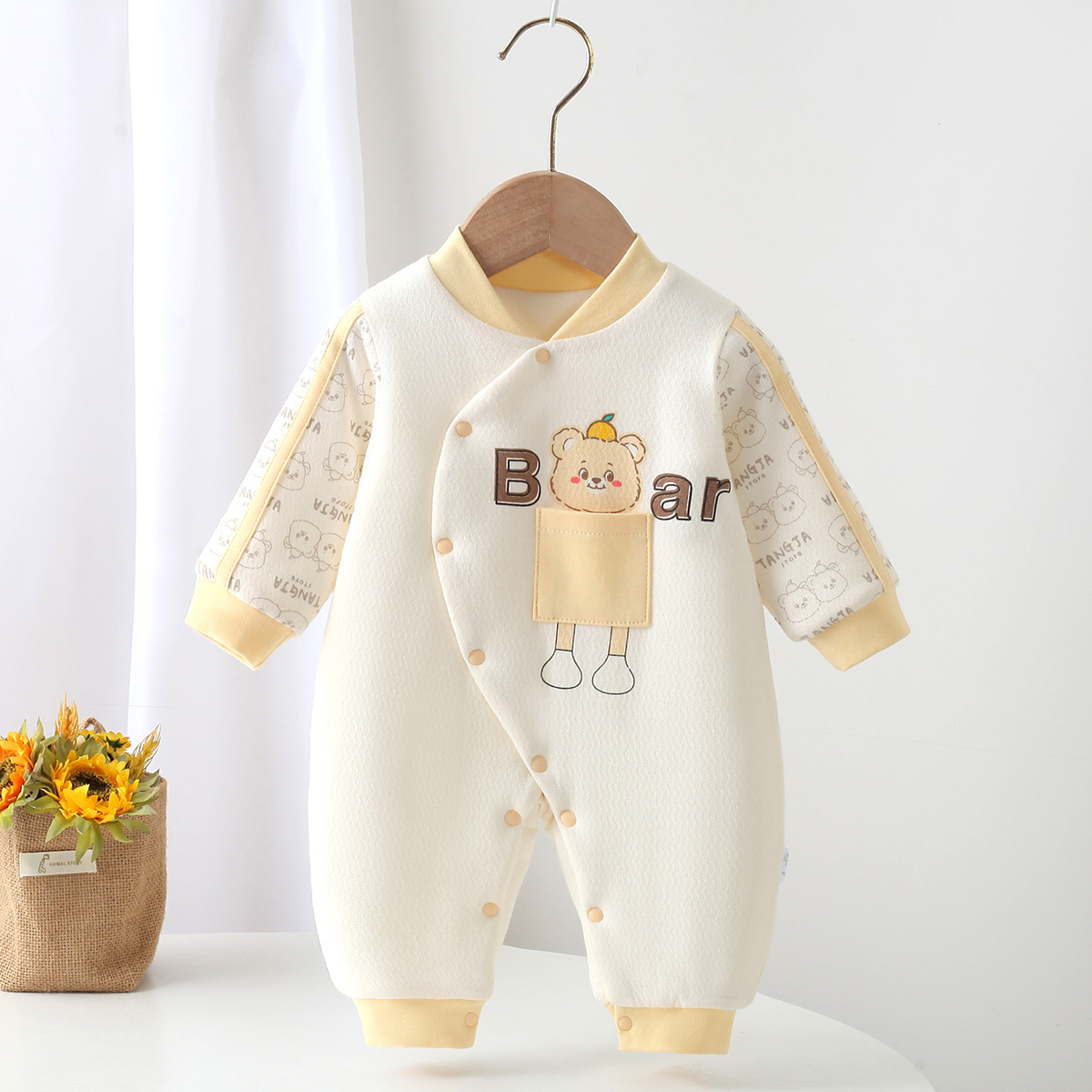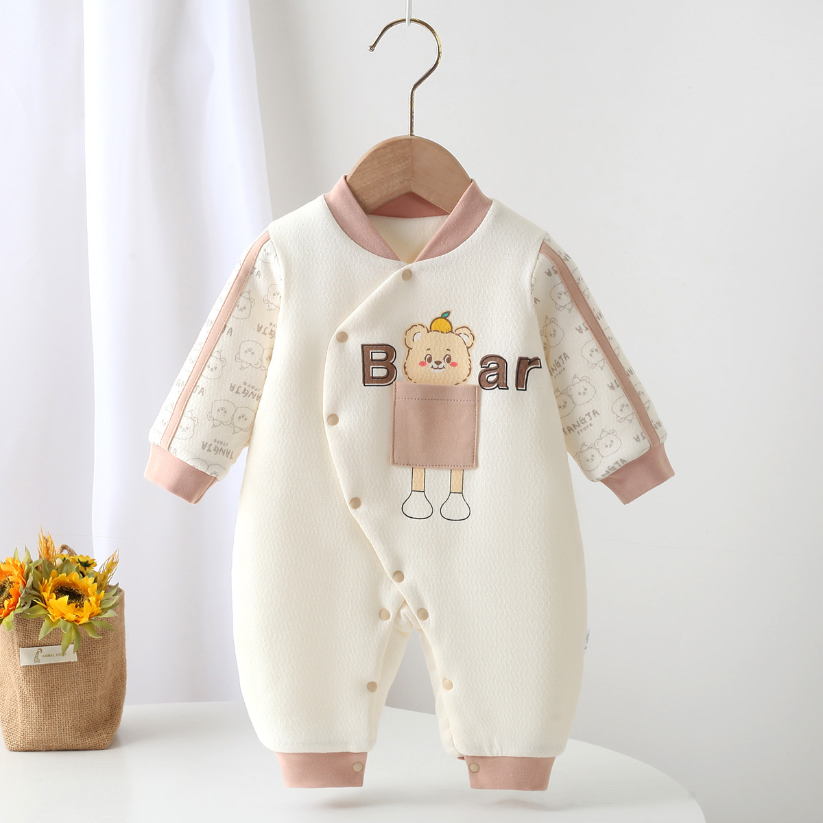 가을과 겨울 새로운 120g 면화 패딩 신생아 편심 은폐 버클 점프 수트 아기가 점프 수트를 나눕니다.