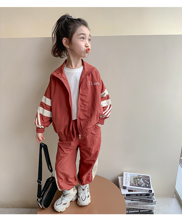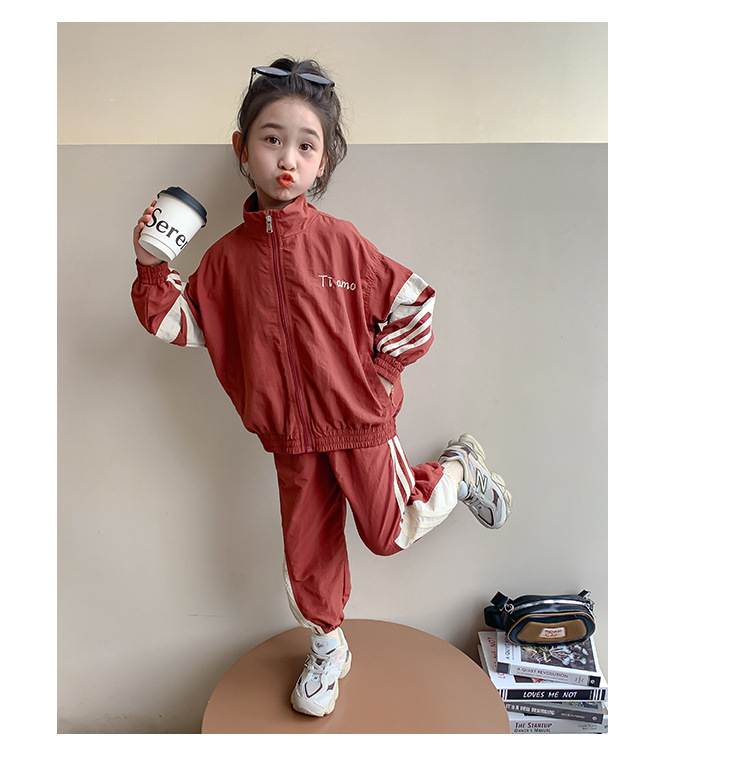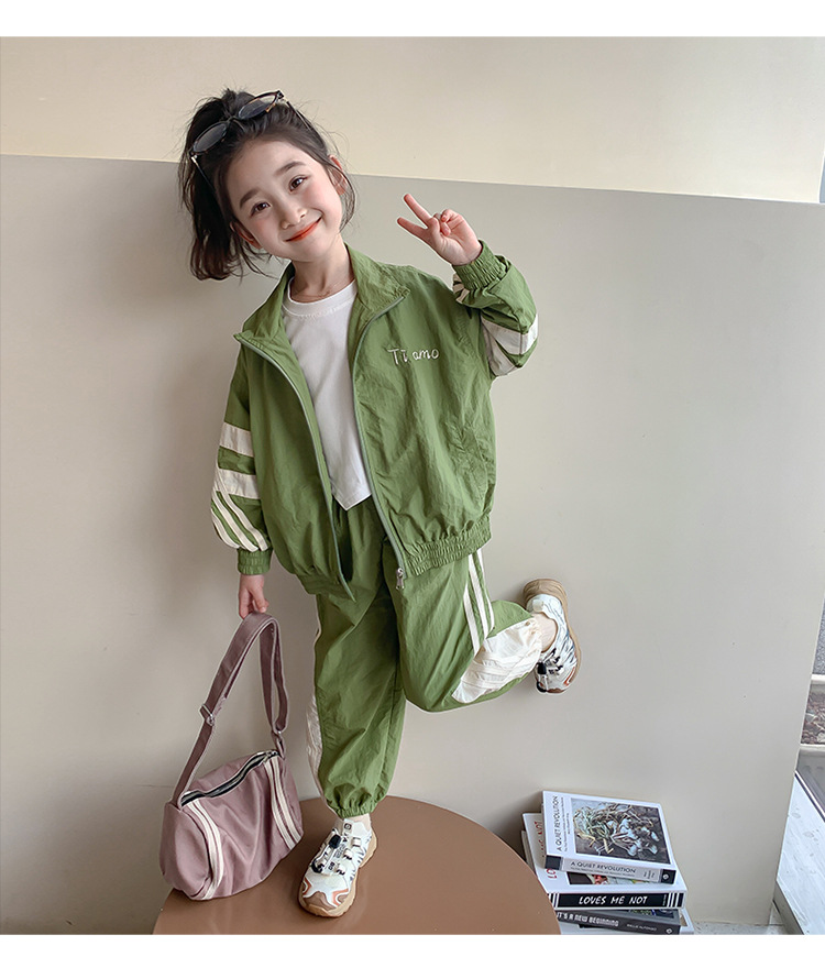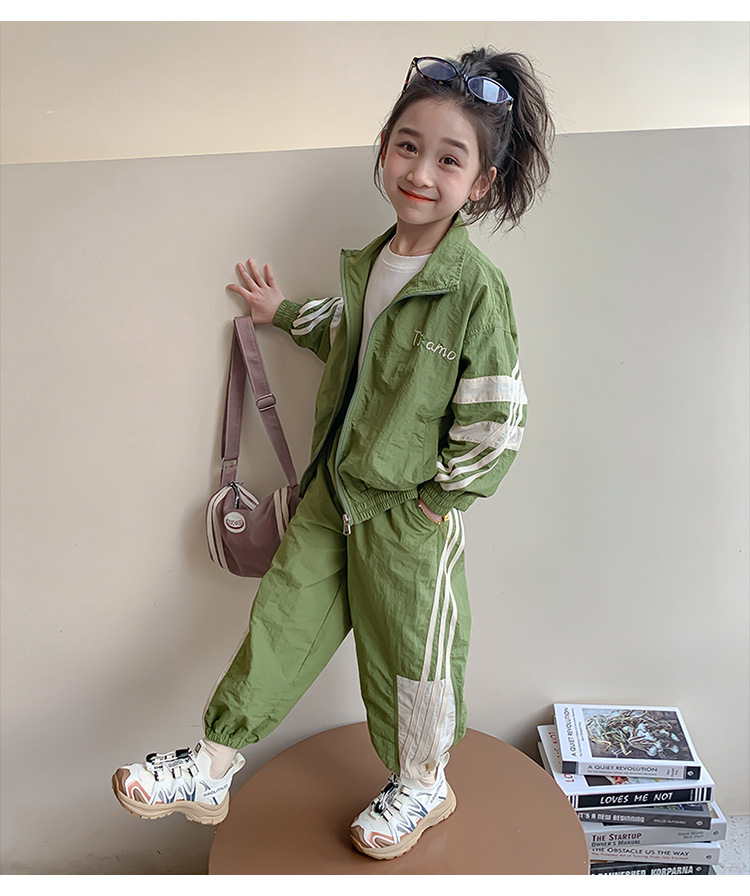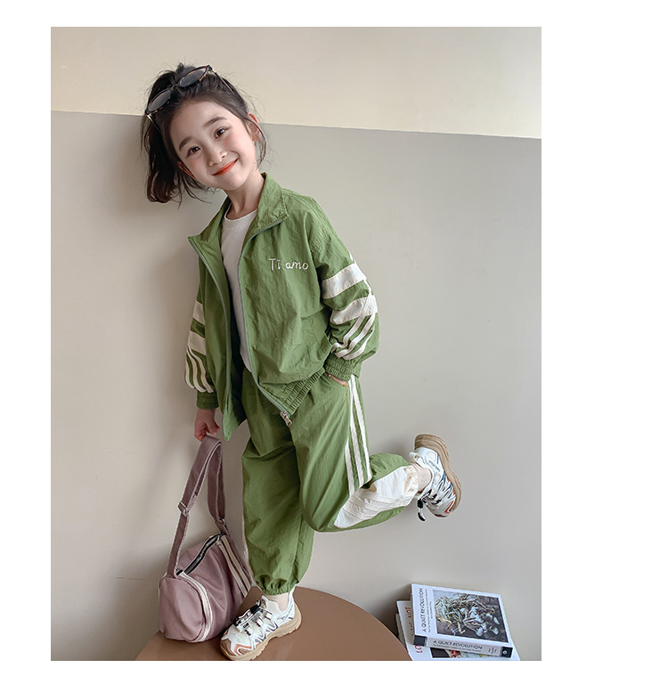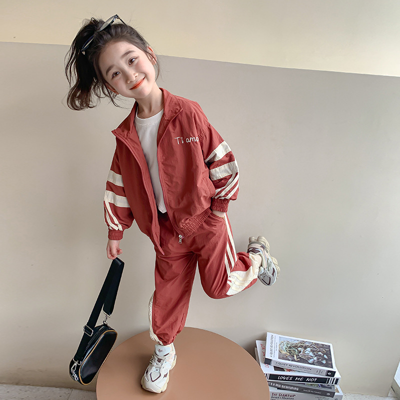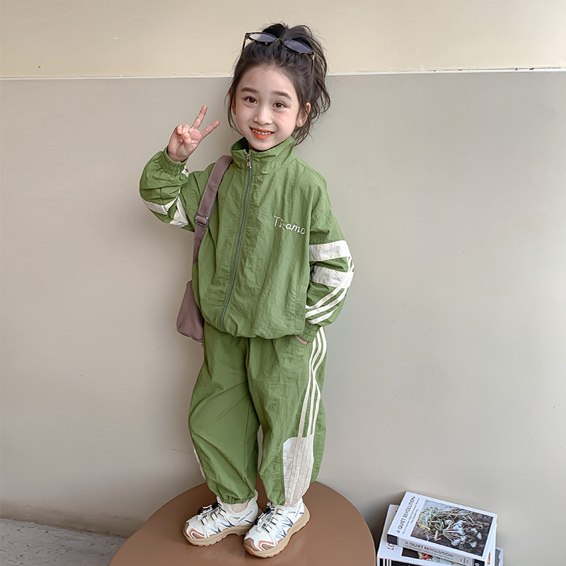 소녀 세트 봄과 가을 2024 새로운 패션 어린 소녀의 스트리퍼 러시 옷 투피스 세트 어린이 옷스토어 가기