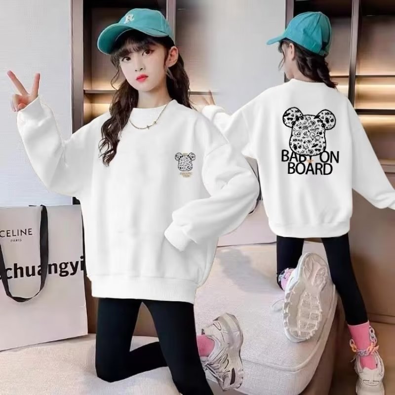 소녀 스웨터 2024 년 서양식 새로운 도착 대형 아동베이스 셔츠 한국 느슨한 어린 소녀베이스 셔츠