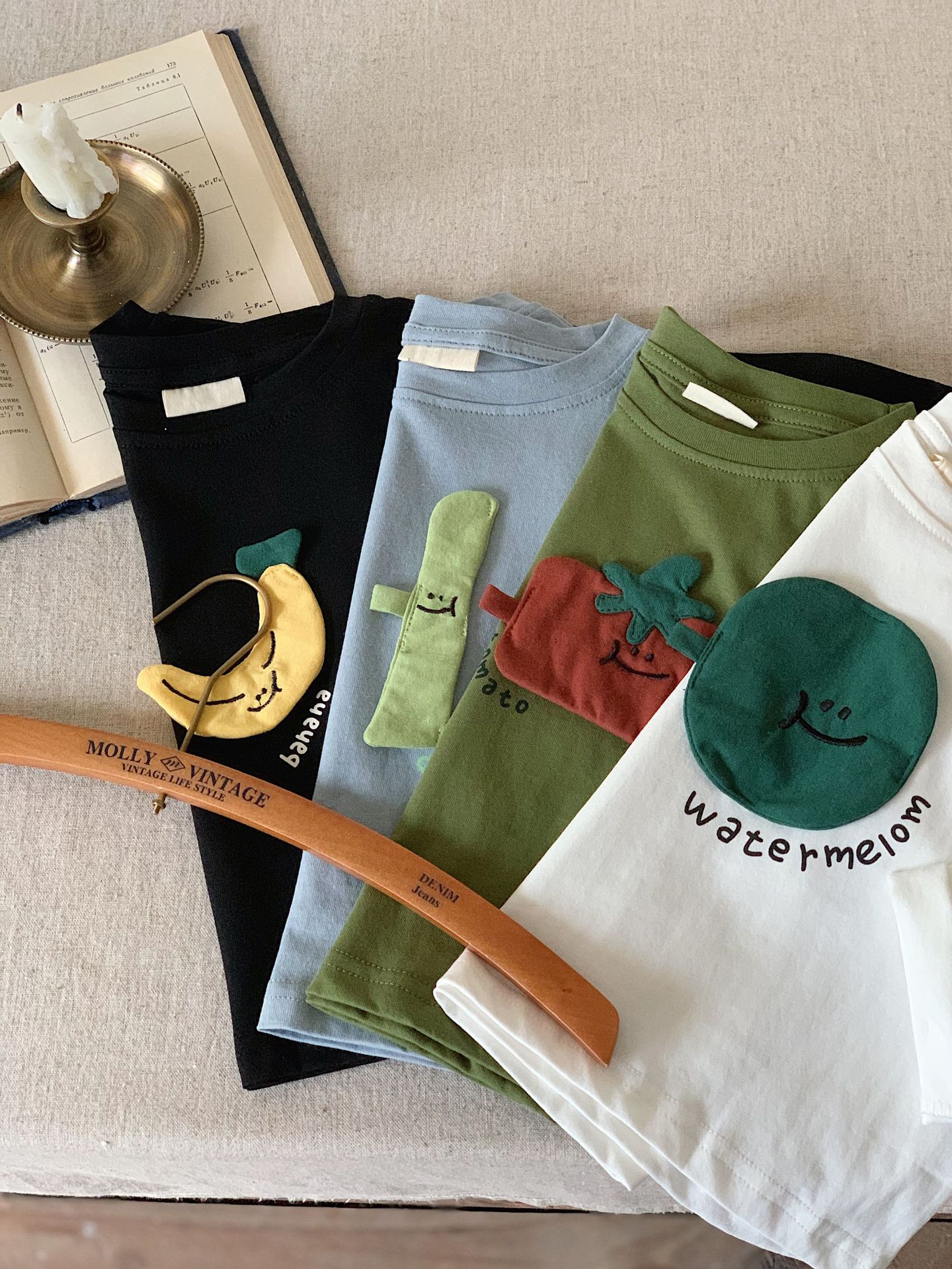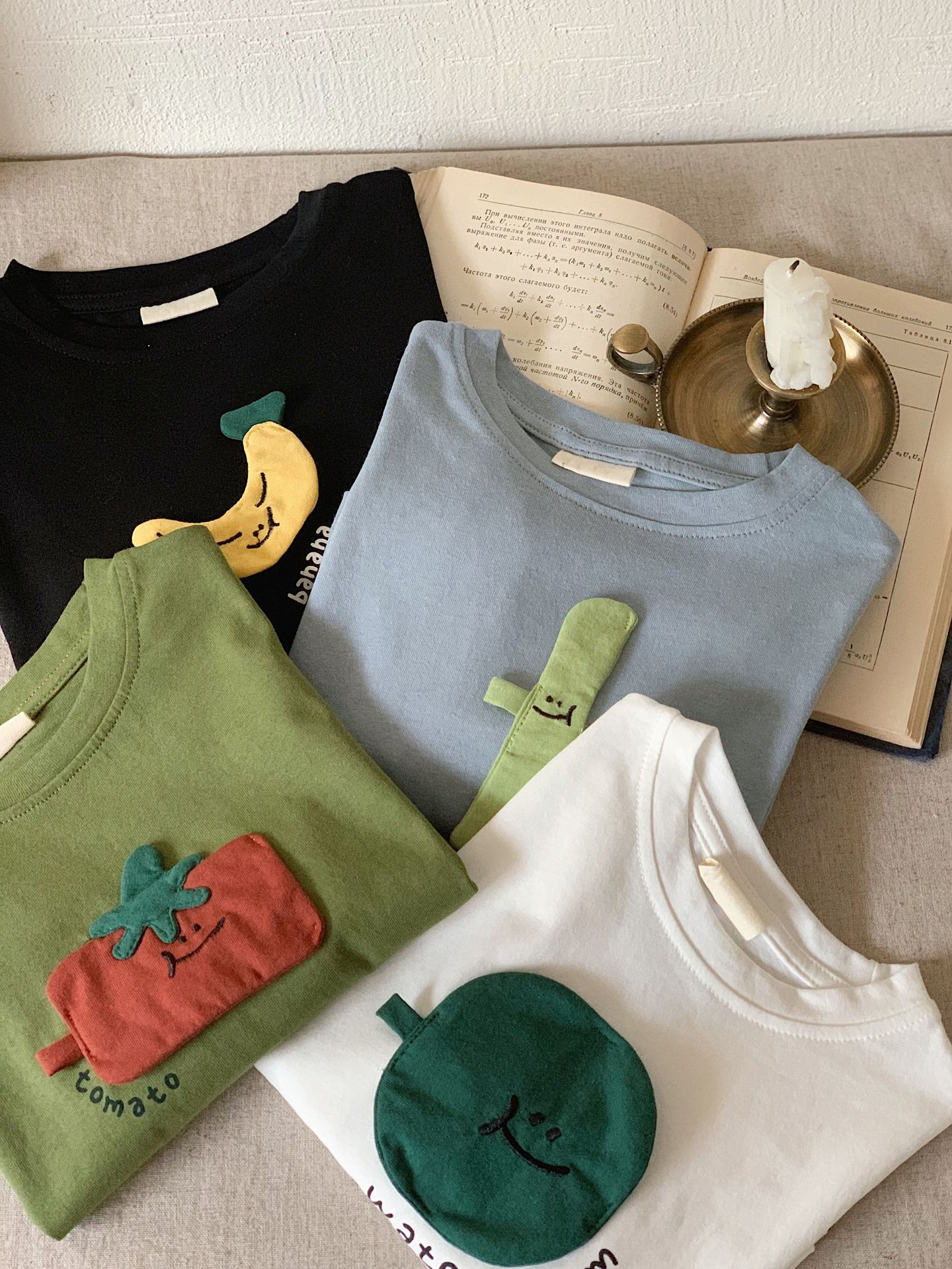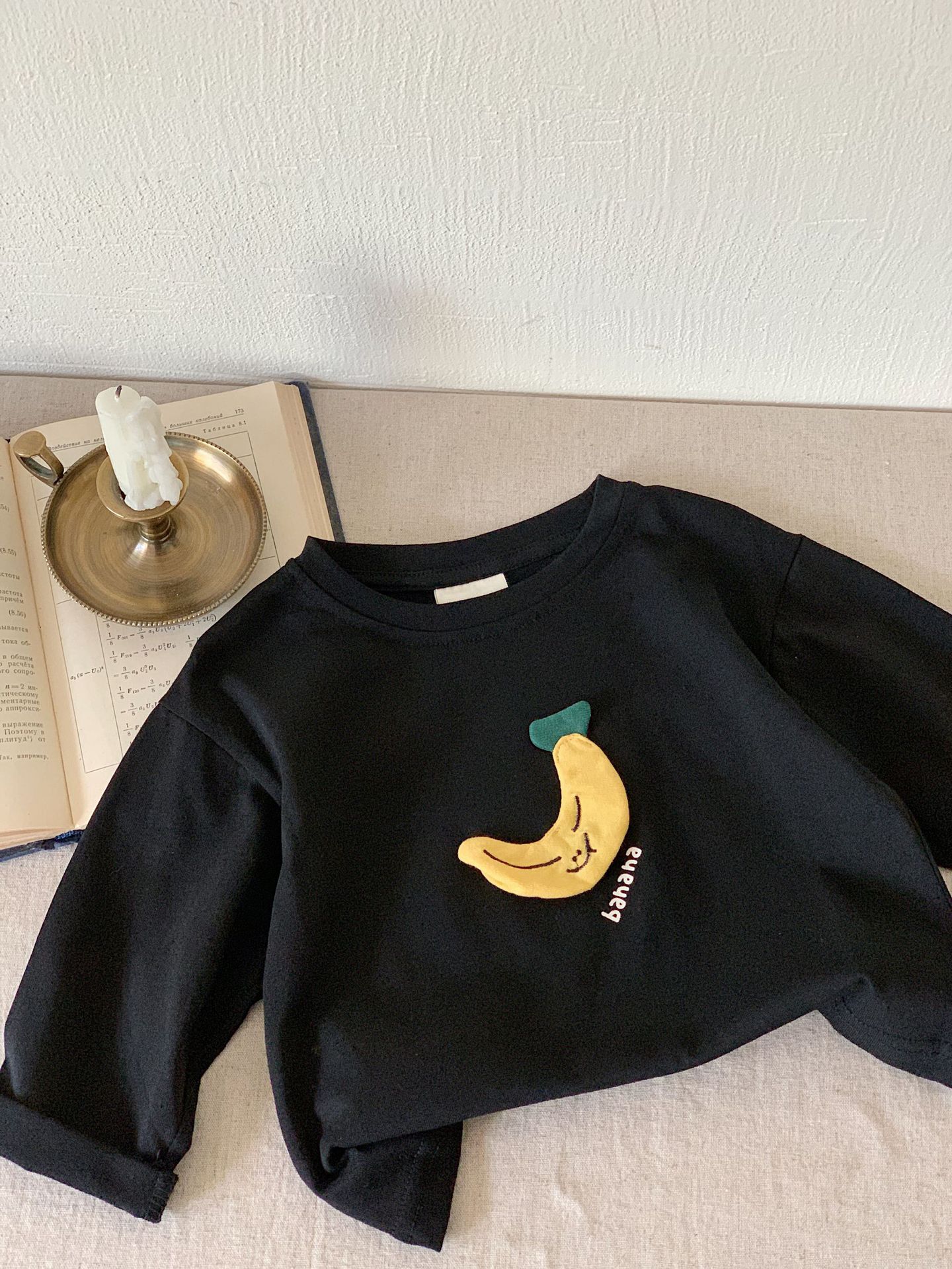 부가탕 2025 가을 아동복 일본 스타일 티셔츠 유아용 긴팔 남녀공용 입체 패치 과일 디자인 이너웨어스토어 가기