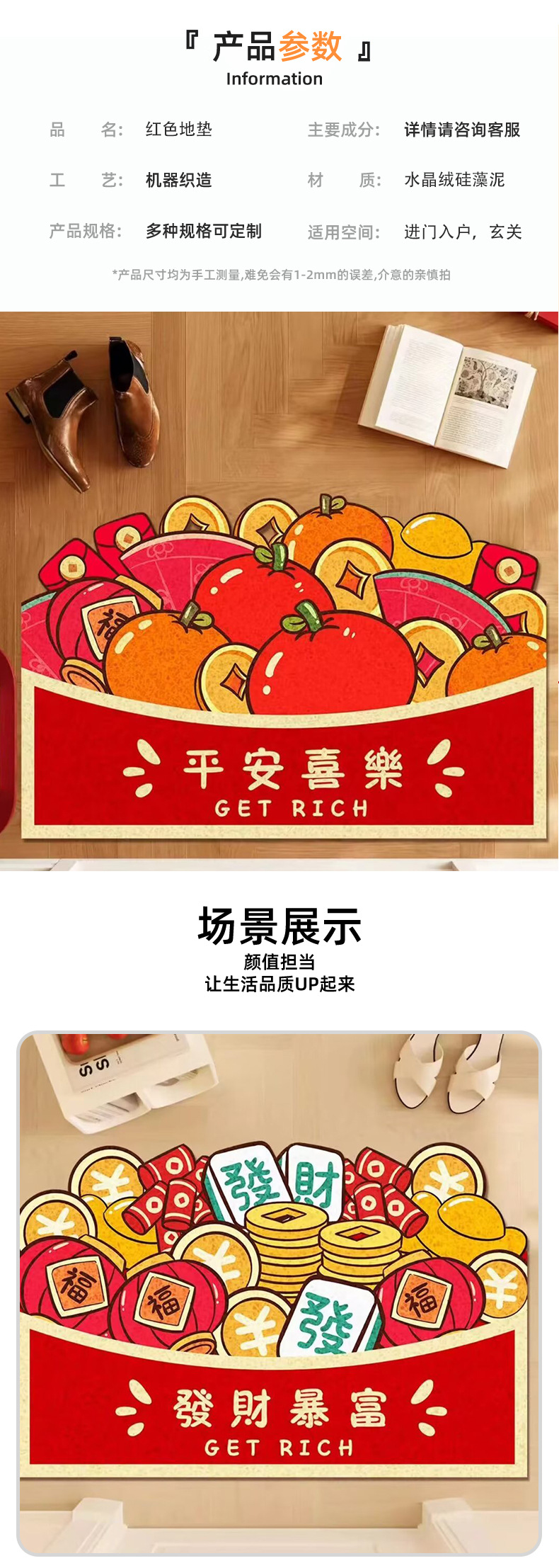 可定尺寸入户门硅藻泥地垫地毯门口脚垫进门家用红色入户门地垫