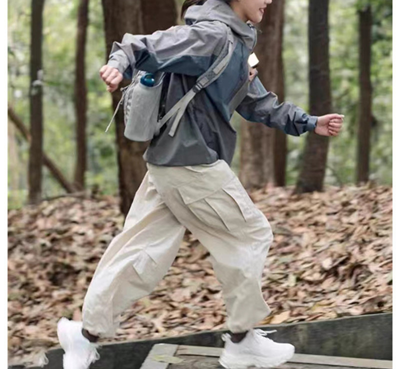 회색 스티칭 충전 재킷 여성 봄 새로운 미국 스타일 복고풍 야외 커플 등산 세트 방풍 재킷 트렌디