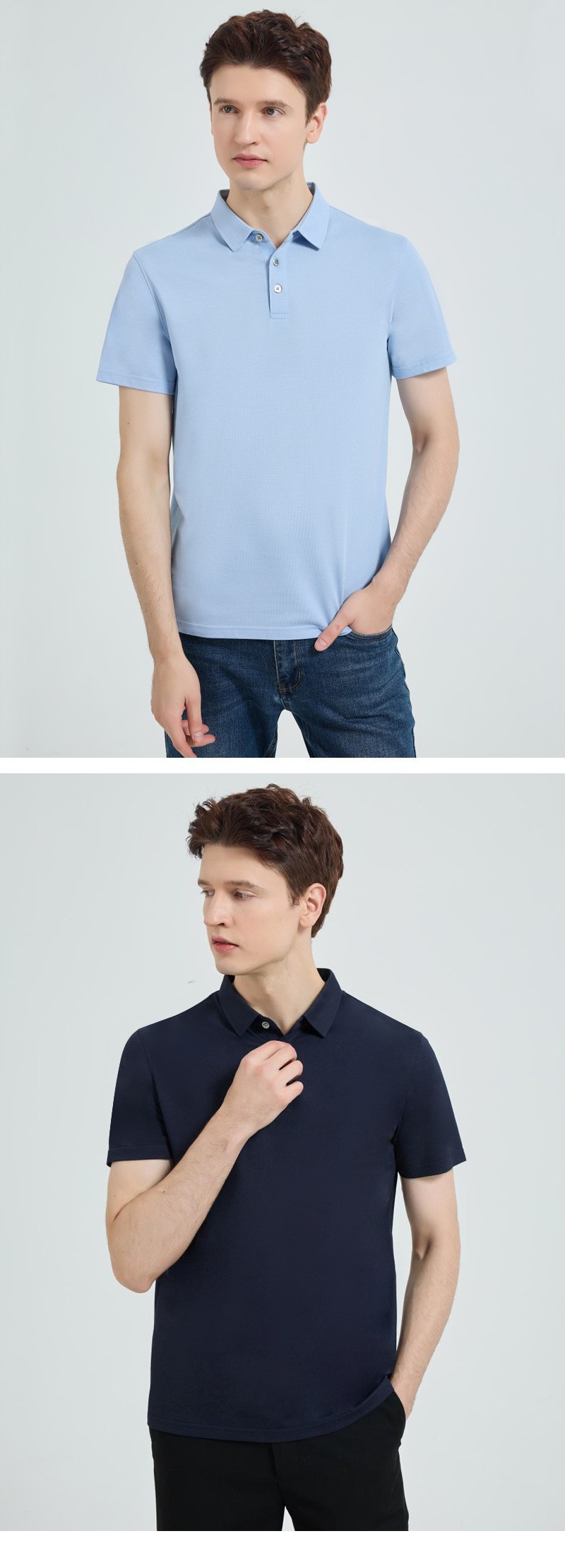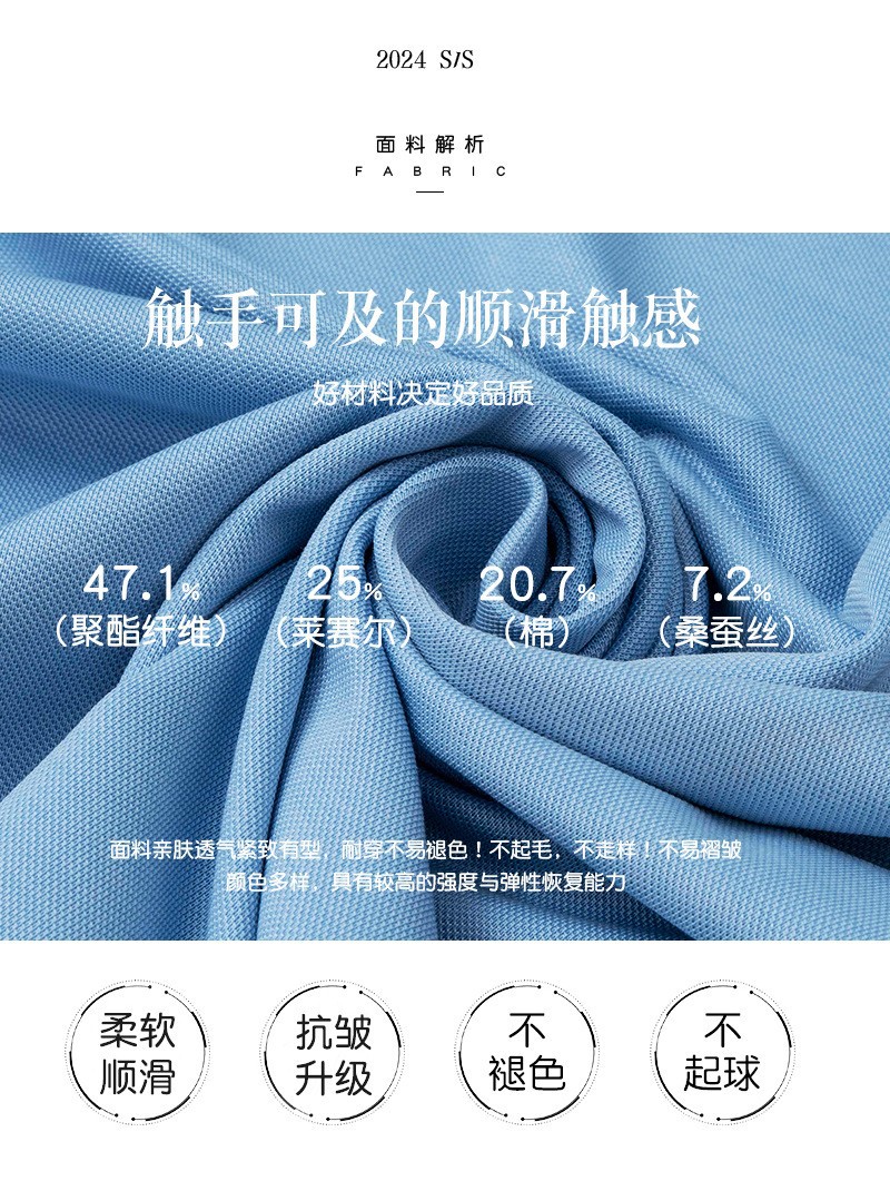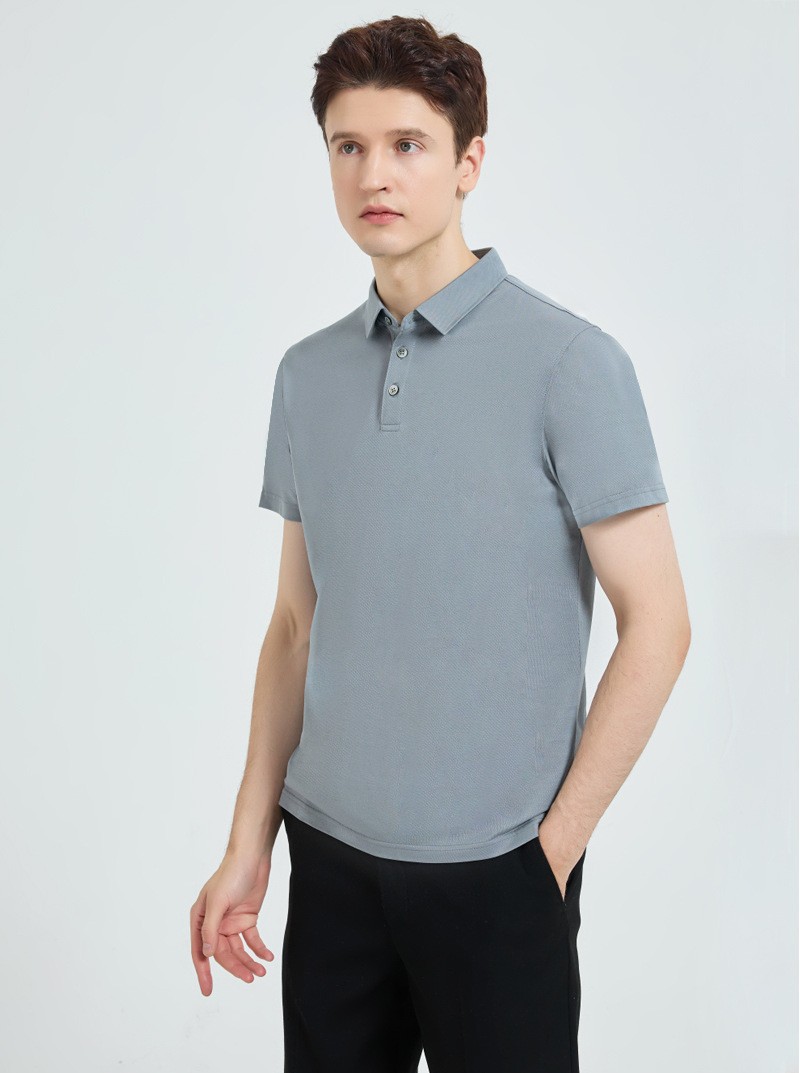 高级感双面莱赛尔丝光棉polo衫男士短袖翻领长绒棉冰丝polo衫男