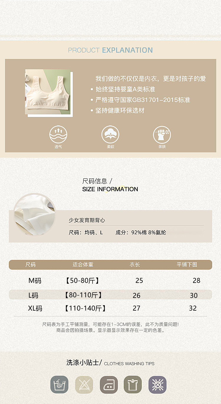 여름 새 순면 소녀 청소년 학생 브래지어 속옷 어린이 발달 기간 안티 라이트 중학생 조끼