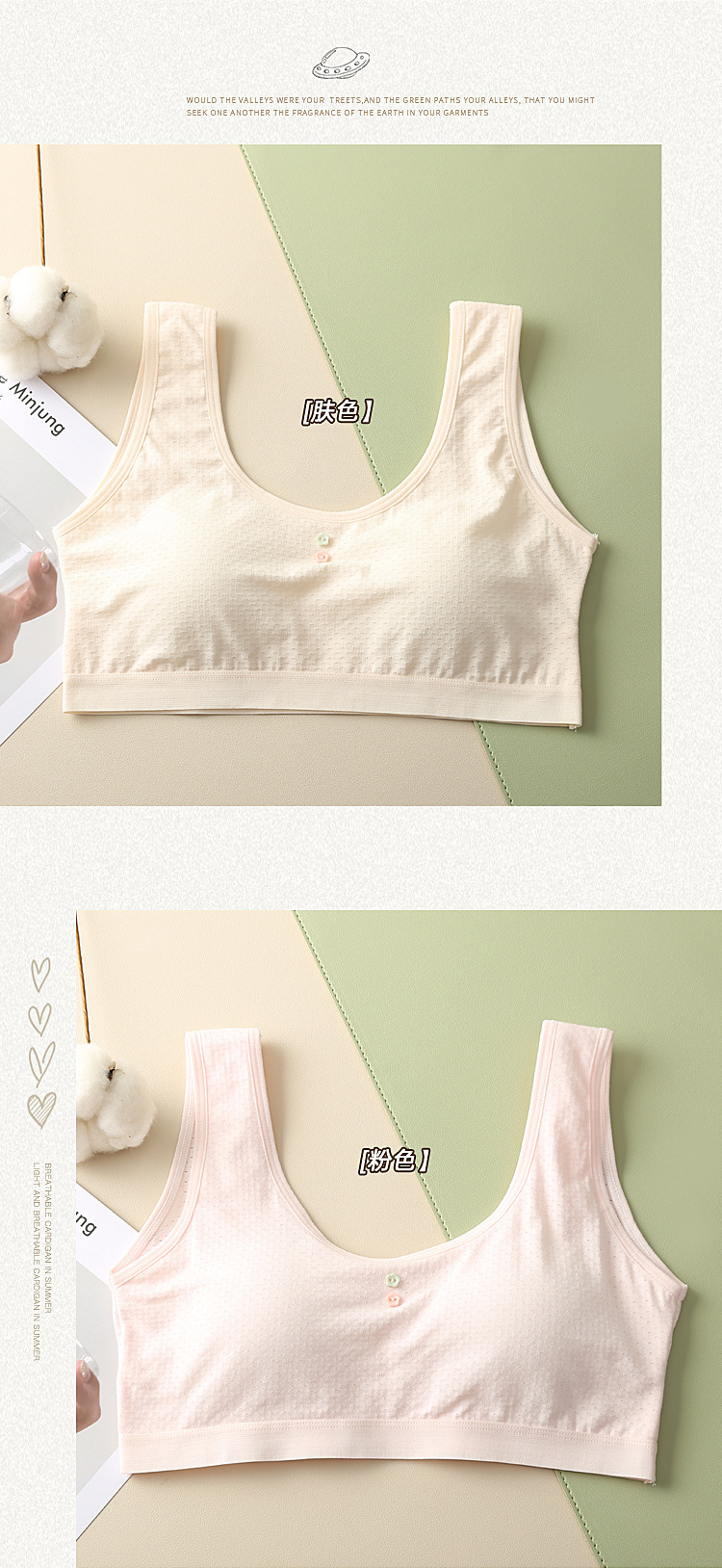 여름 새 순면 소녀 청소년 학생 브래지어 속옷 어린이 발달 기간 안티 라이트 중학생 조끼스토어 가기