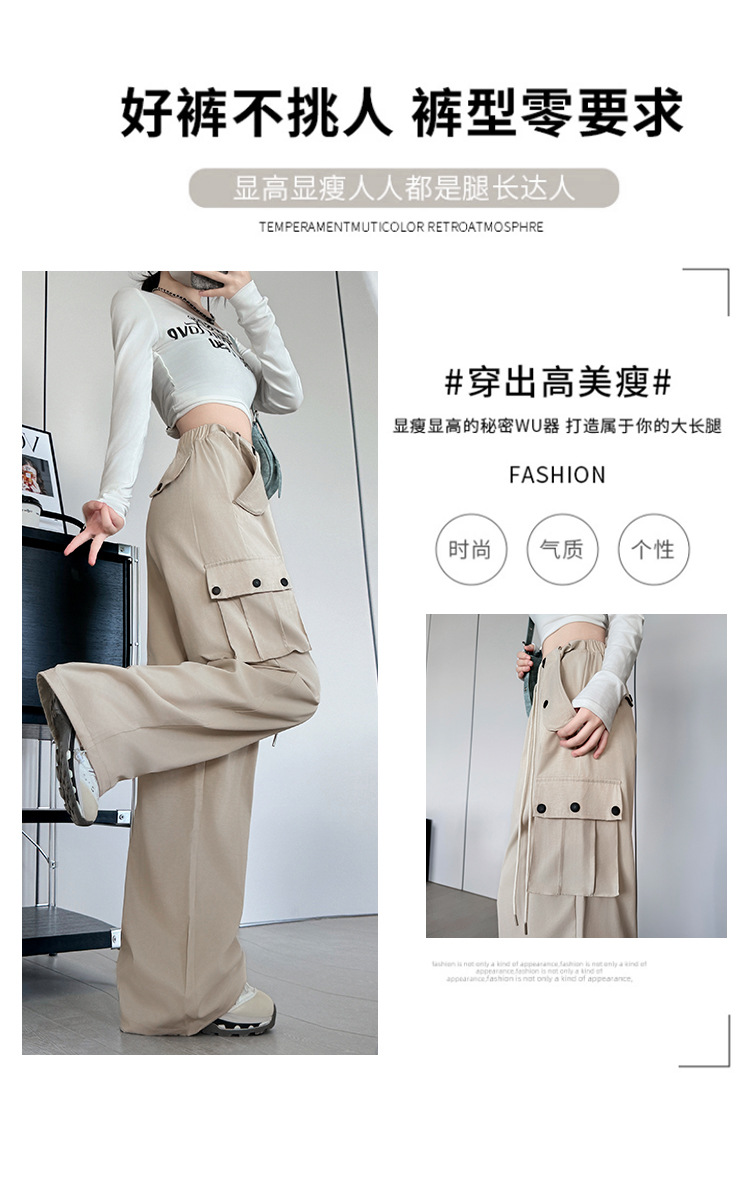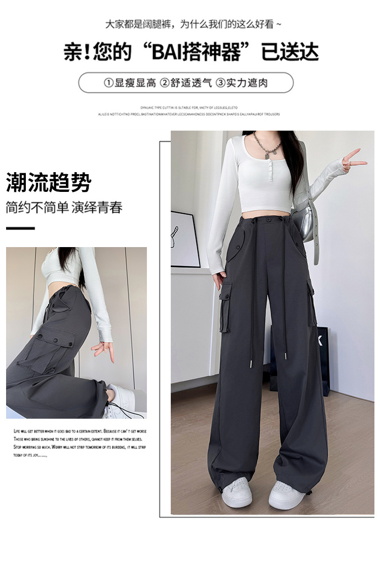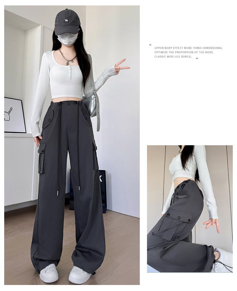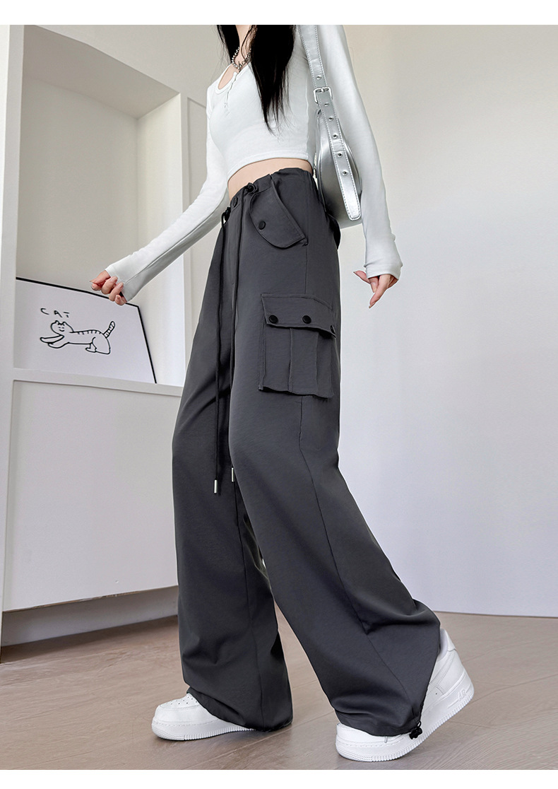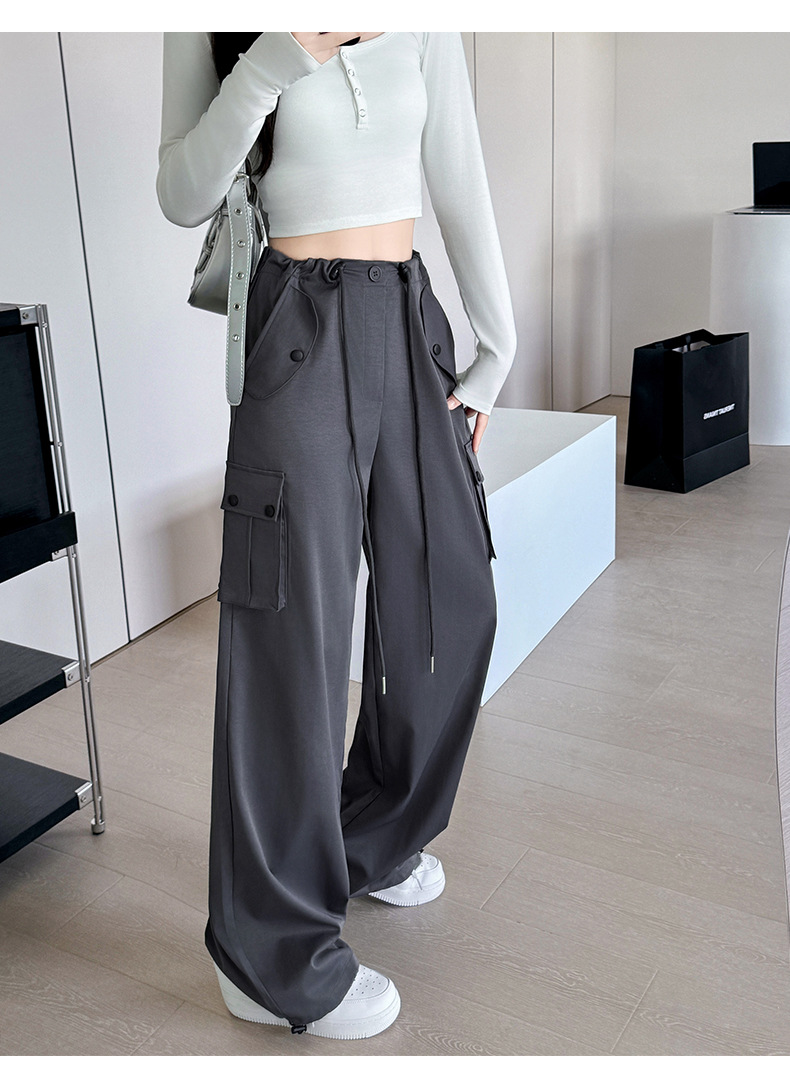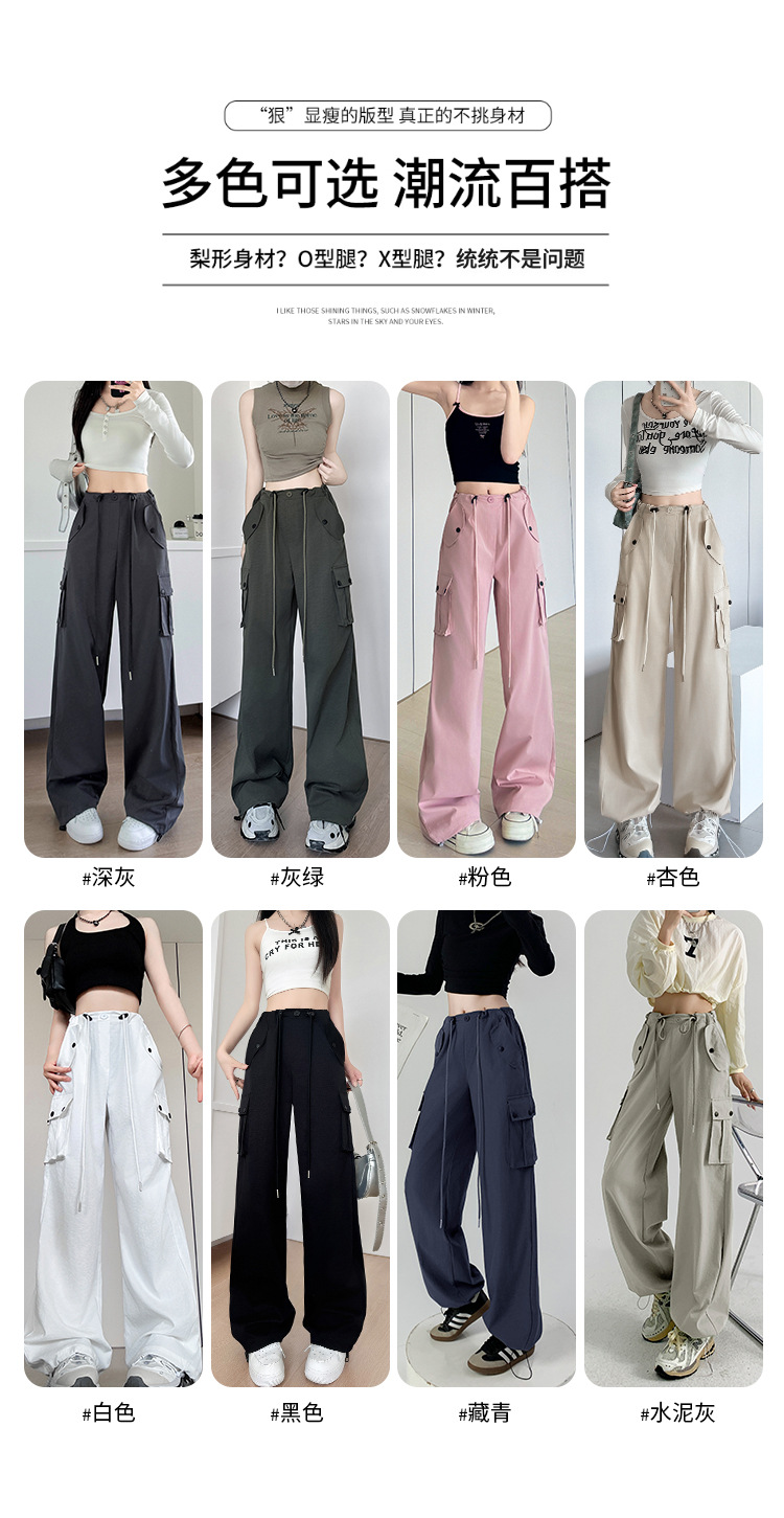 그레이 작업복 바지 여성용 바지 봄 가을 2025 신상 스트레이트 슬림 와이드 팬츠 등산 아메리칸 스타일 스포츠 바지스토어 가기