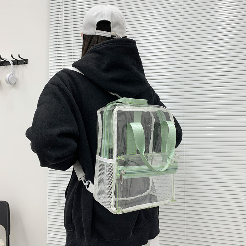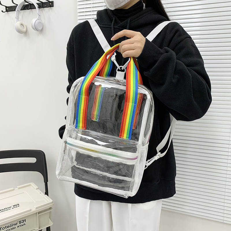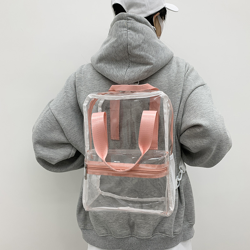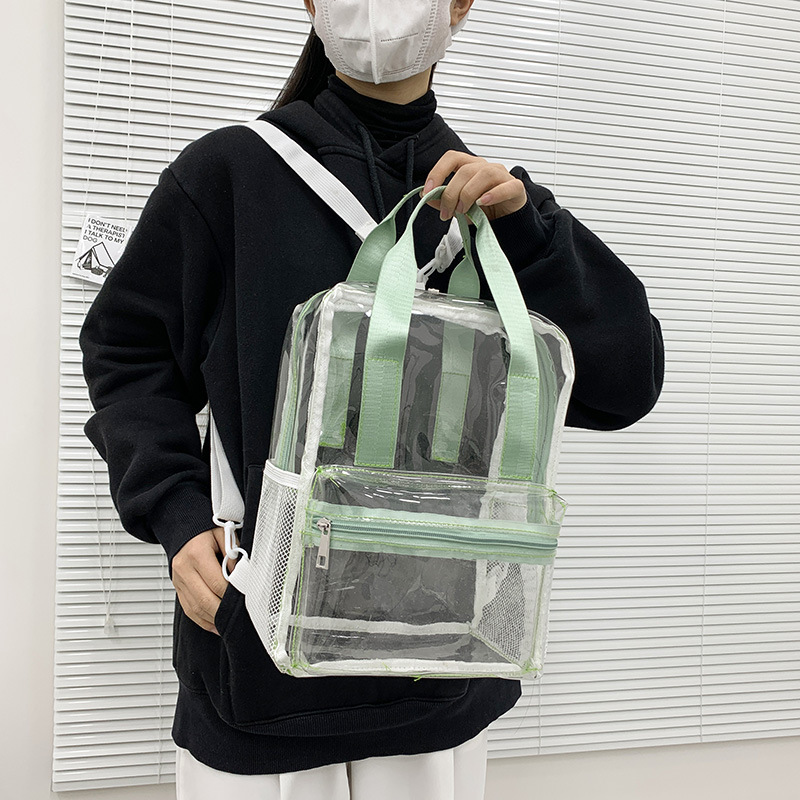 초등학생을위한 국경 간 새로운 투명 배낭 PVC 방수 투명 학교 가방 대용량 해변 휴대용 젤리 가방스토어 가기