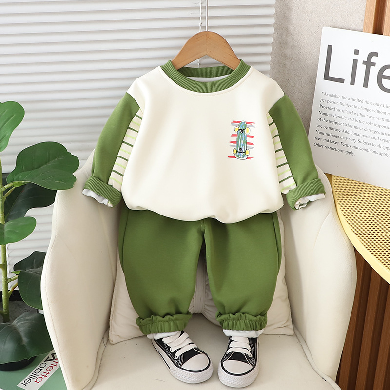 어린이 봄과 가을 세트 2024 가을 새 소년의 긴 소매 서양식 아기 색상 일치 줄무늬 땀 투피스 세트