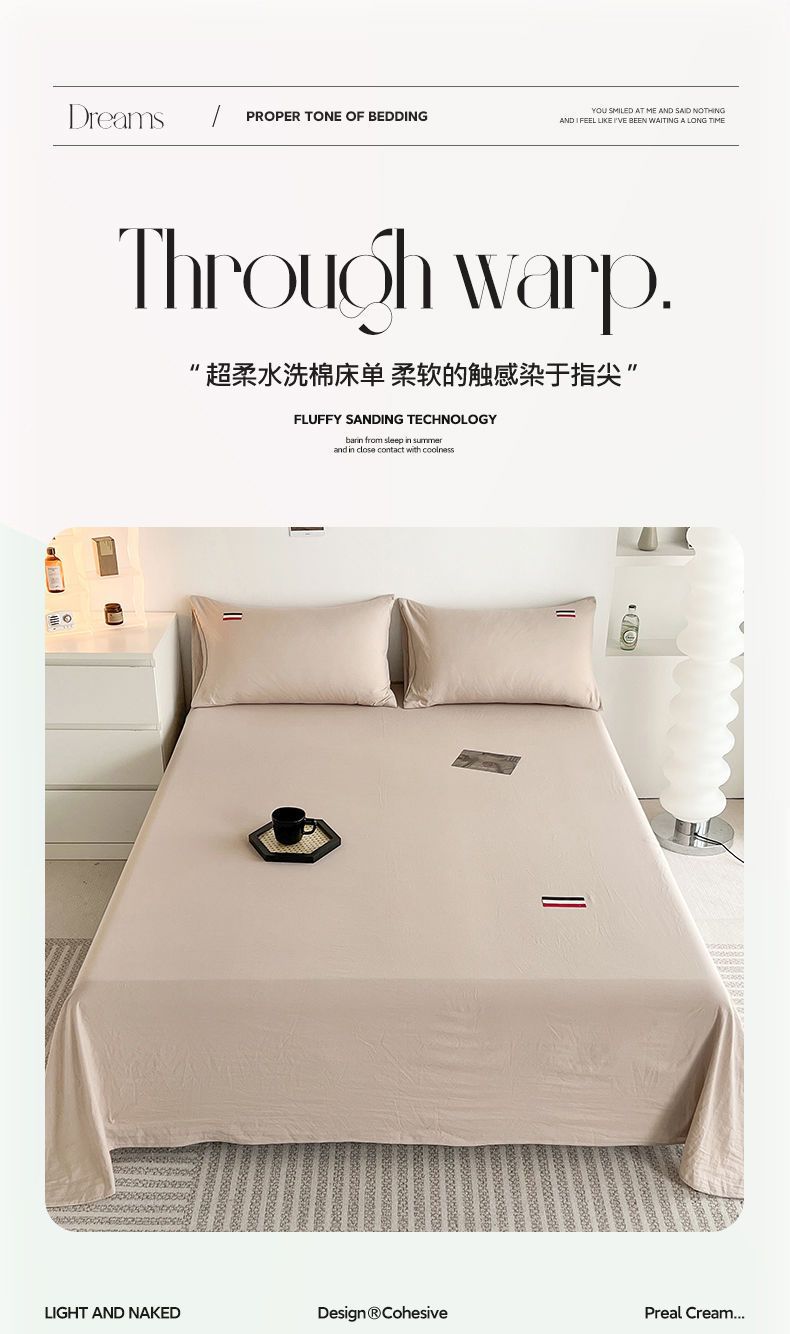 Nanjiren 씻은 면화 침대 시트 3 조각 세트 가정용 더블 시트 두꺼운 원피스 학생 기숙사 싱글 어린이