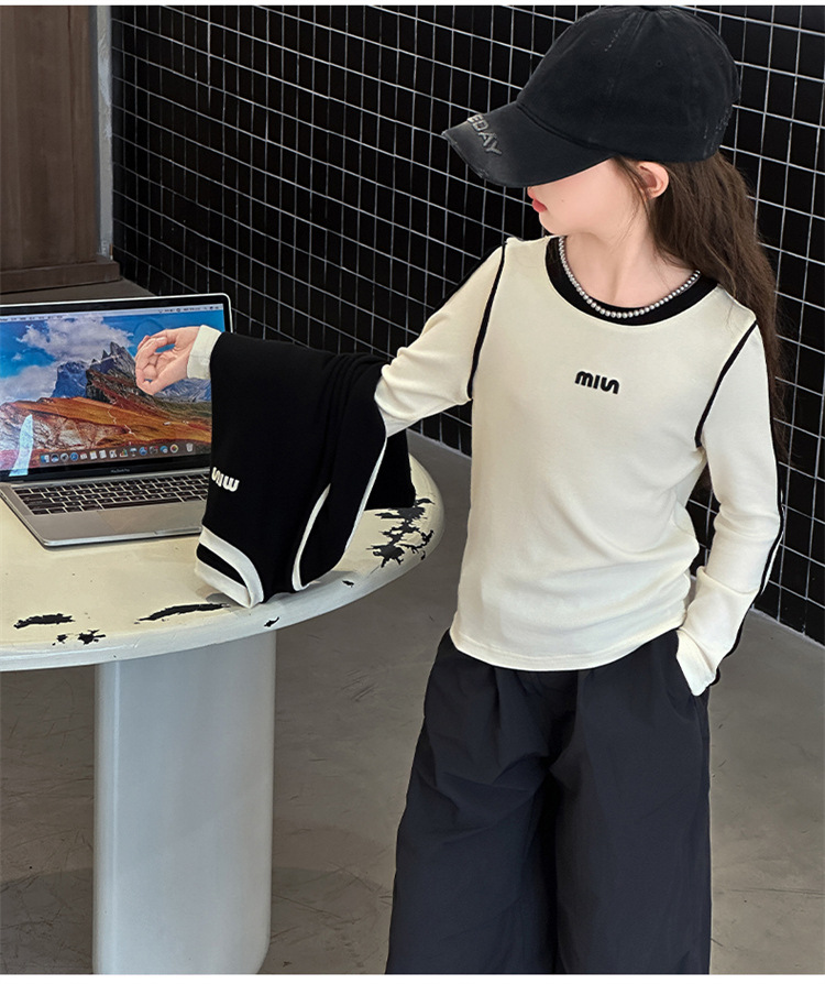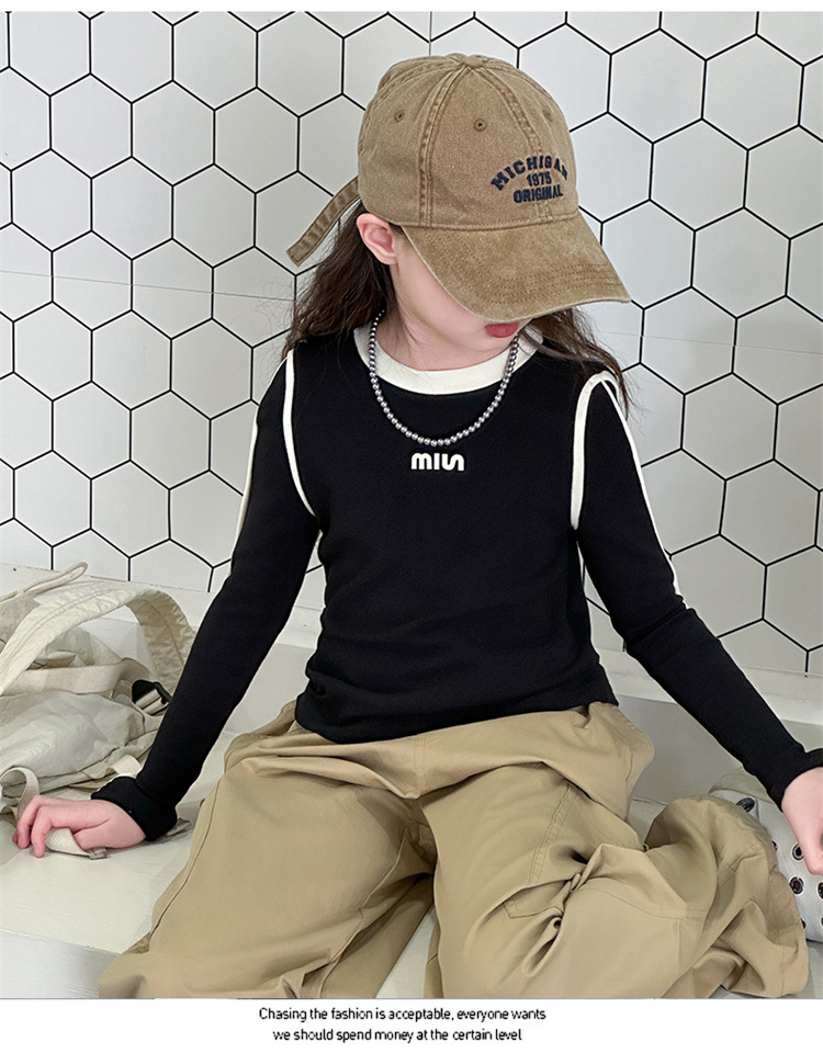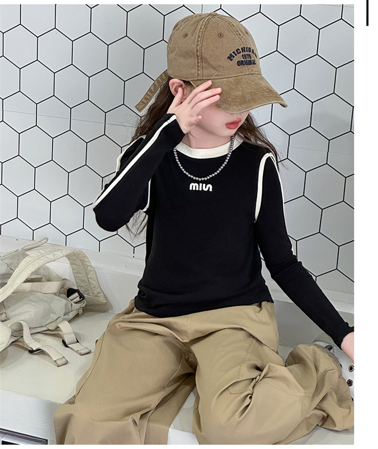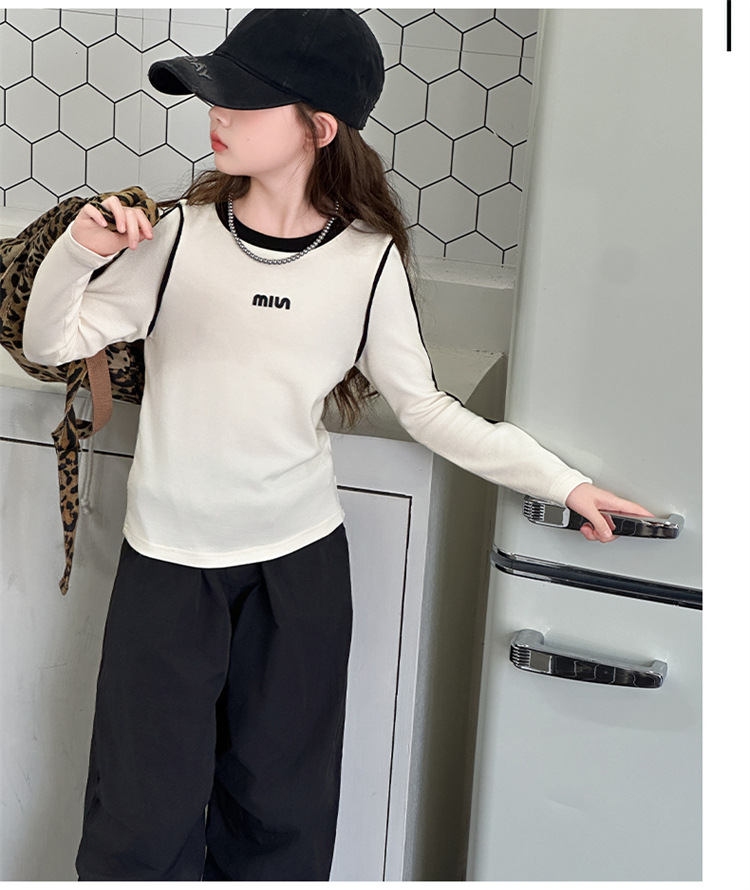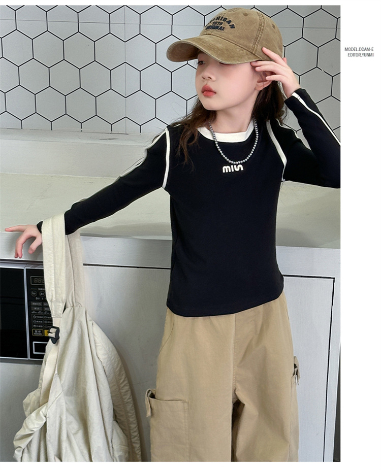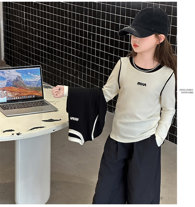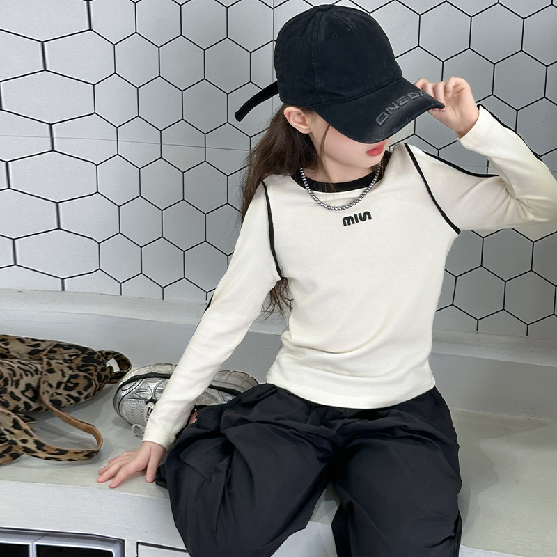 소녀 긴팔 티셔츠 봄과 가을 2024 새로운 서양식 어린이 유행 서양식 소녀 큰 어린이 인터넷 연예인 프라이드 스트리트 크루 넥 티셔츠