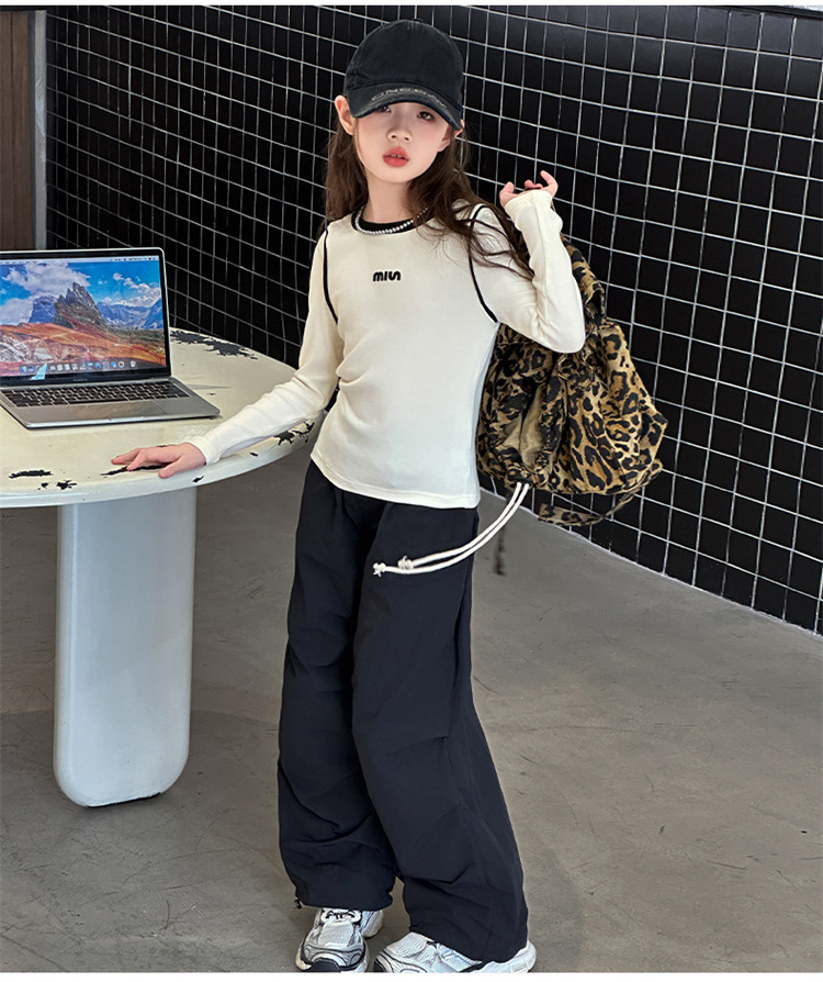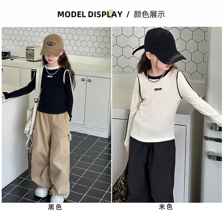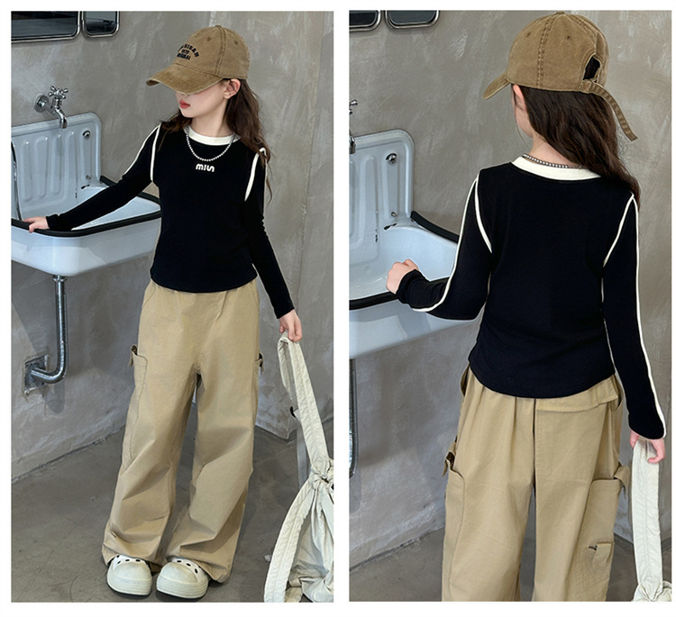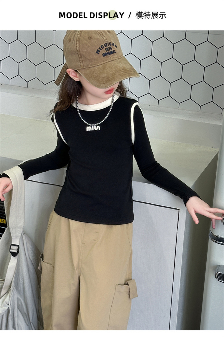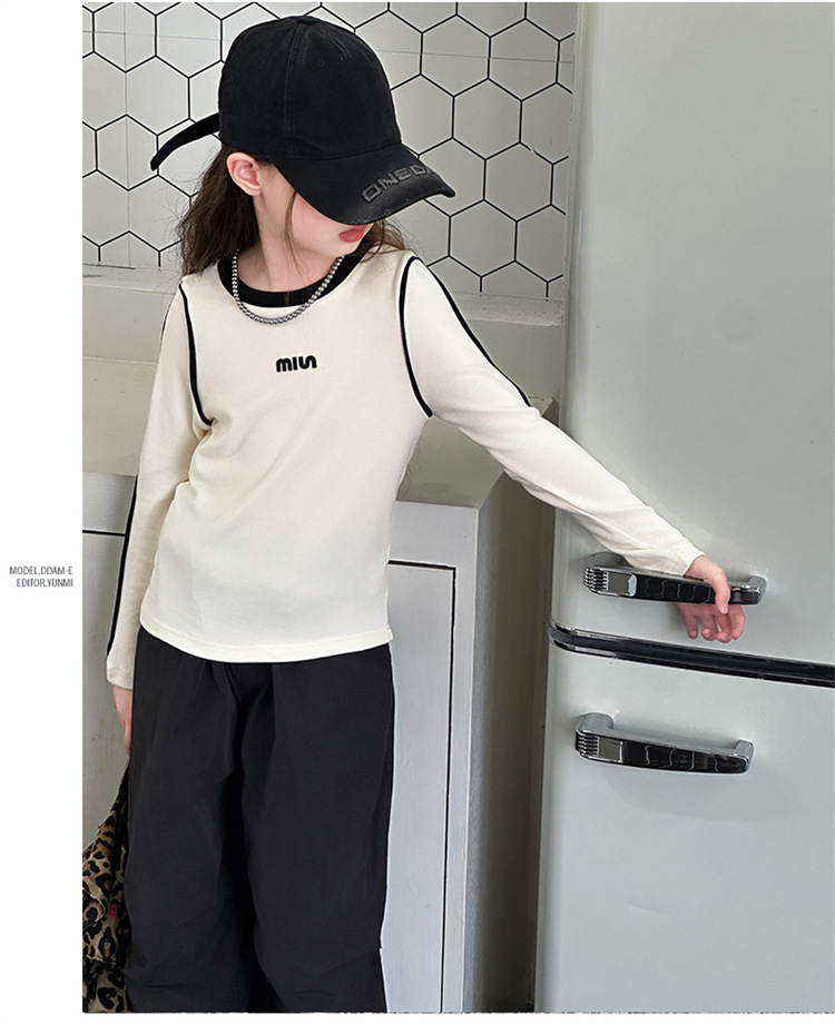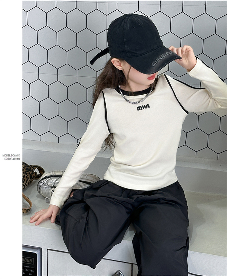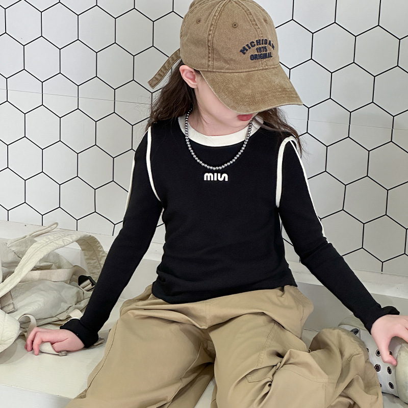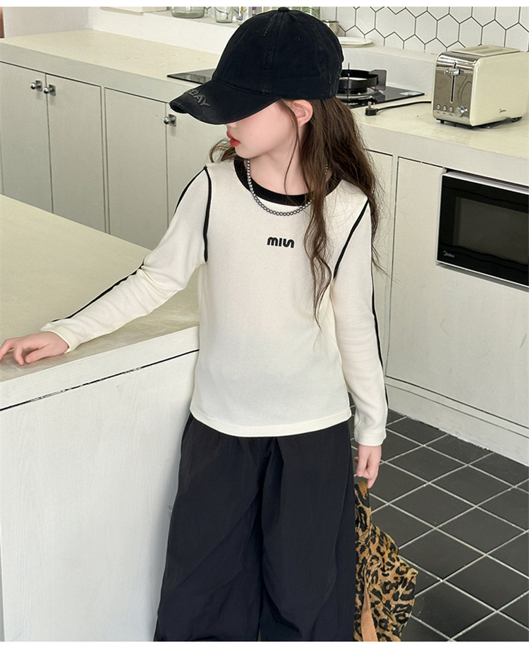 소녀 긴팔 티셔츠 봄과 가을 2024 새로운 서양식 어린이 유행 서양식 소녀 큰 어린이 인터넷 연예인 프라이드 스트리트 크루 넥 티셔츠